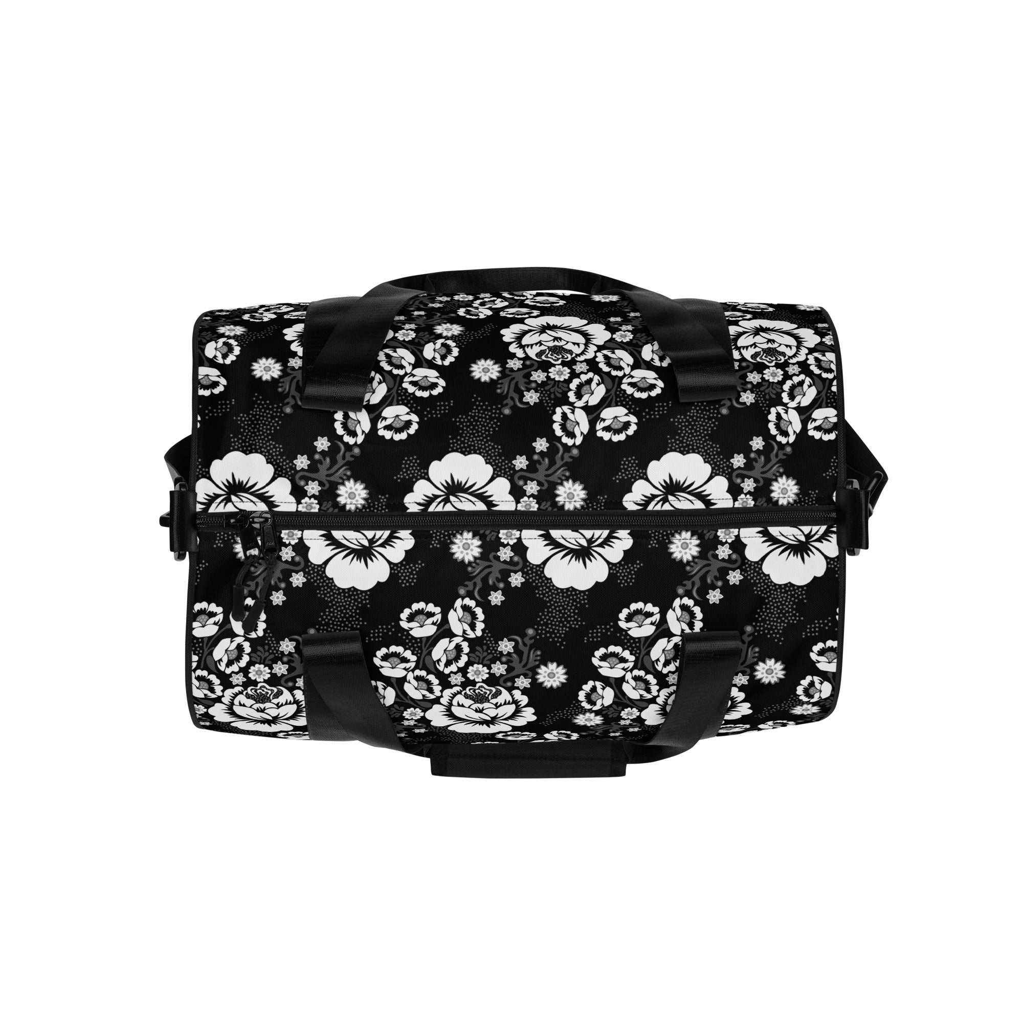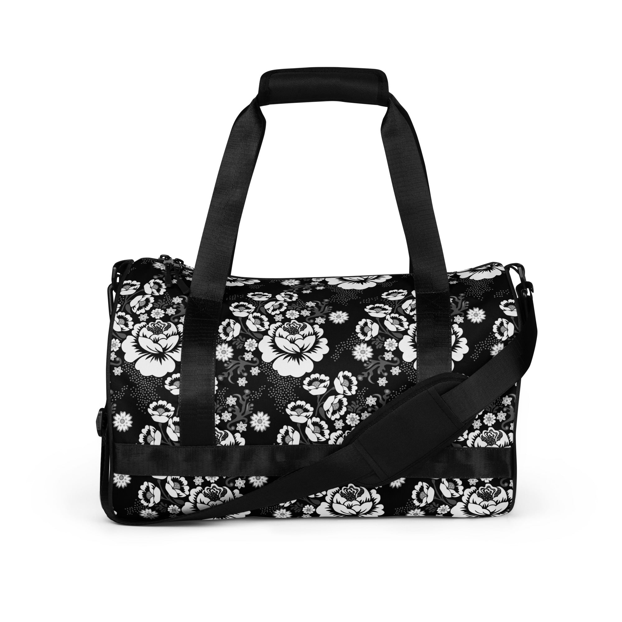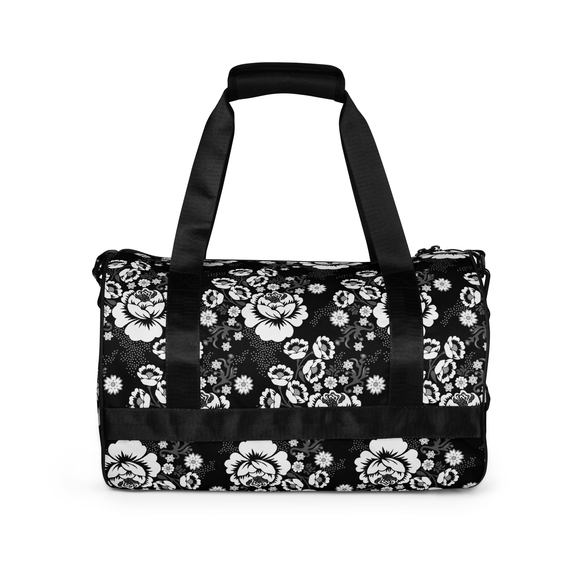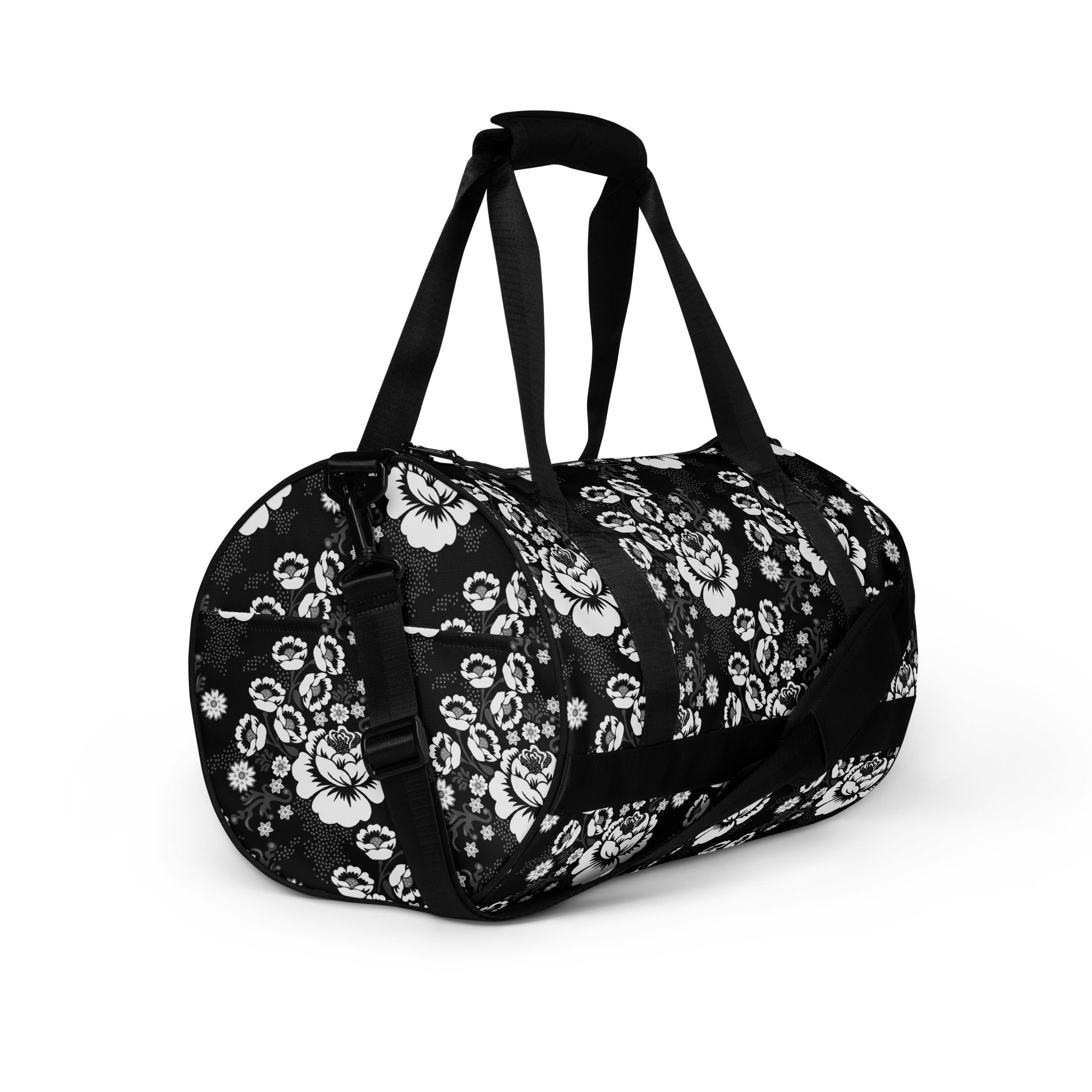 Ready to get your fitness on? Add some punch to pumping iron with this all-over print gym bag. Made from 100% polyester and sturdy, water-resistant fabric, this bag is fun meets function. And it’s got pockets!