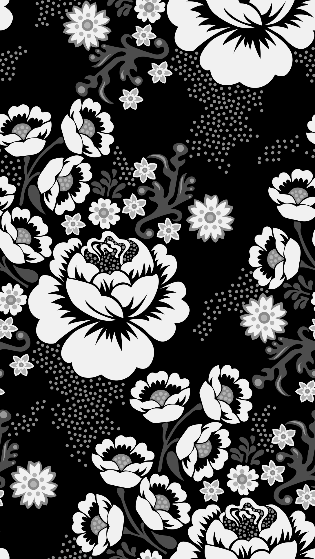 A bold black and white floral. With shades of gray offering details and depth to this print, the stylized floral creates a dramatic print.