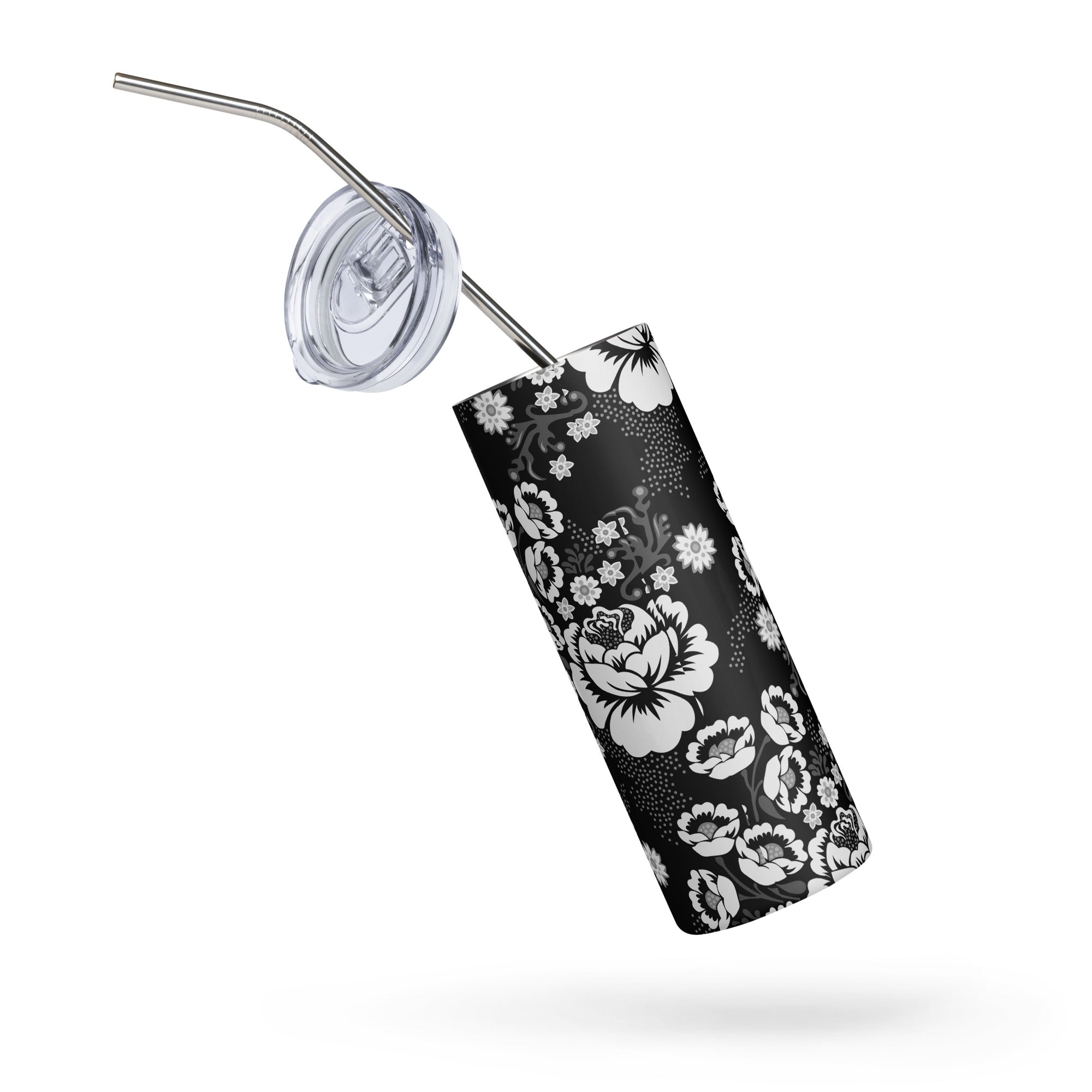 Enjoy hot or cold drinks on the go with this stylish stainless steel tumbler! This reusable tumbler with a metal straw is a perfect combo for hot or cold drinks at any time of the day.
