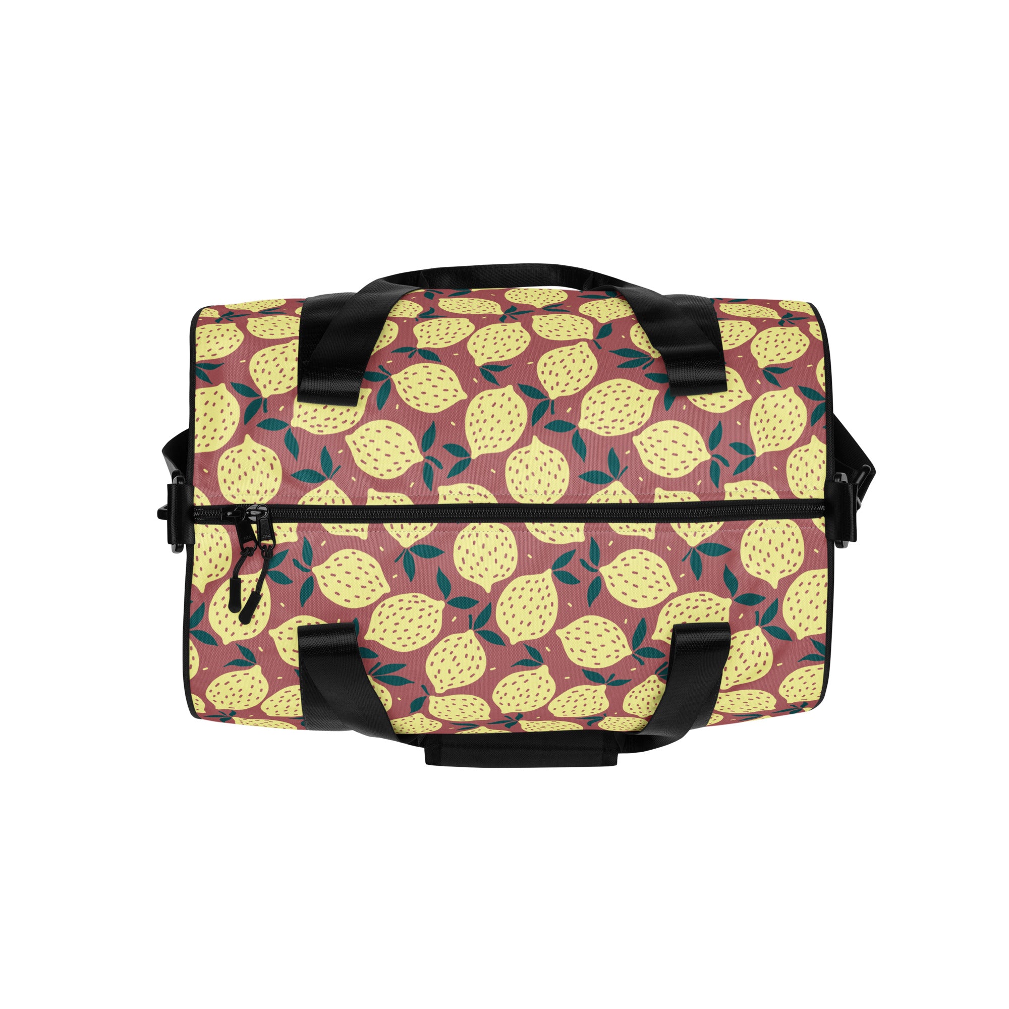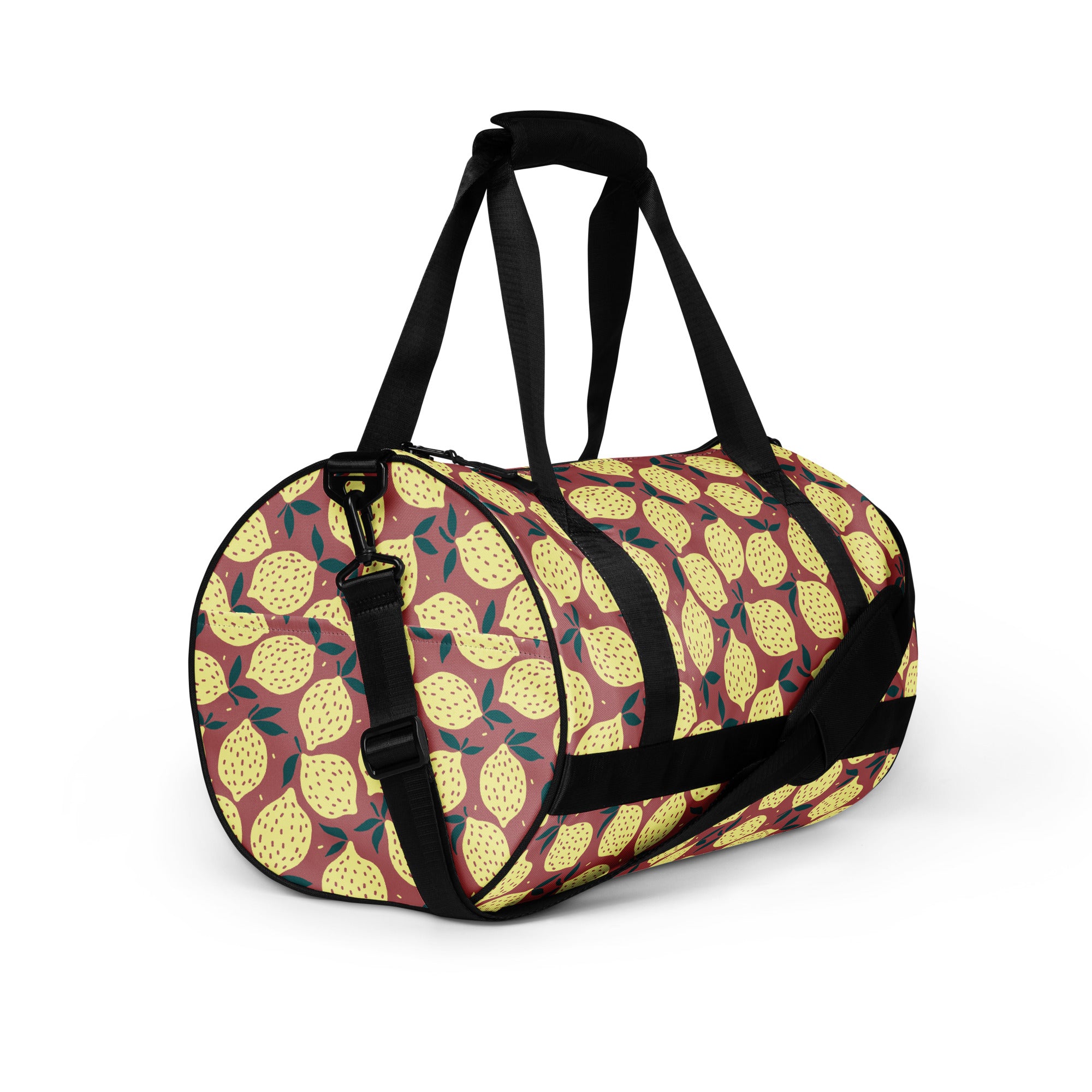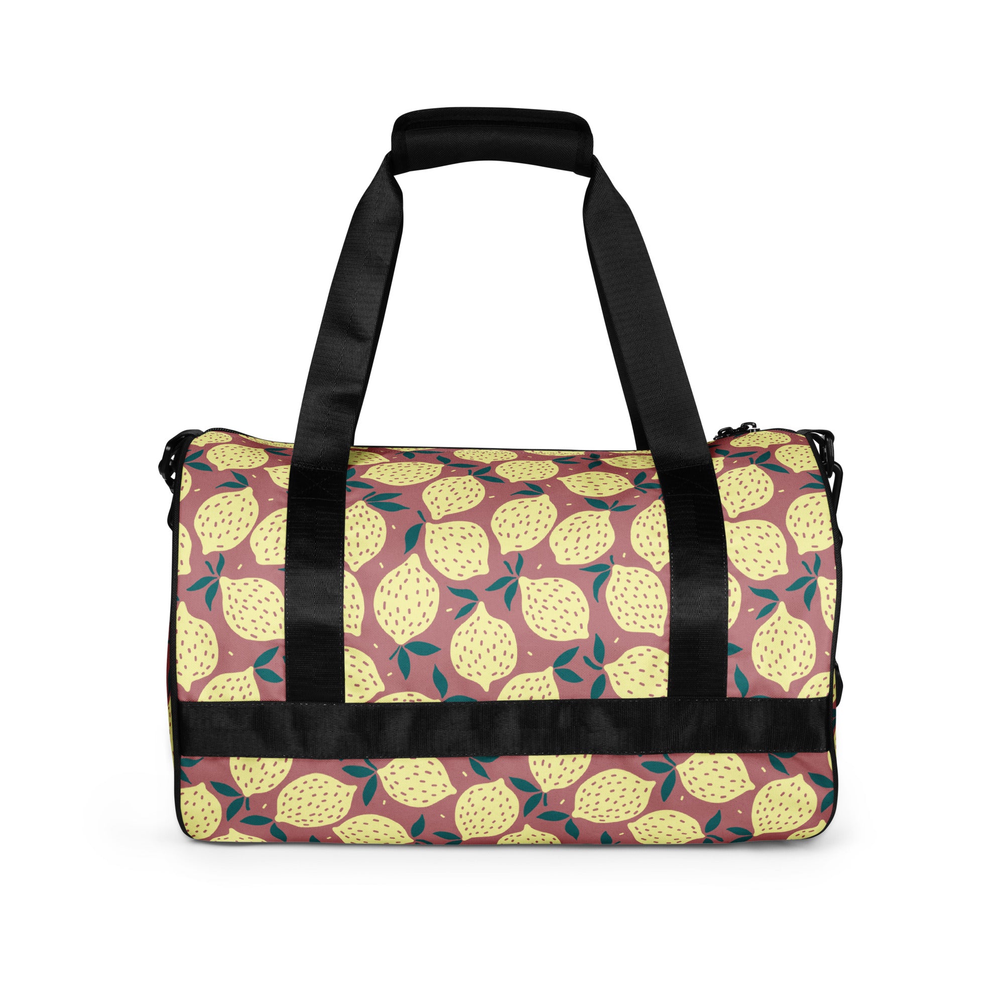 Ready to get your fitness on? Add some punch to pumping iron with this all-over print gym bag. Made from 100% polyester and sturdy, water-resistant fabric, this bag is fun meets function. And it’s got pockets!