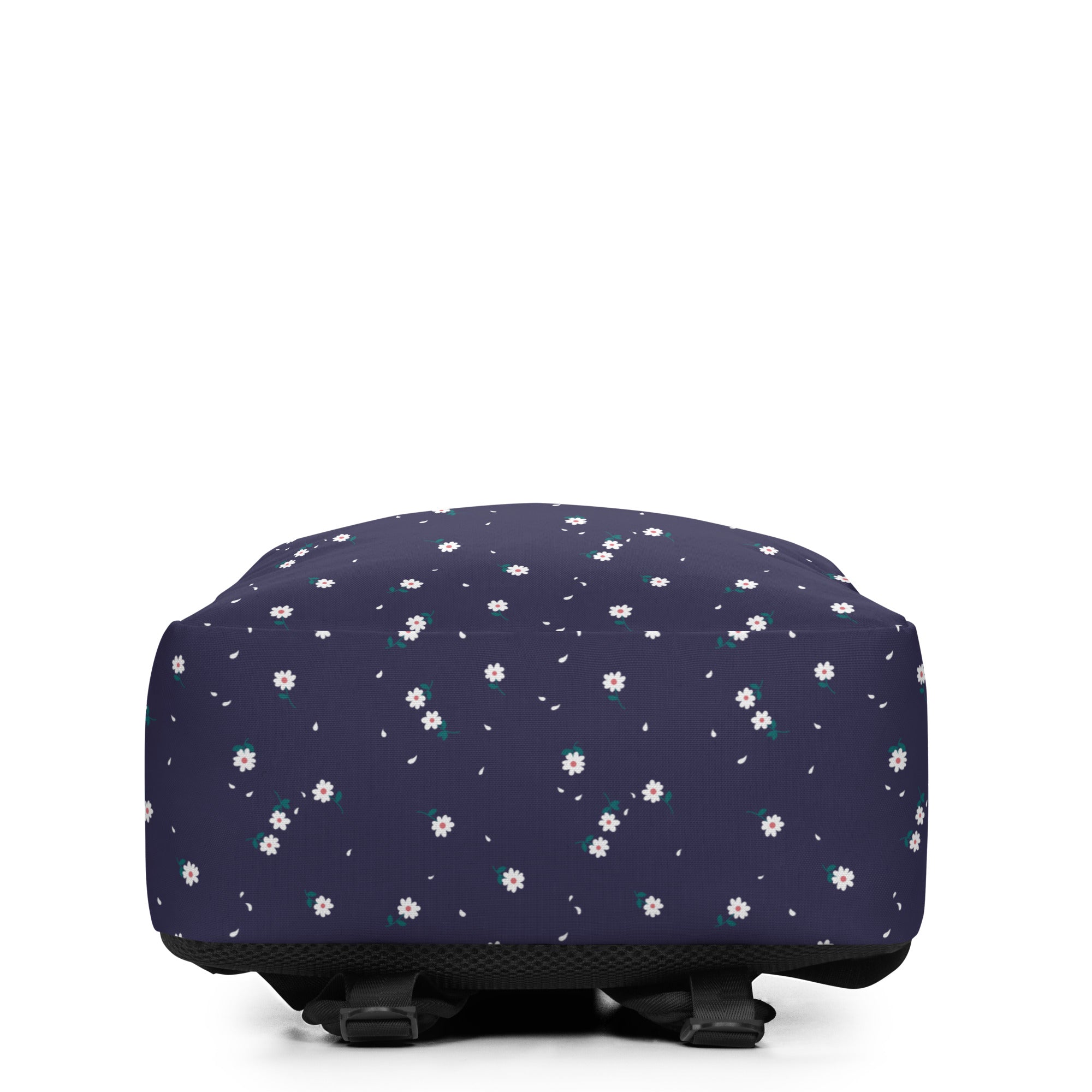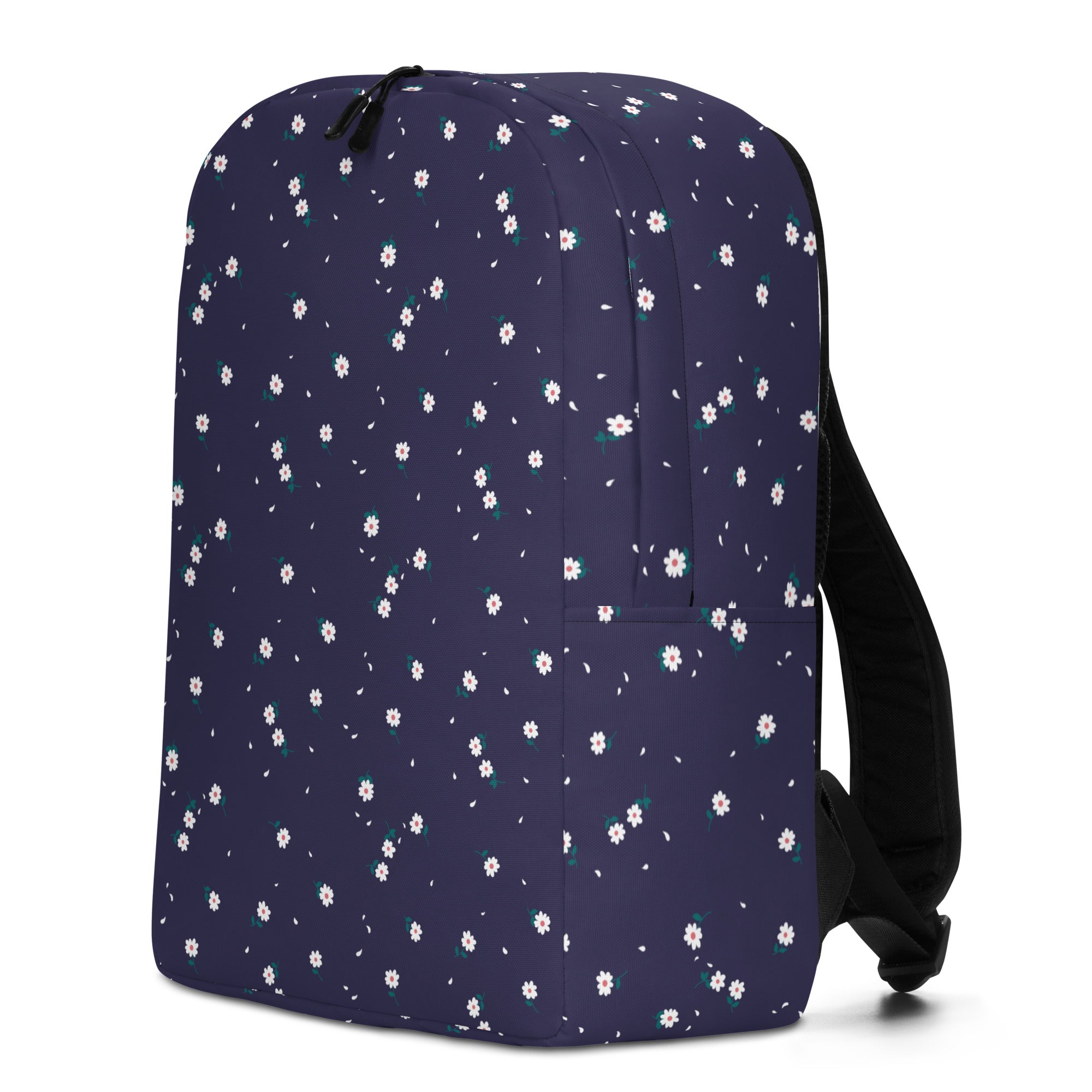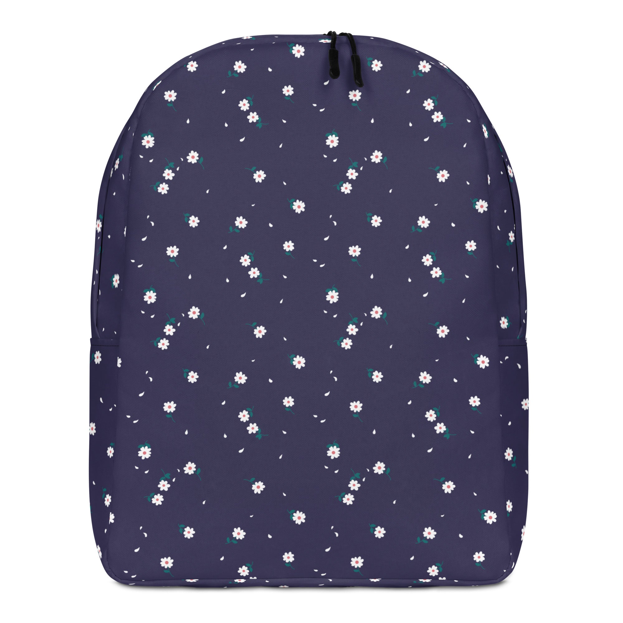Sweet little white daisies are scattered across this dark blue print.