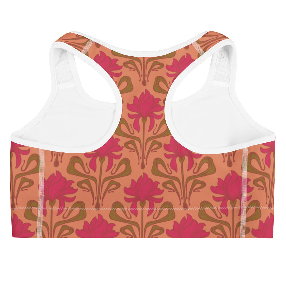 This gorgeous sports bra is made from moisture-wicking material that stays dry during low and medium intensity workouts. The bra has support material in the shoulder straps, double layer front, and a wide elastic band to ensure constant support.