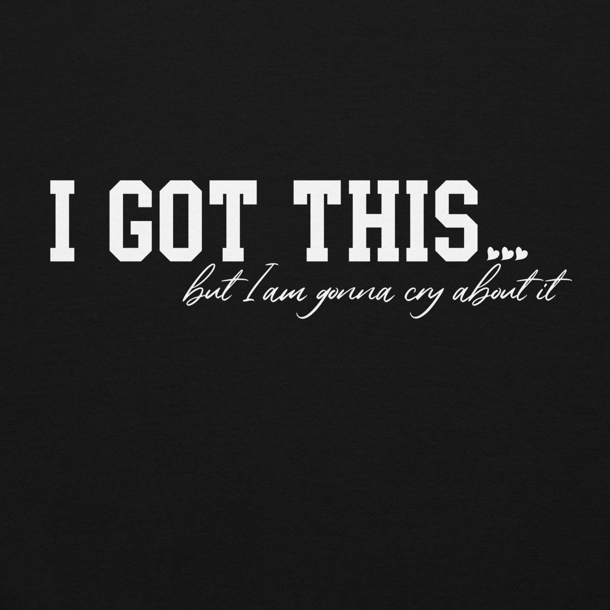 Something that was very true was that I could do the hard things... but I was gonna cry about it. Thus this shirt was born. These white letters say "I Got This... but I am gonna cry about it"