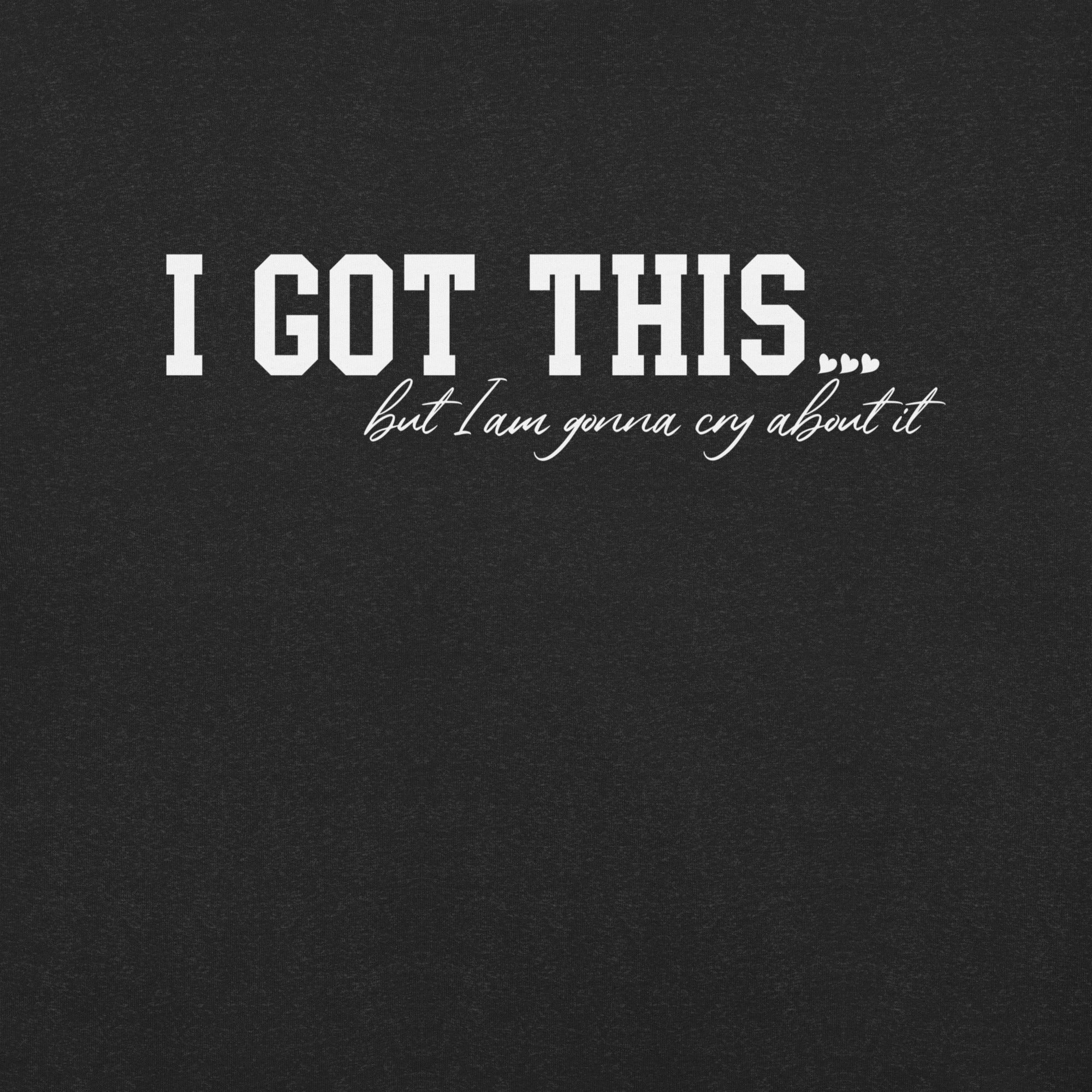 Something that was very true was that I could do the hard things... but I was gonna cry about it. Thus this shirt was born. These white letters say "I Got This... but I am gonna cry about it"