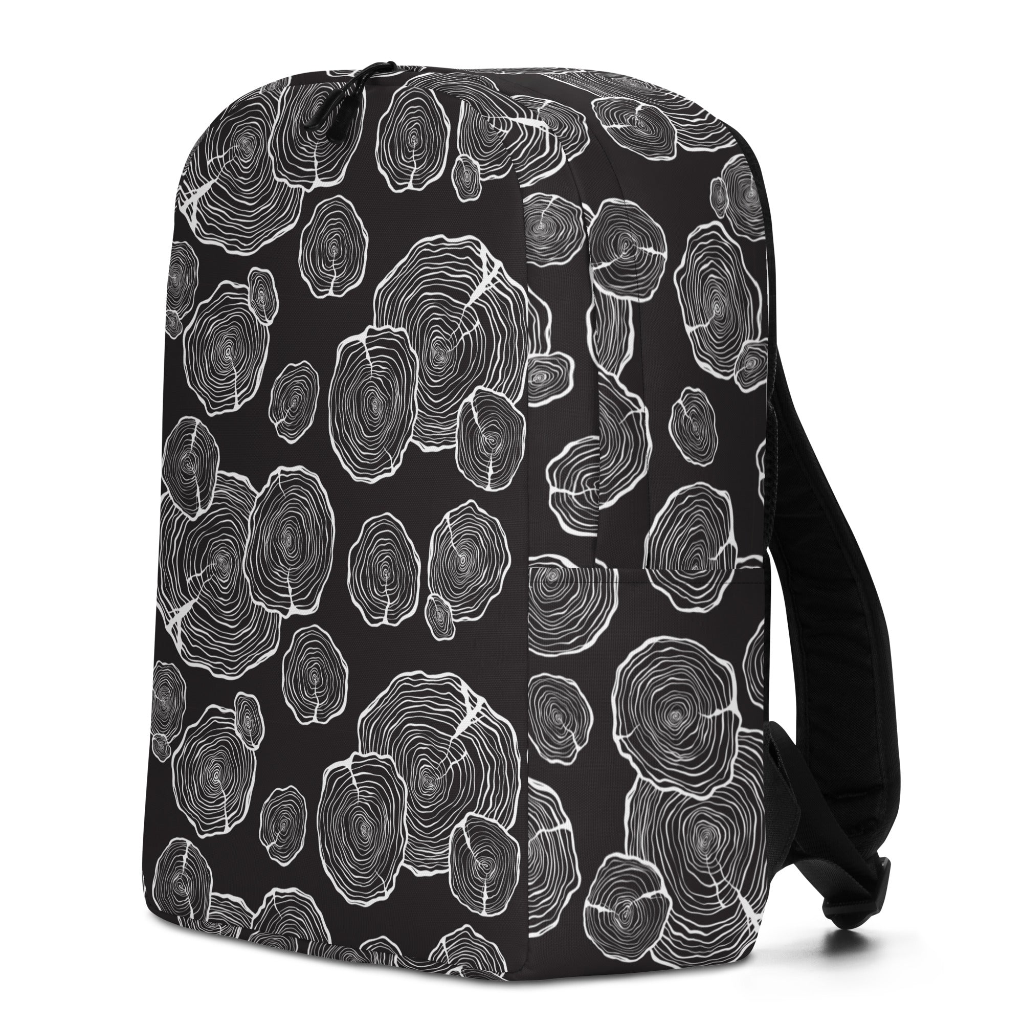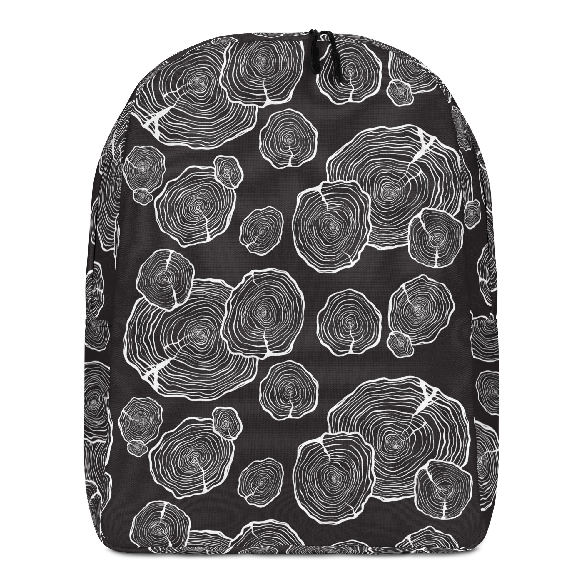 A simple and stylish print of white log slices on a black background.