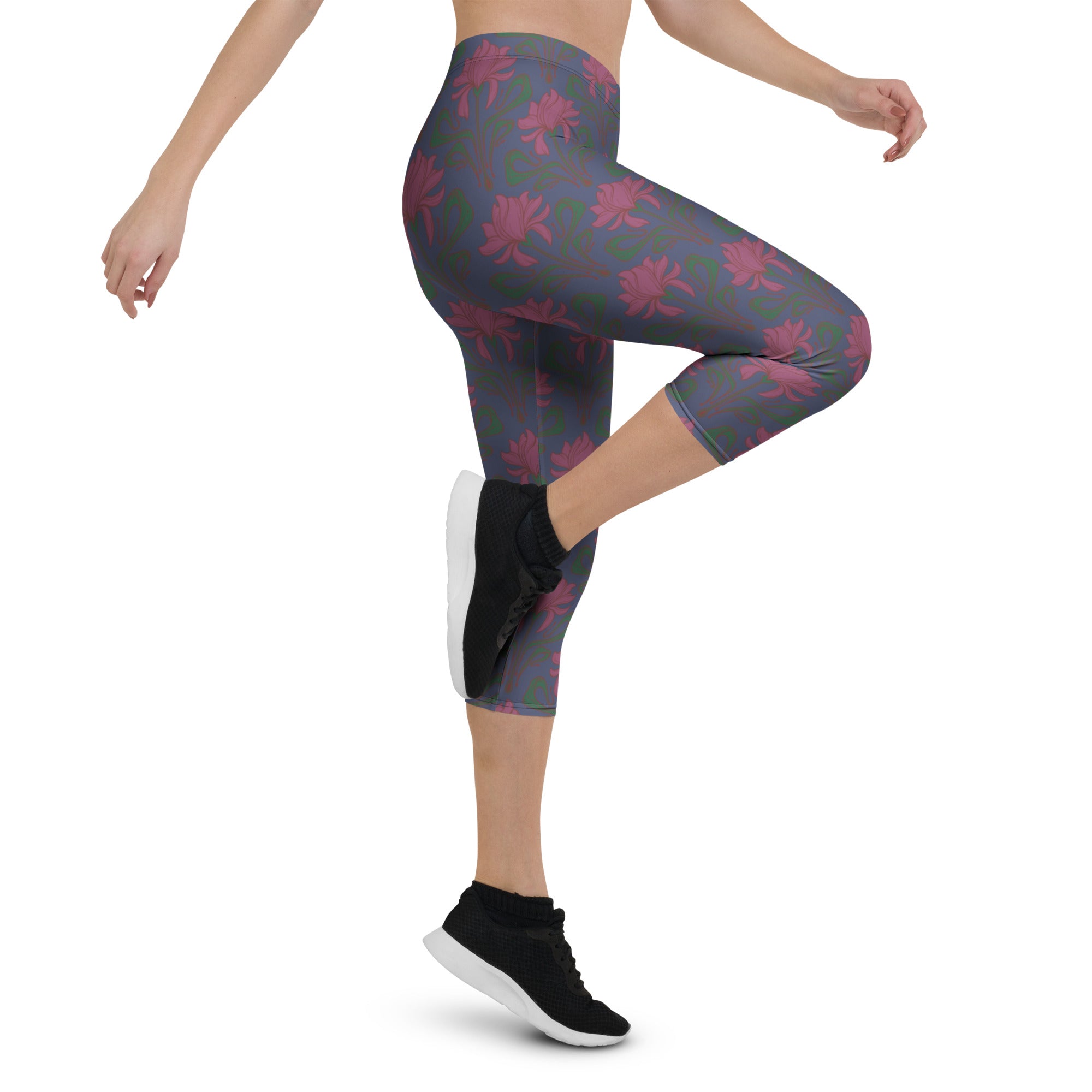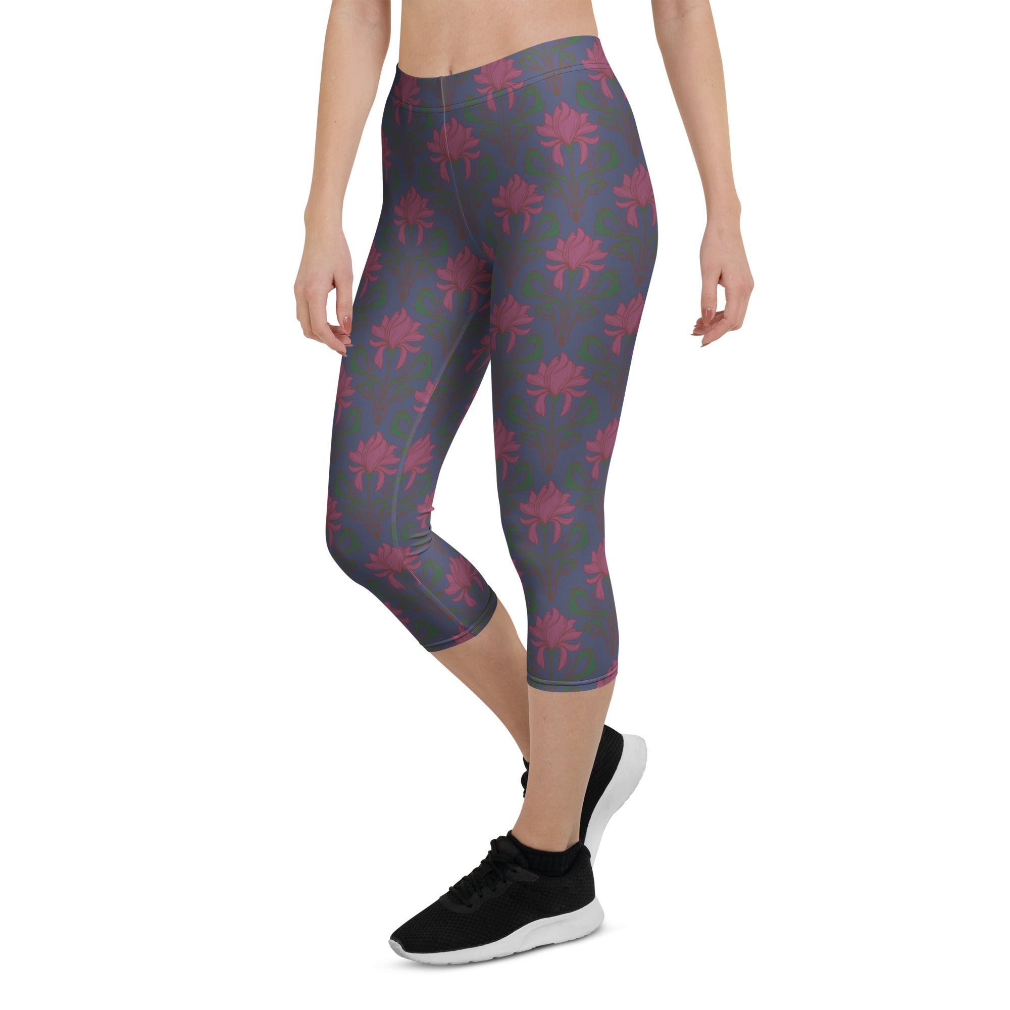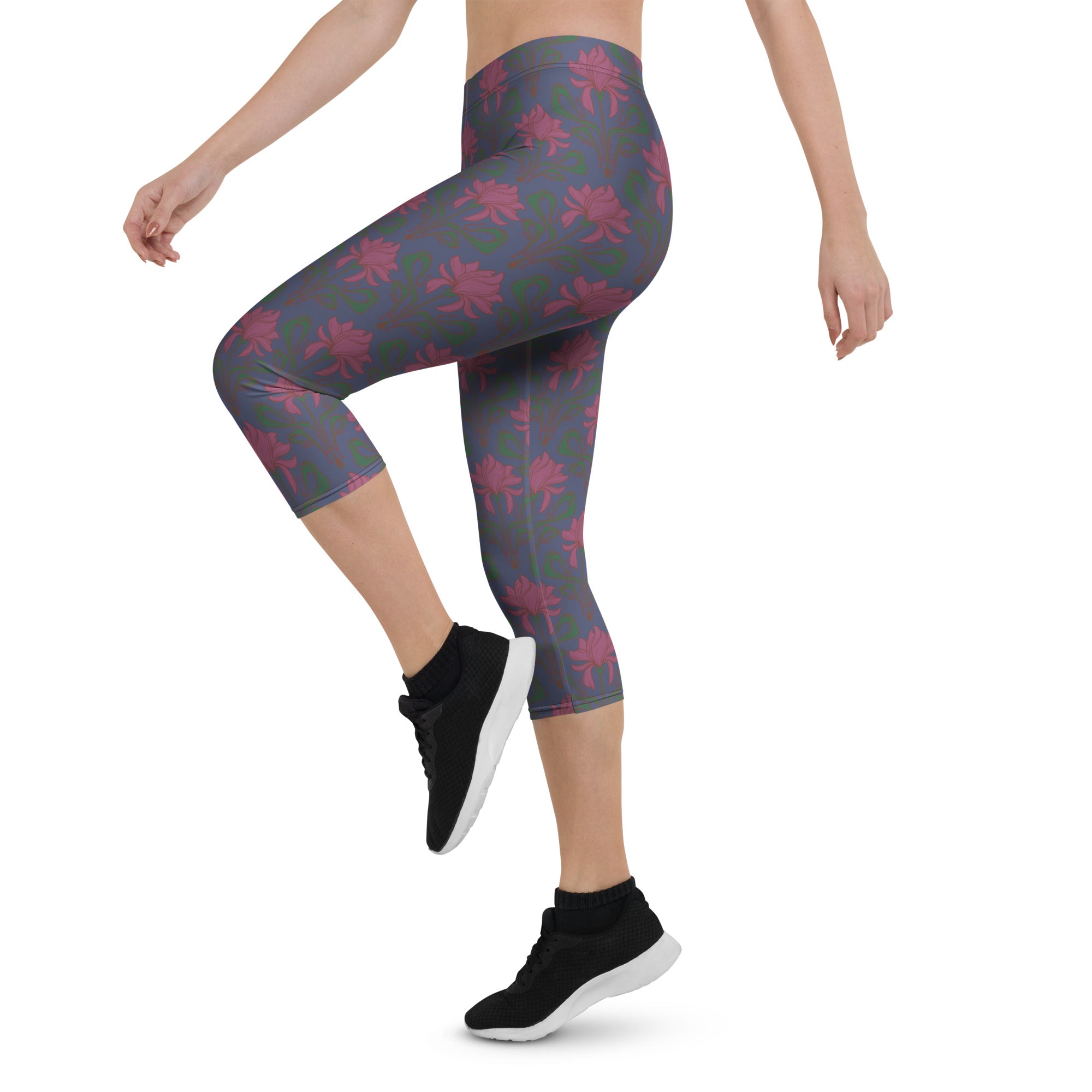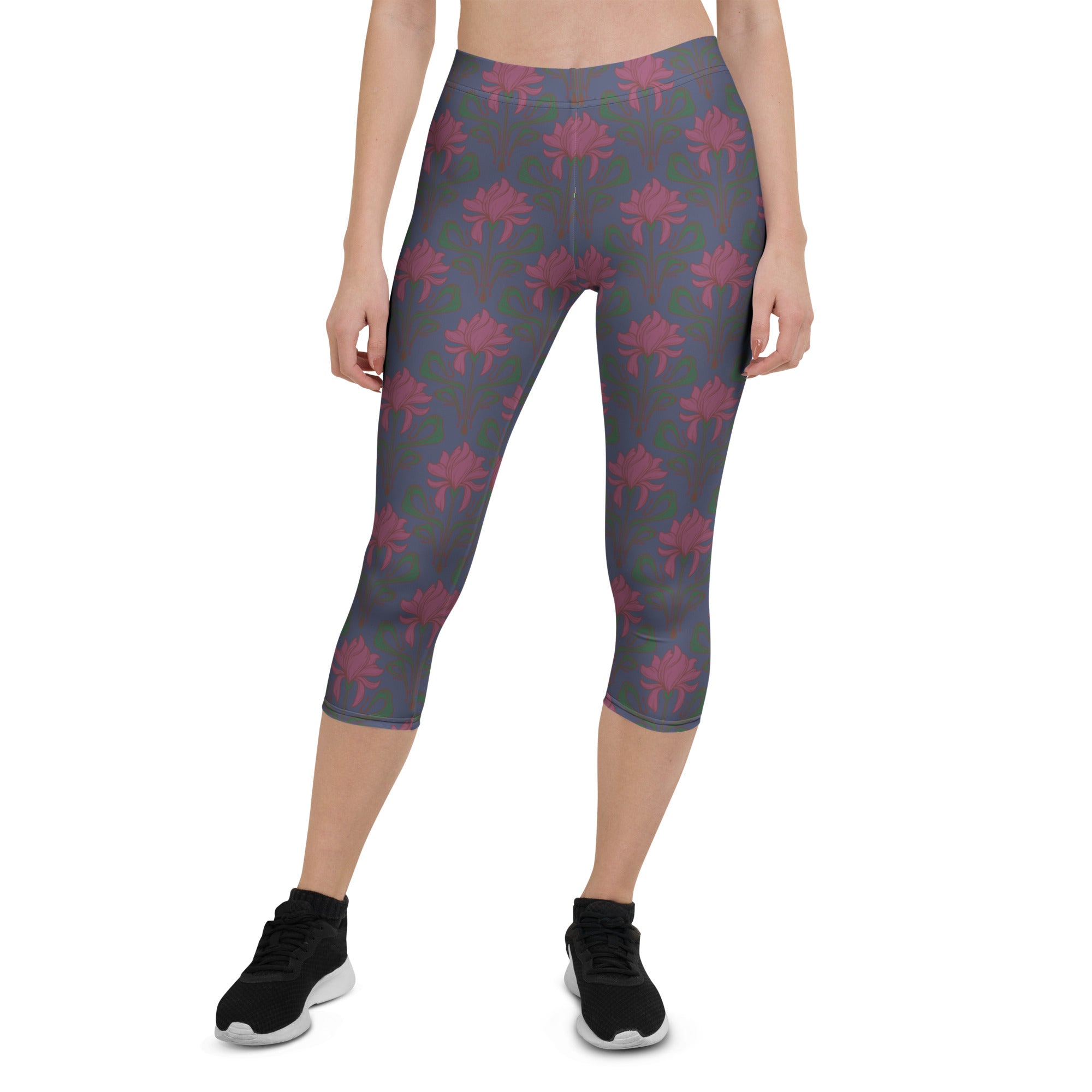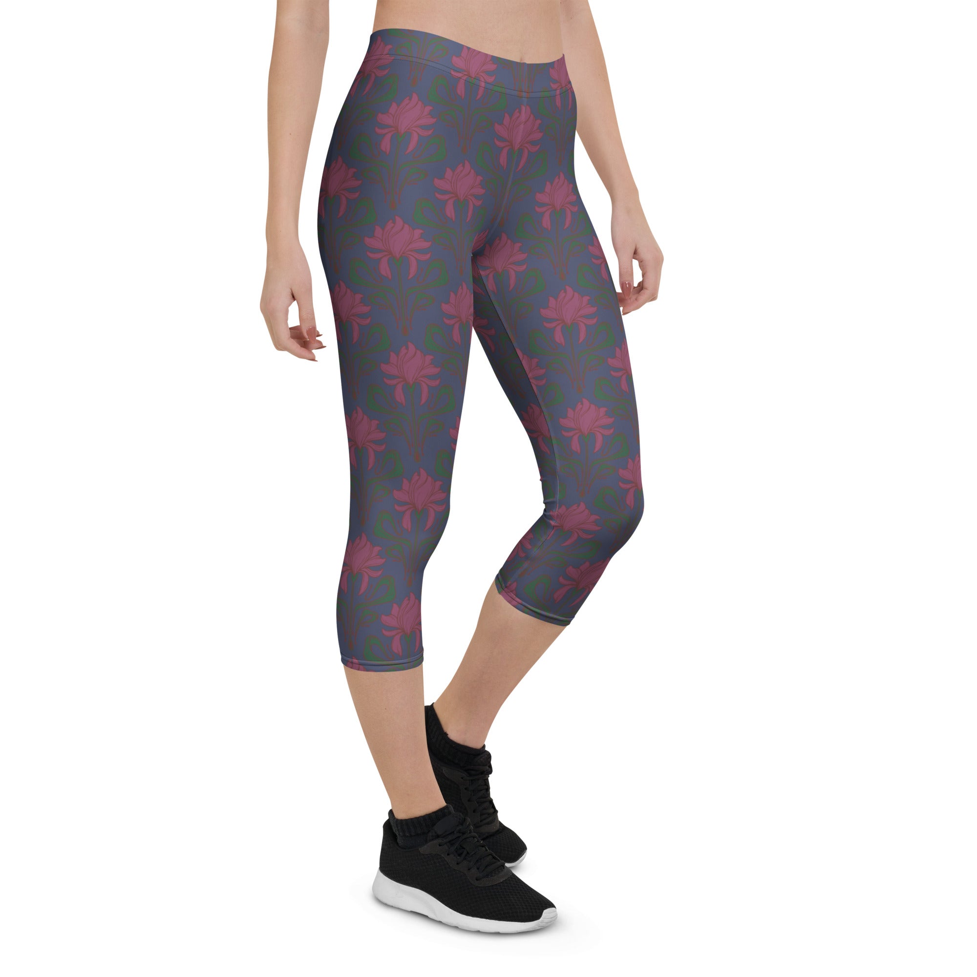 A beautiful Art Nouveau inspired iris print in wine with a crown blue colored background.