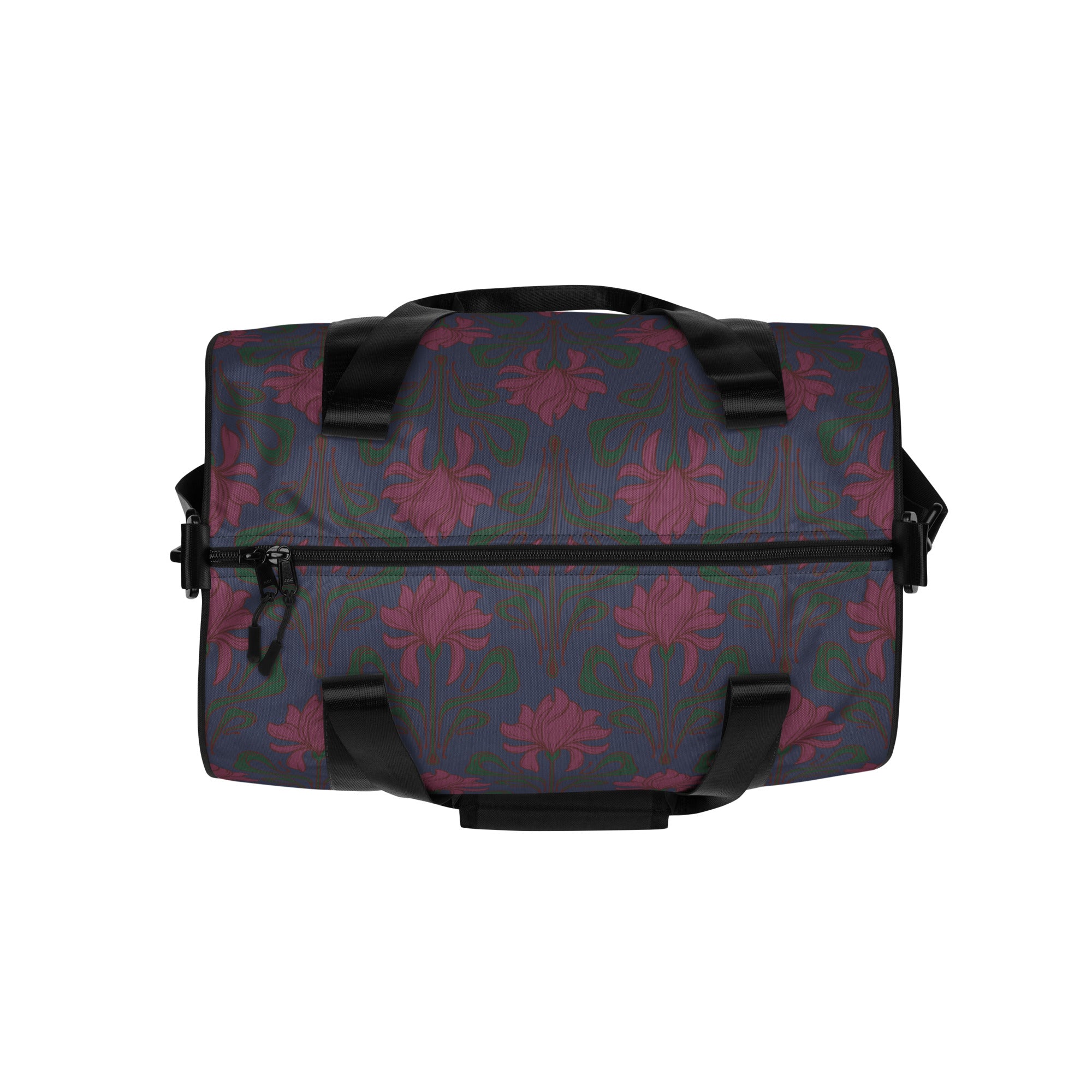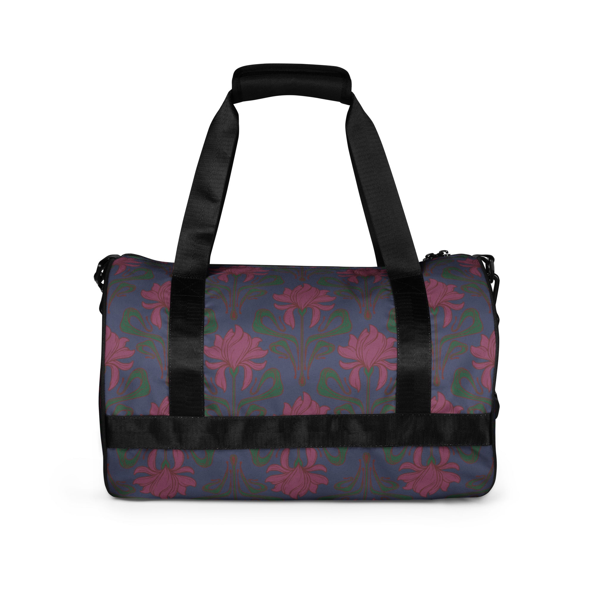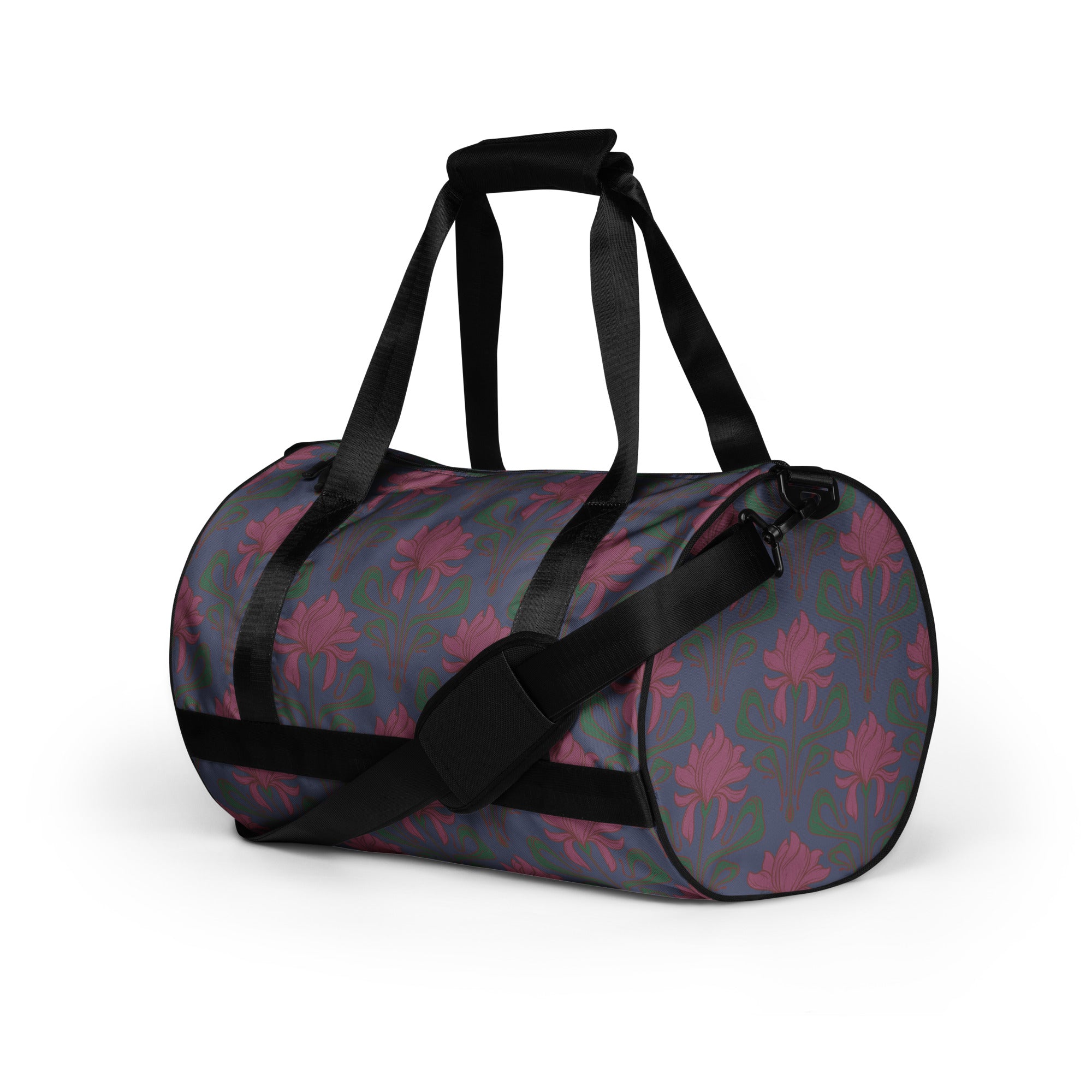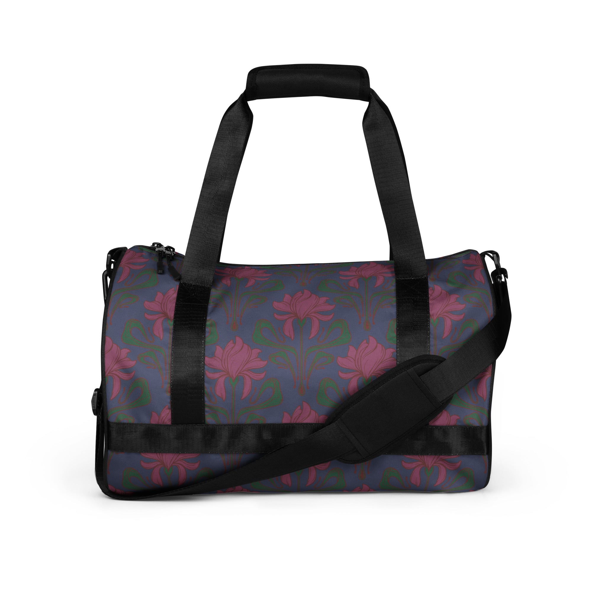 Ready to get your fitness on? Add some punch to pumping iron with this all-over print gym bag. Made from 100% polyester and sturdy, water-resistant fabric, this bag is fun meets function. And it’s got pockets!