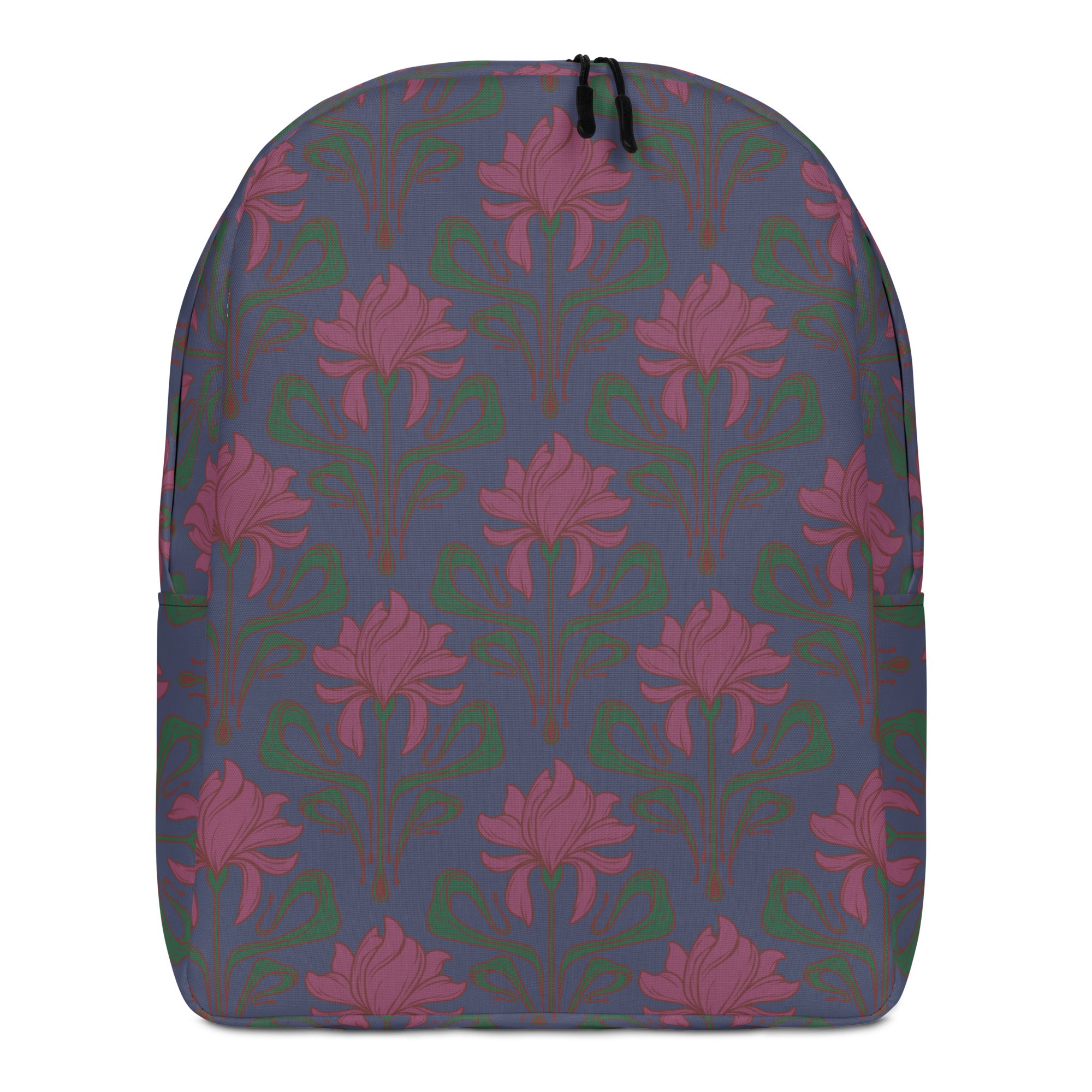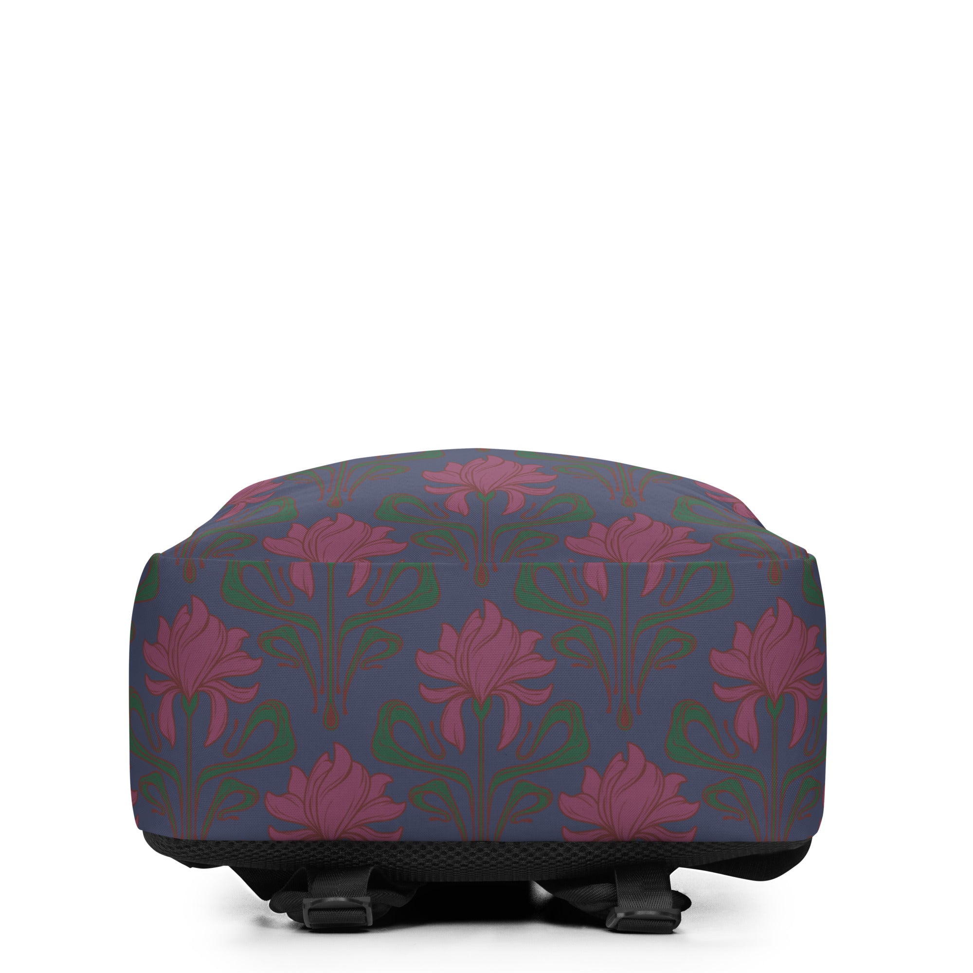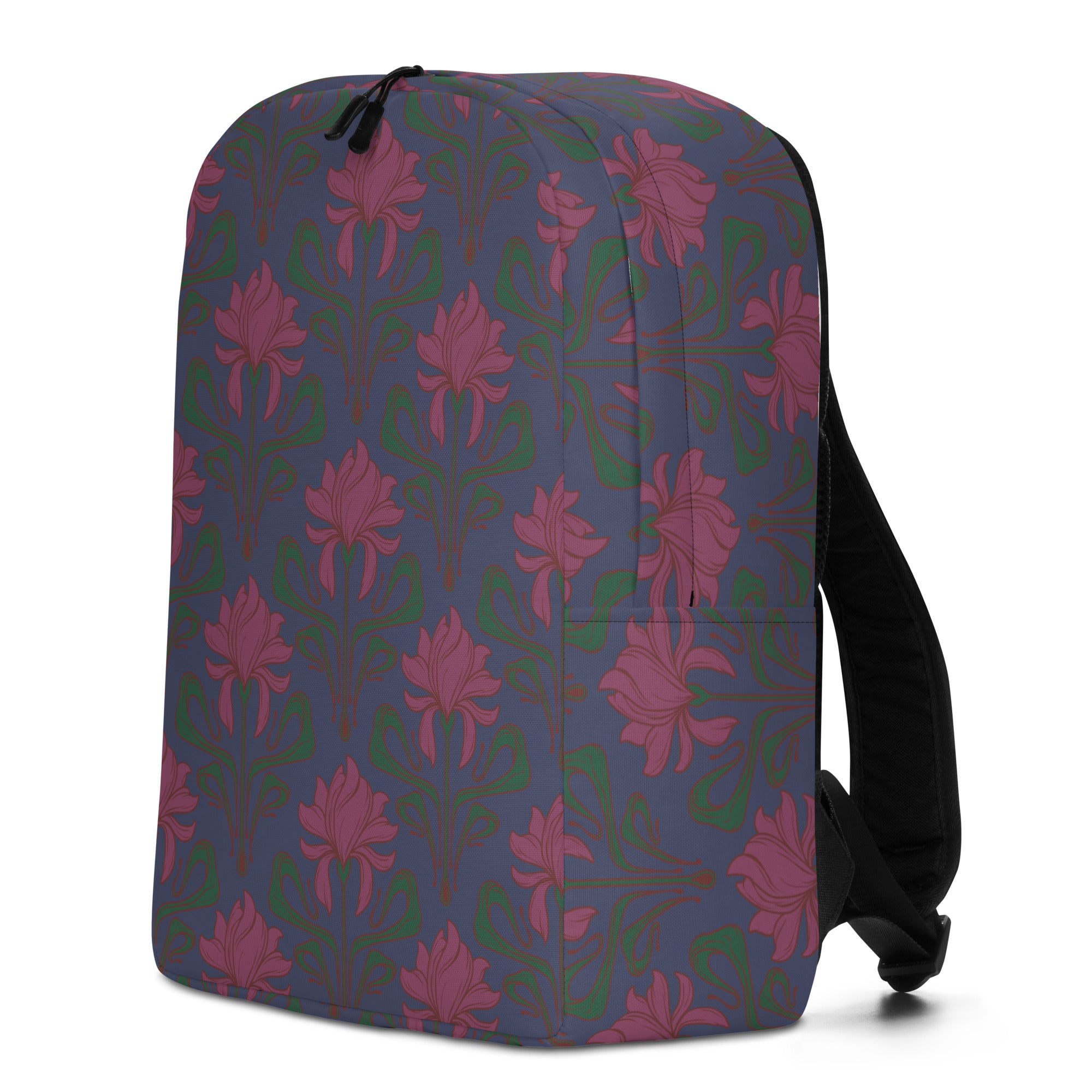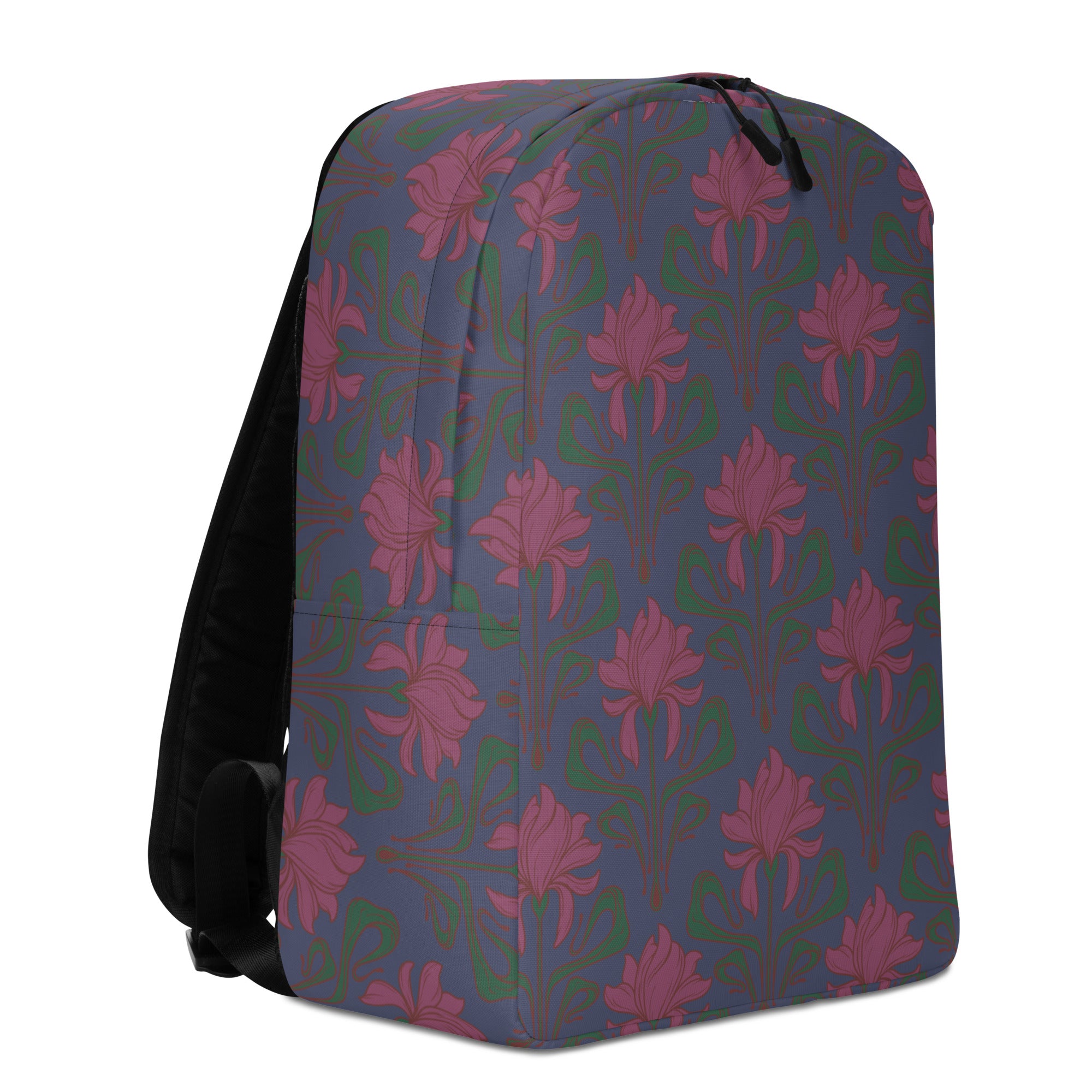 A beautiful Art Nouveau inspired iris print in wine with a crown blue colored background.