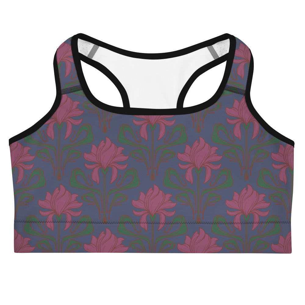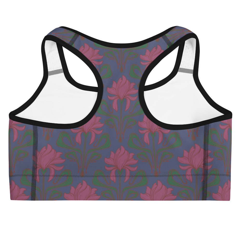This gorgeous sports bra is made from moisture-wicking material that stays dry during low and medium intensity workouts. The bra has support material in the shoulder straps, double layer front, and a wide elastic band to ensure constant support.