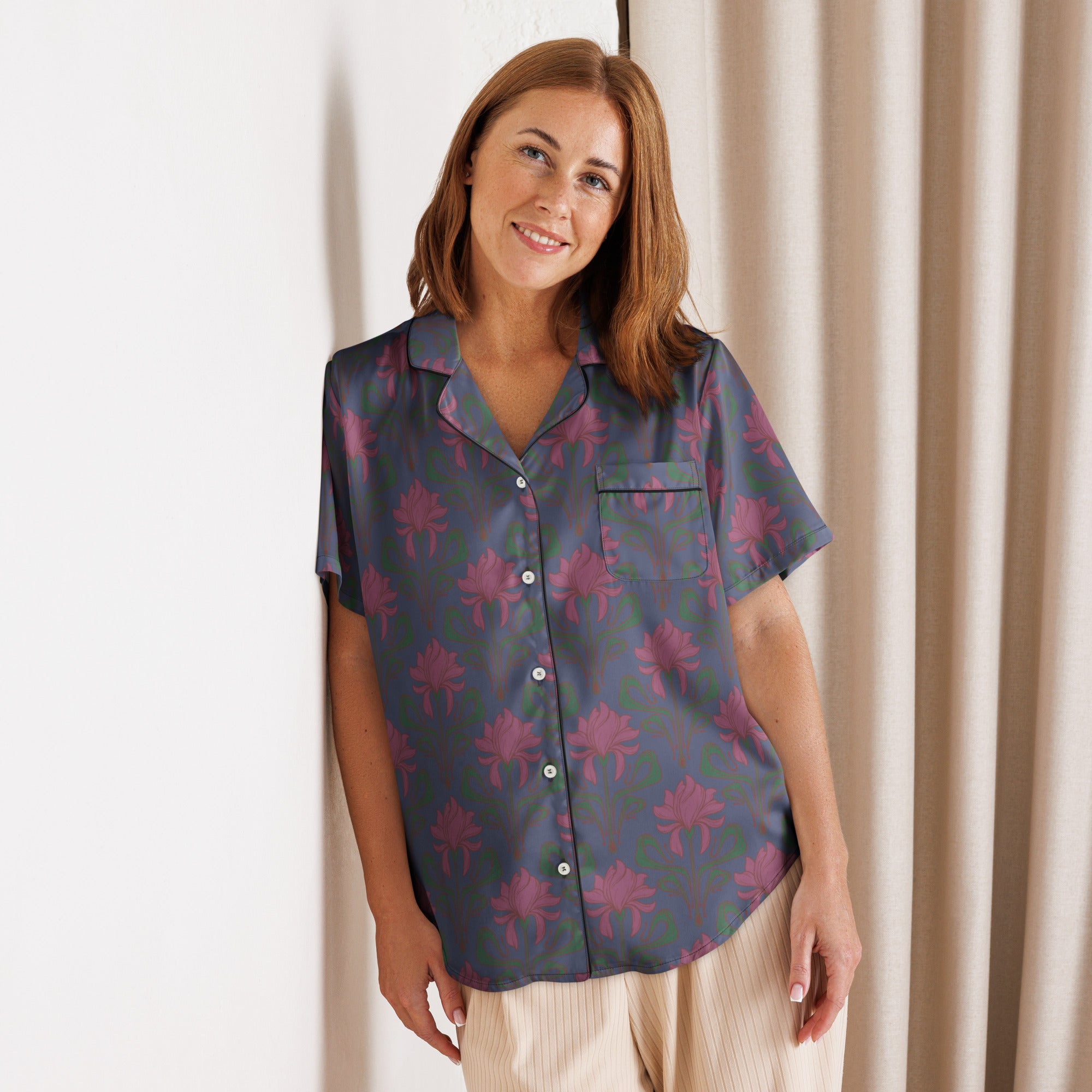 This silky-feel pajama top is wonderful as part of nightwear and doubles as stylish loungewear. The high-quality satin material will make you feel comfy, beautiful, and pampered.