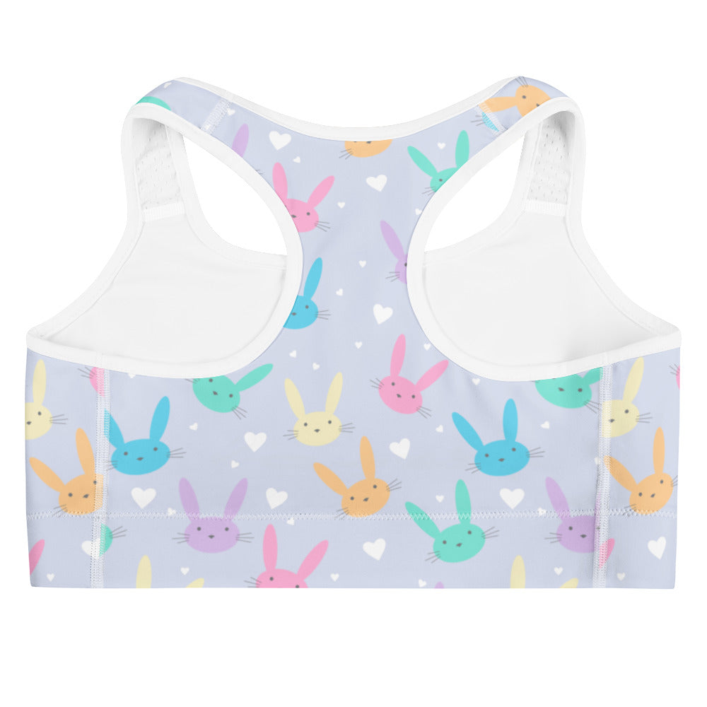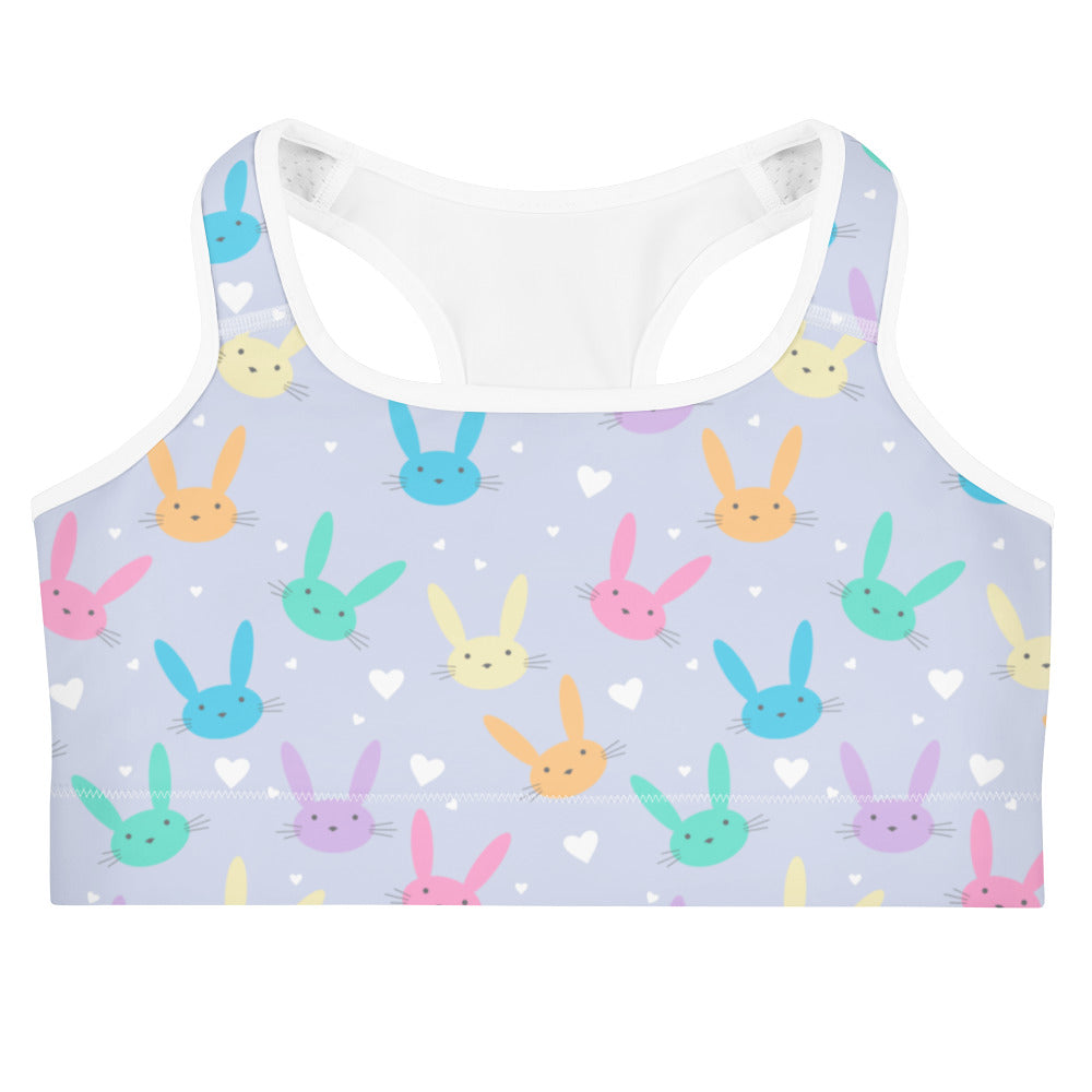 Adorable pastel colored bunnies adorn this pale purple print. Tiny white hearts are scattered around them to create a print that is kawaii.