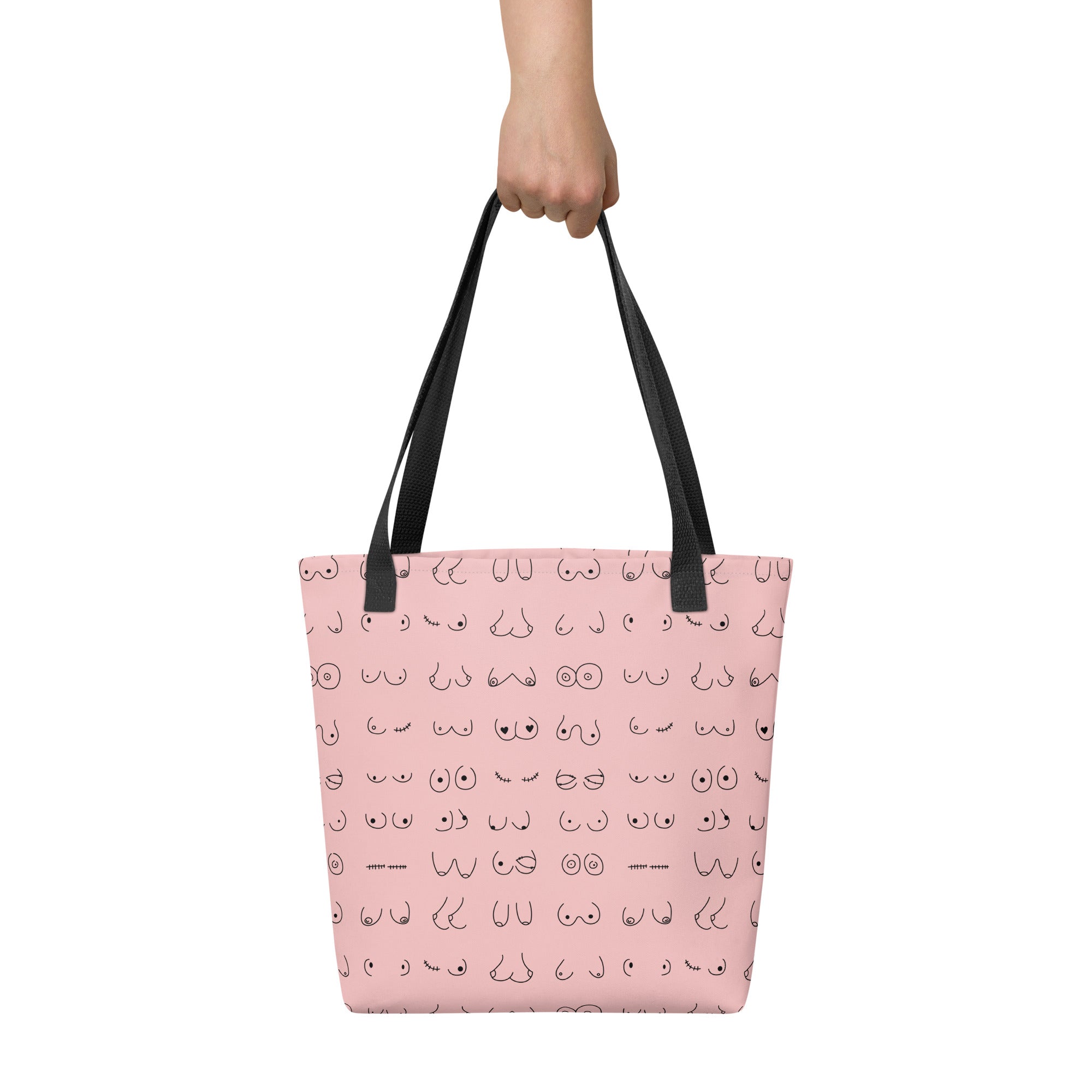 Every pair is the perfect pair. Old or new. Original, modified or both. This print is a blush pink background with all sorts of boobies in black.