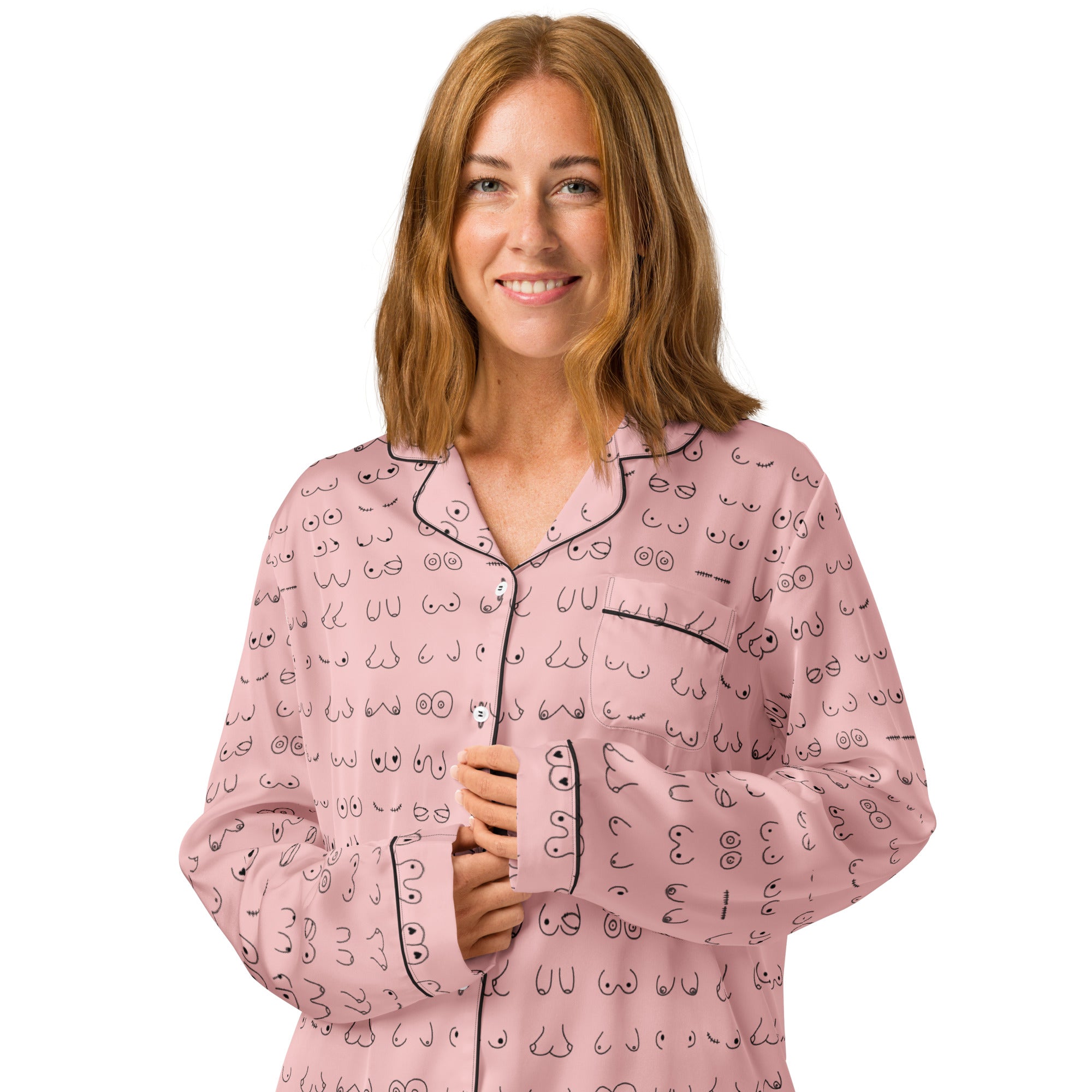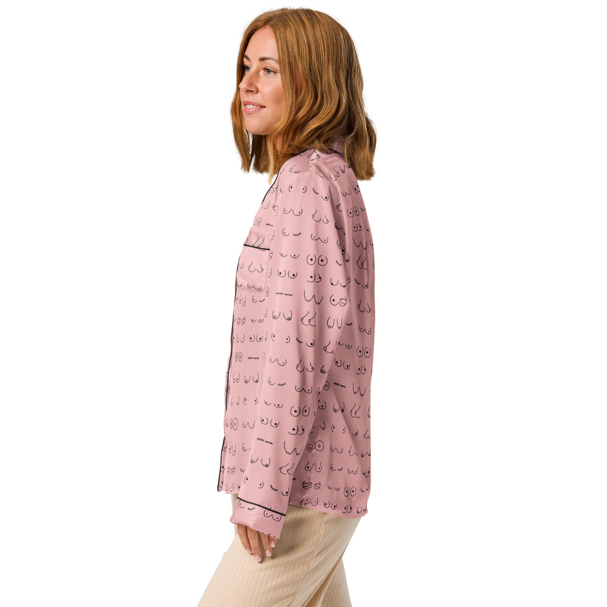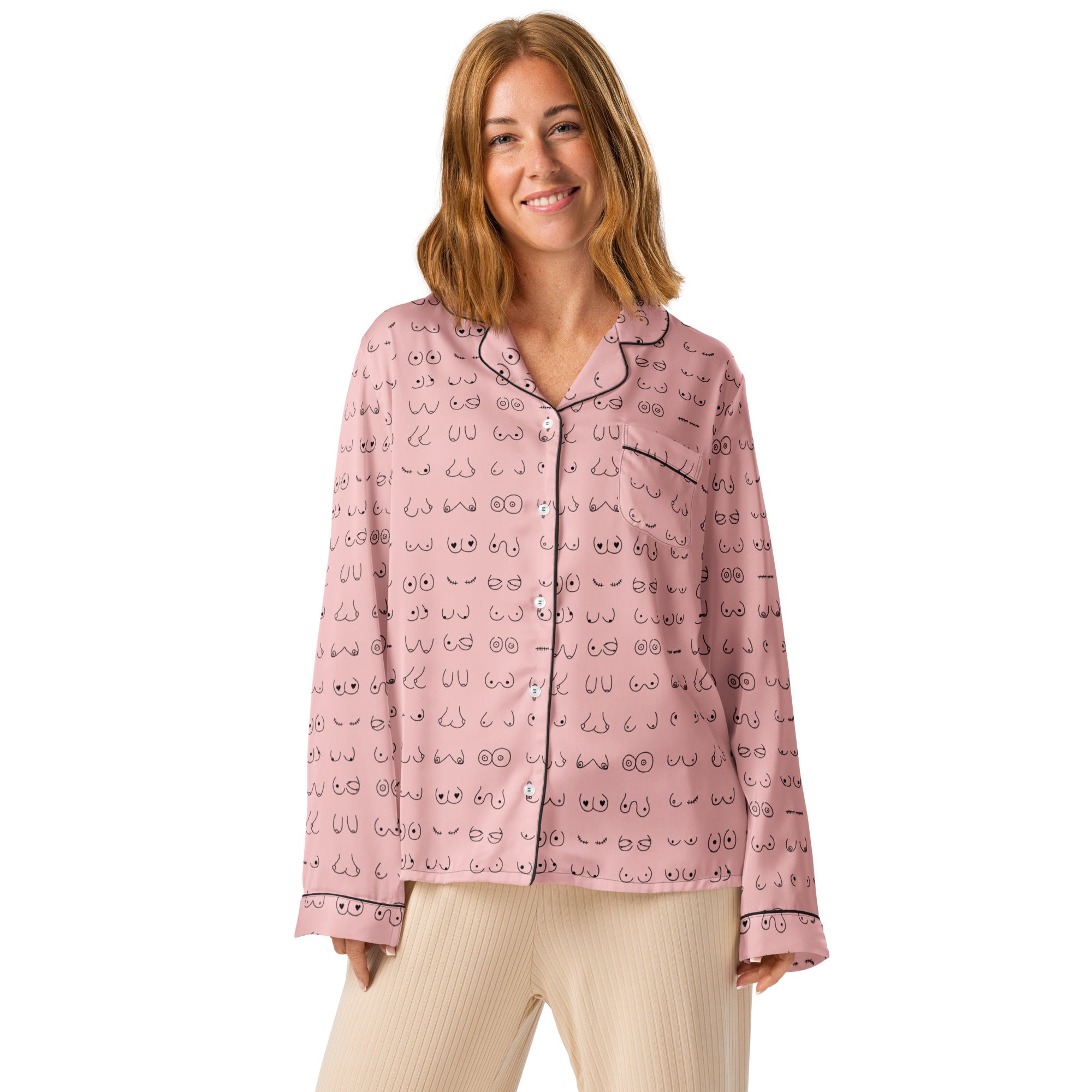 Every pair is the perfect pair. Old or new. Original, modified or both. Those ladies have given you hell so slip on some comfy pj's and relax for a bit. This print is a blush pink background with all sorts of boobies in black.