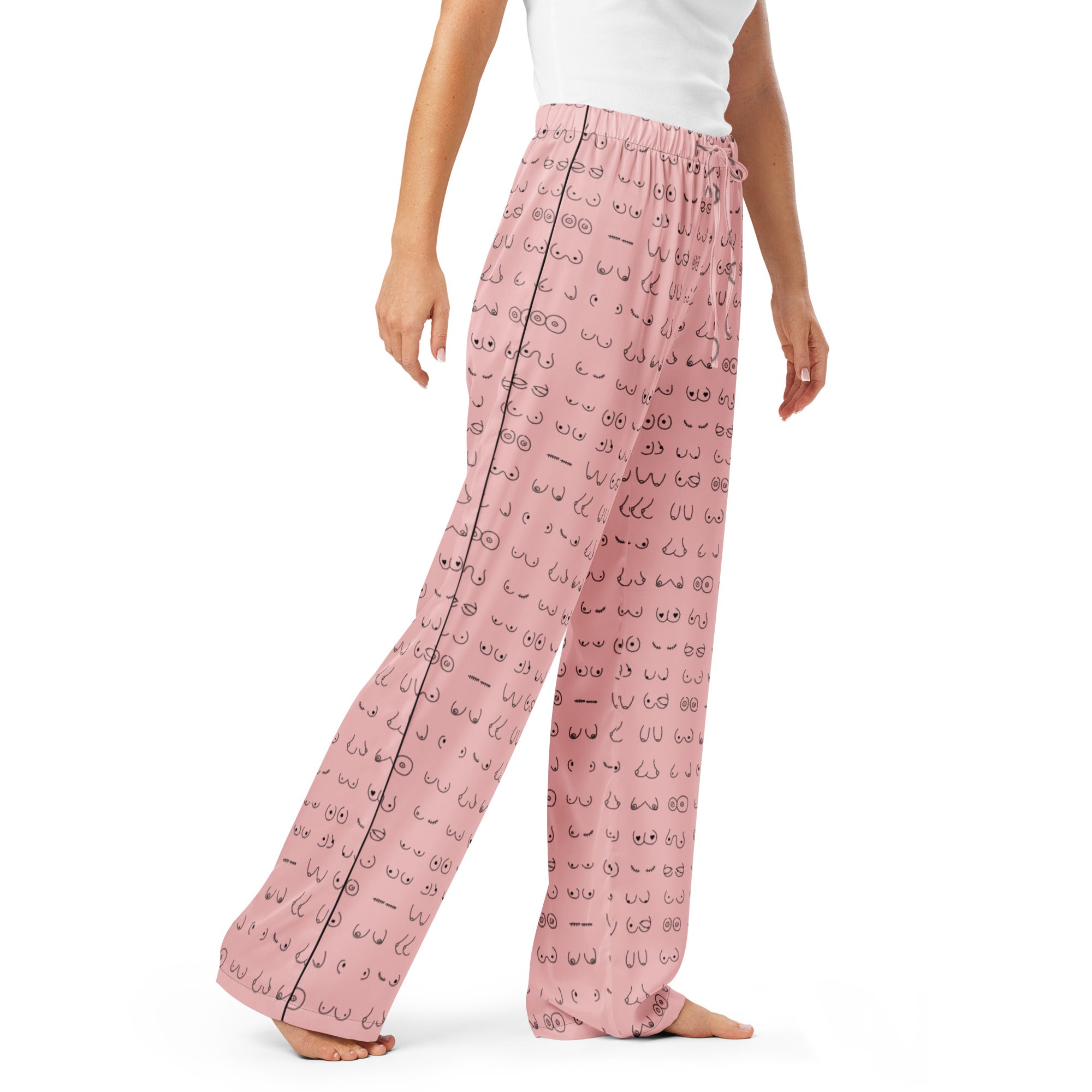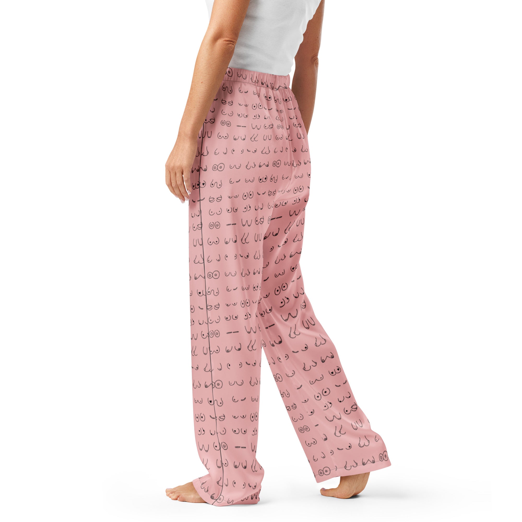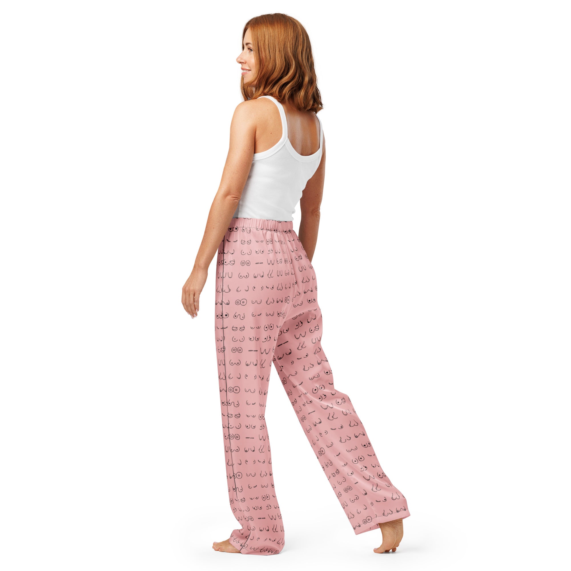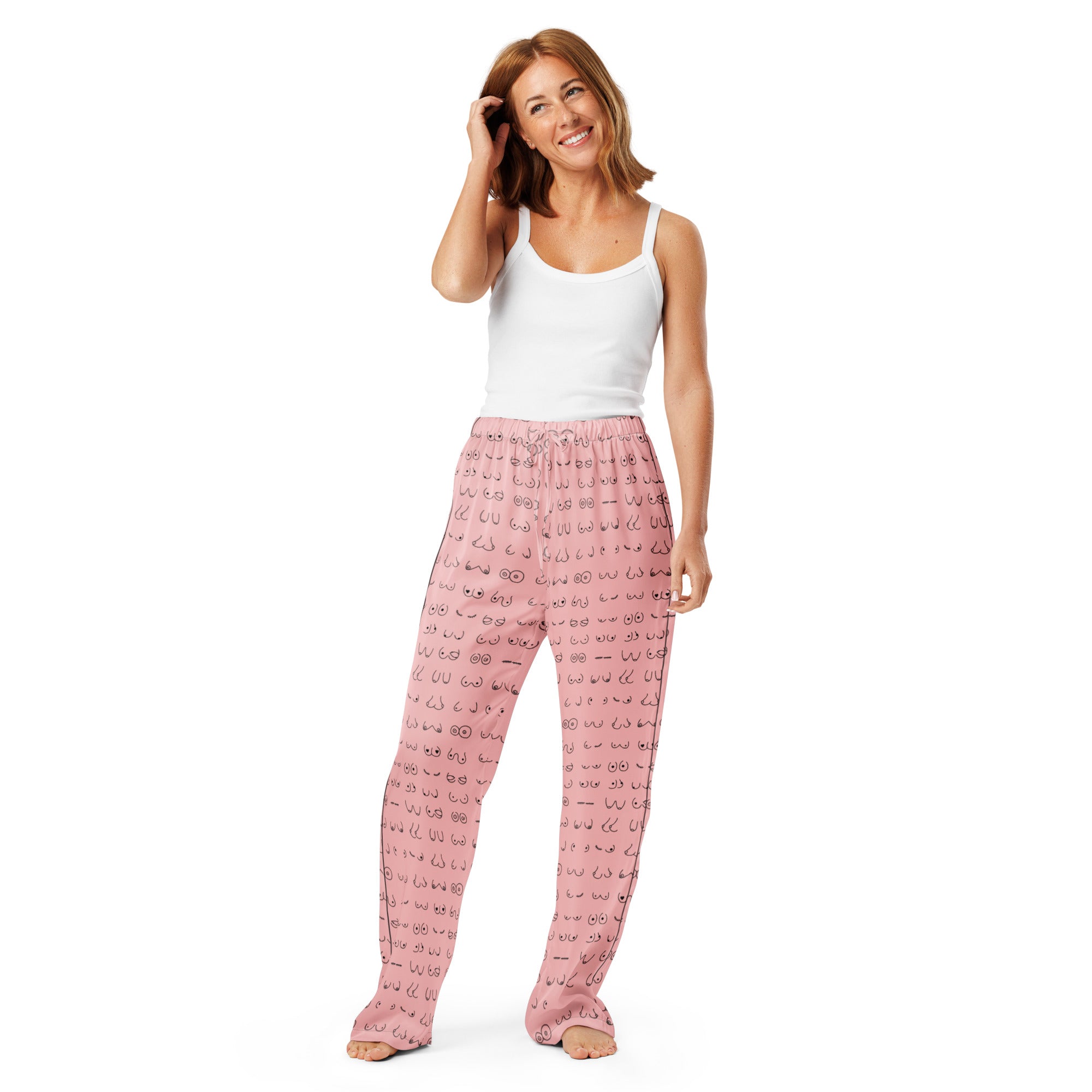 Every pair is the perfect pair. Old or new. Original, modified or both. Those ladies have given you hell so slip on some comfy pj's and relax for a bit. This print is a blush pink background with all sorts of boobies in black.