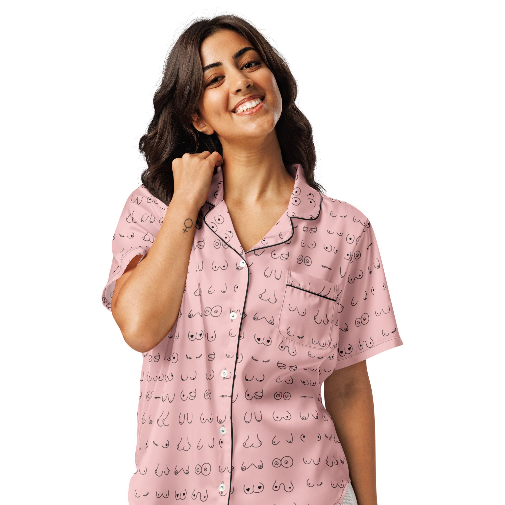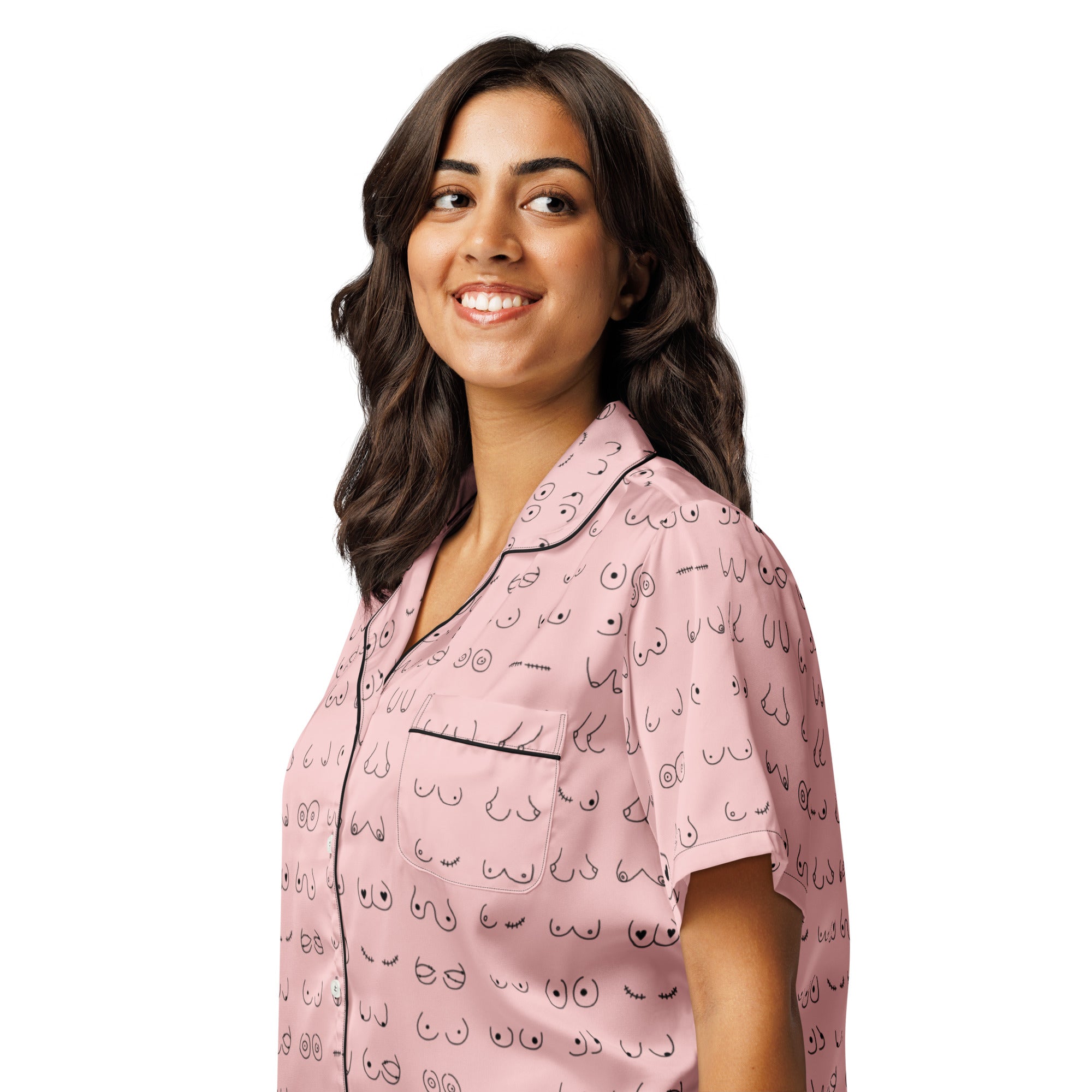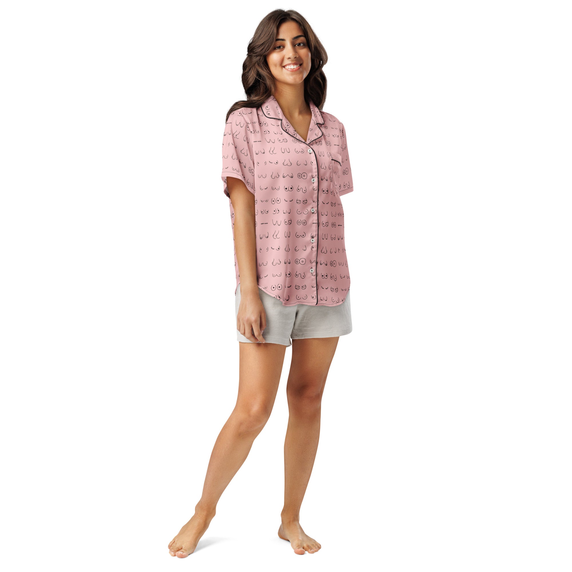 Every pair is the perfect pair. Old or new. Original, modified or both. Those ladies have given you hell so slip on some comfy pj's and relax for a bit. This print is a blush pink background with all sorts of boobies in black.