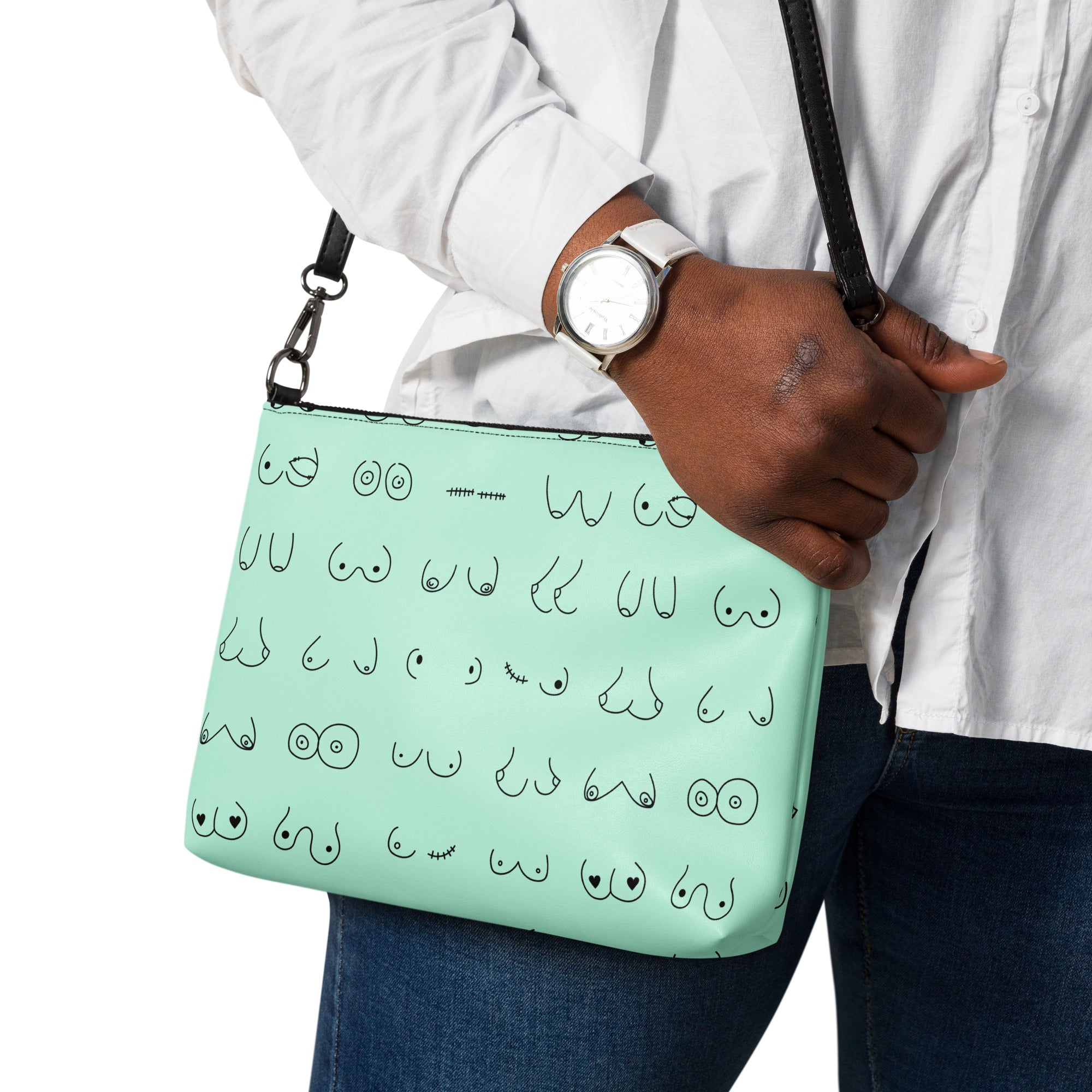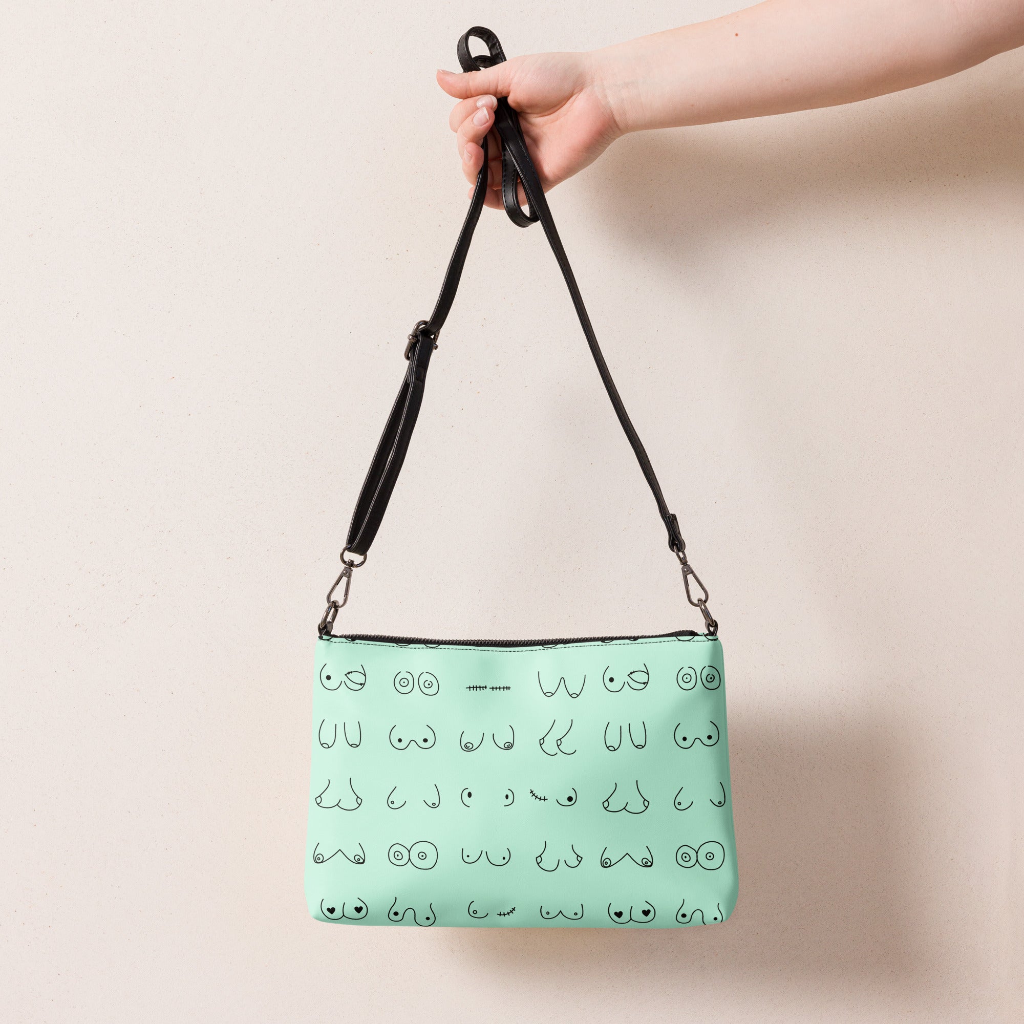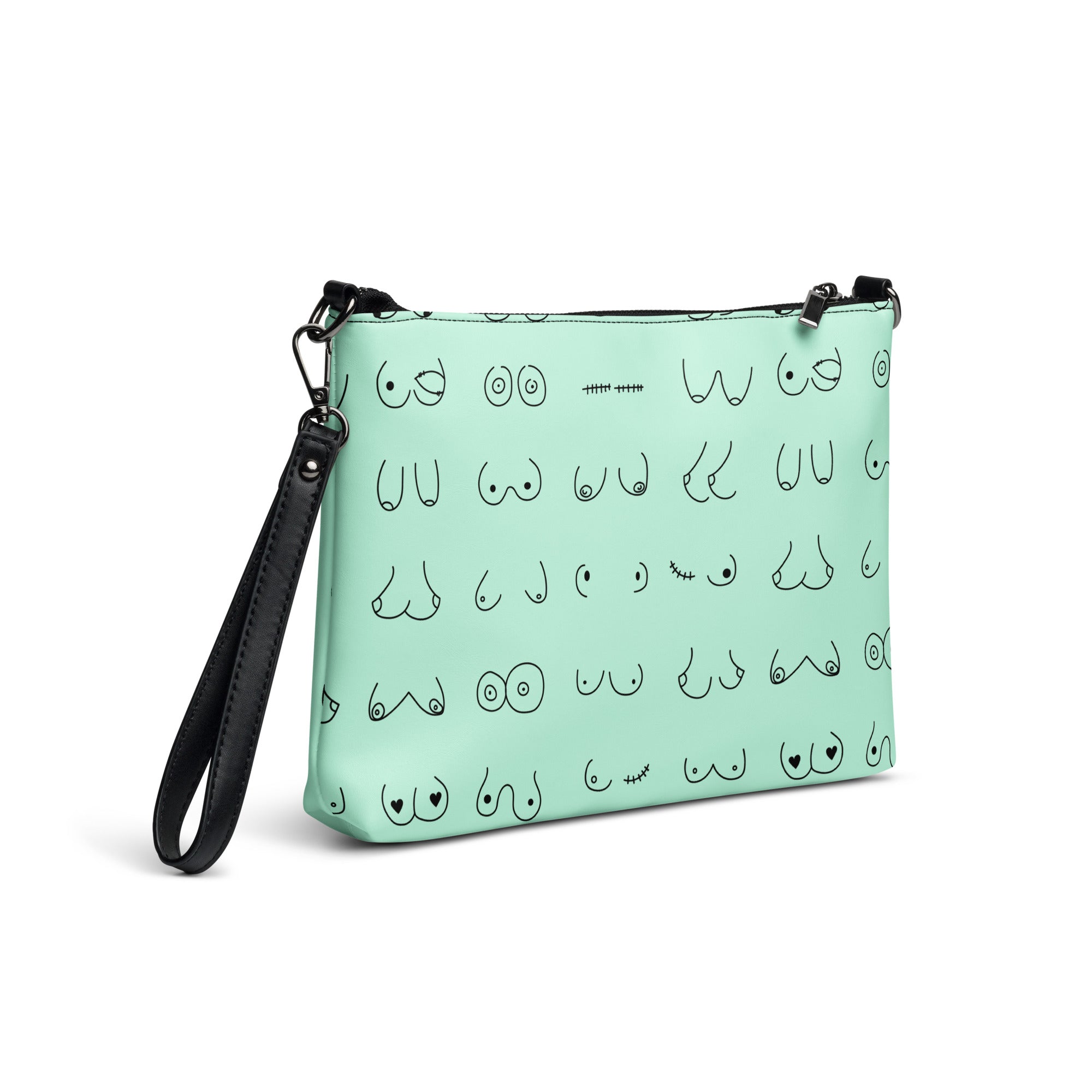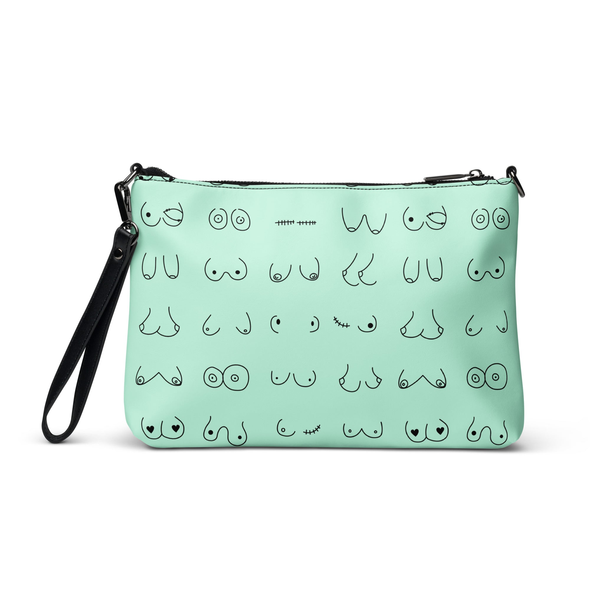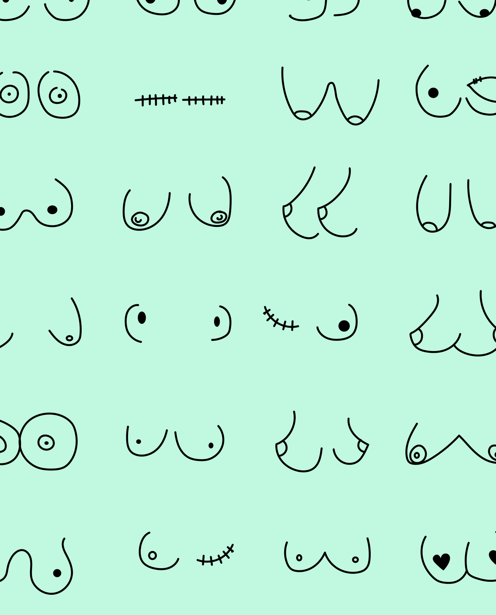 Every pair is the perfect pair. Old or new. Original, modified or both. This print is in a minty green background with all sorts of boobies in black.