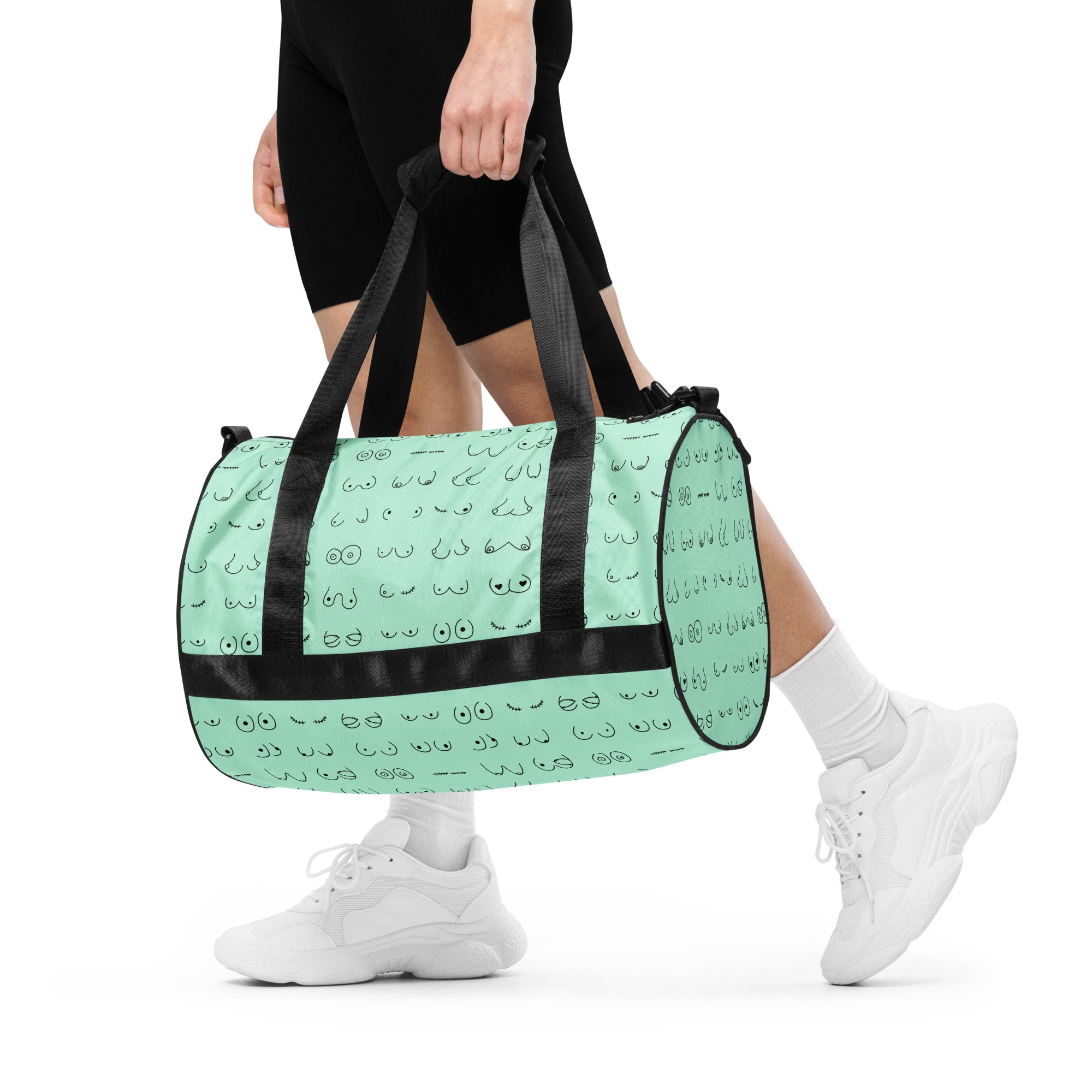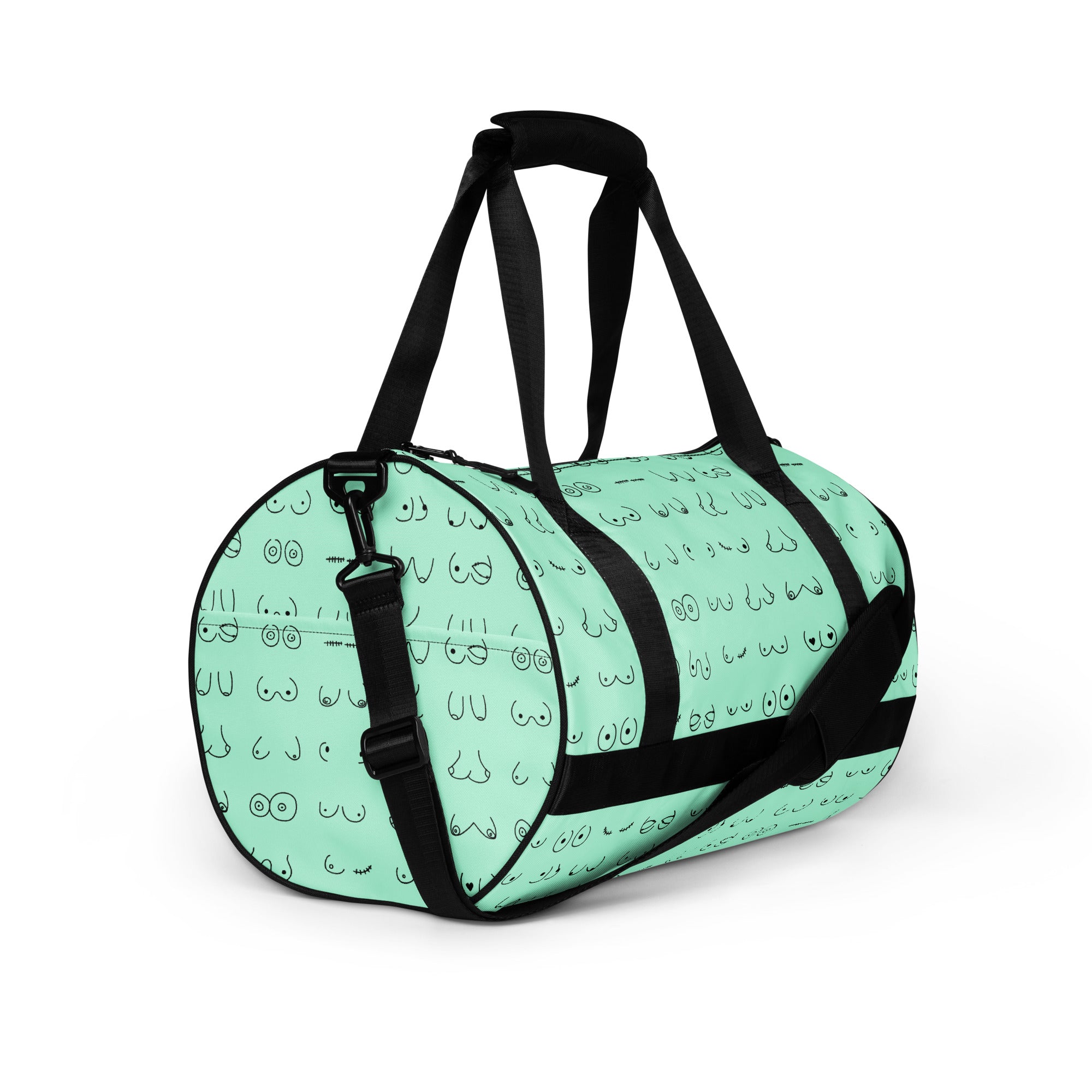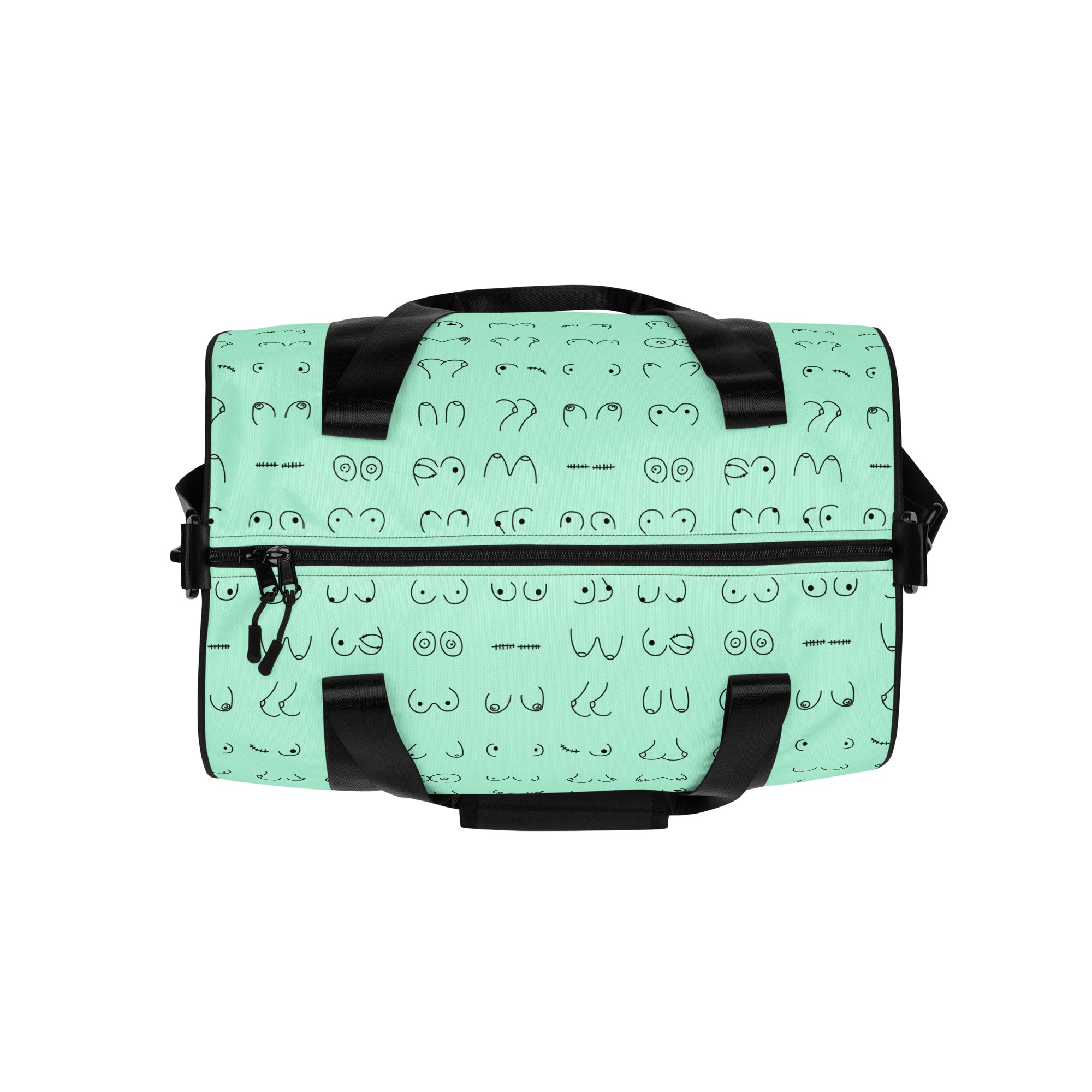 Every pair is the perfect pair. Old or new. Original, modified or both. This print is in a minty green background with all sorts of boobies in black.
