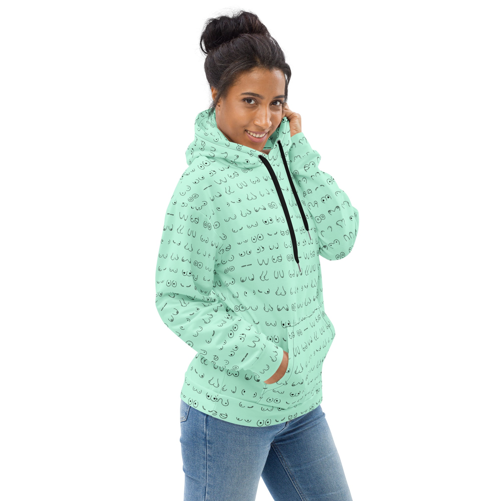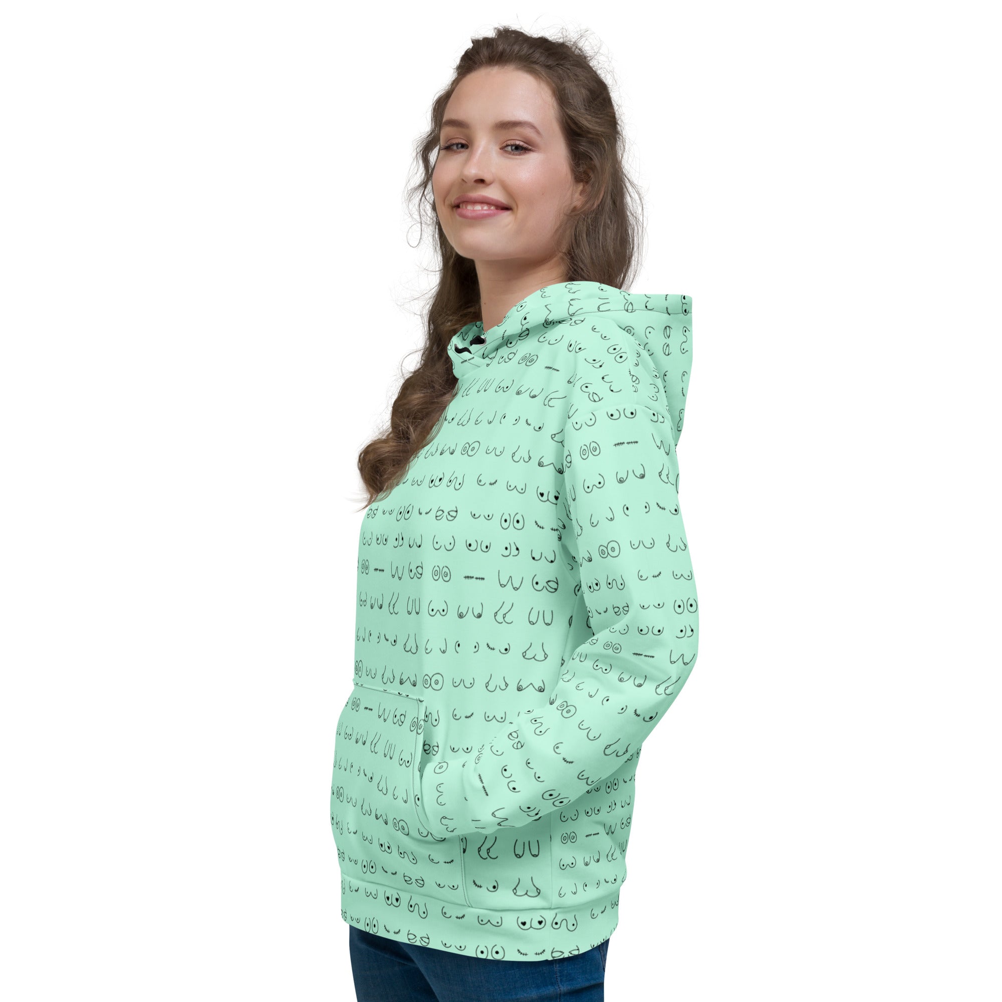 Every pair is the perfect pair. Old or new. Original, modified or both. Those ladies have given you hell so slip on something comfy and relax for a bit. This print is a minty green background with all sorts of boobies in black.