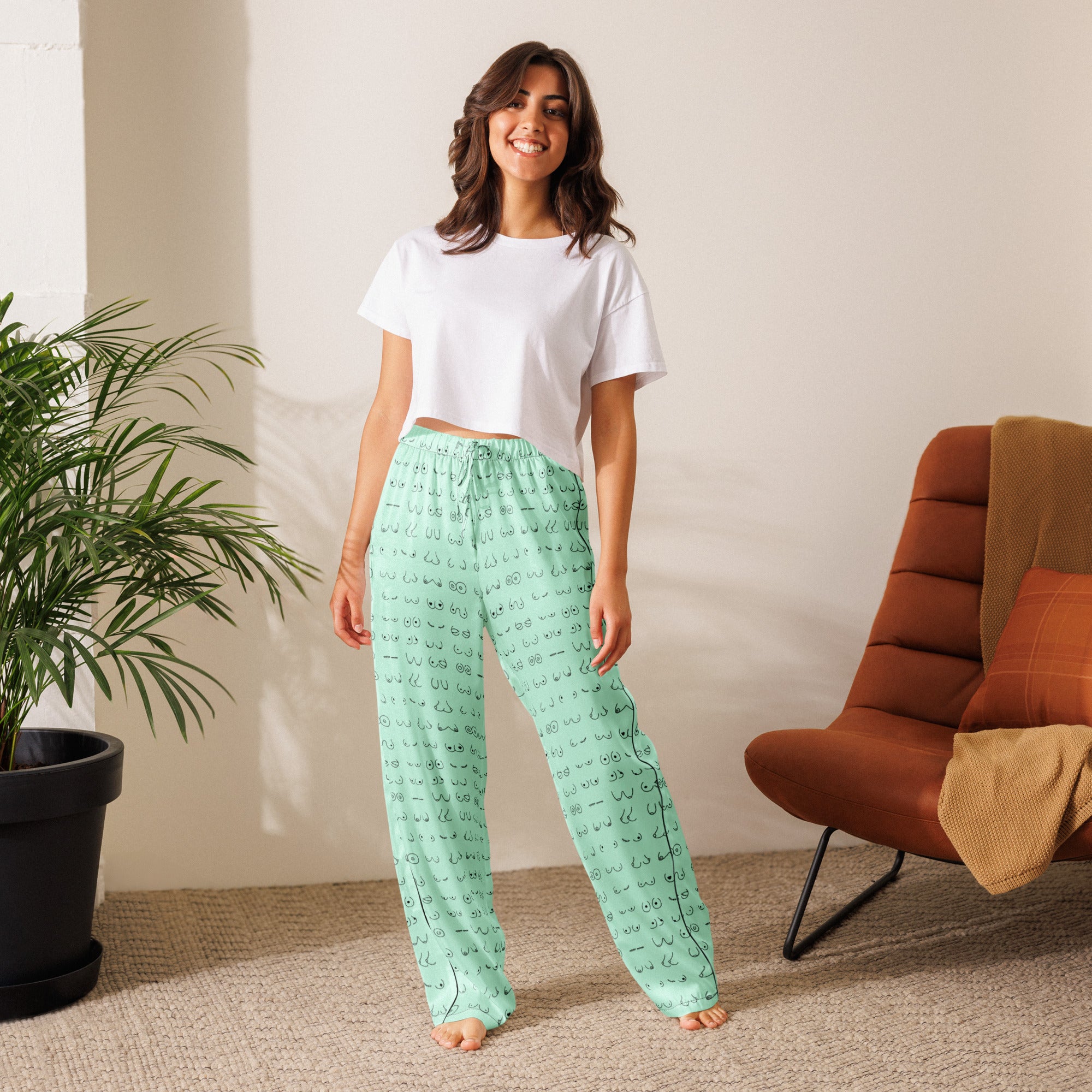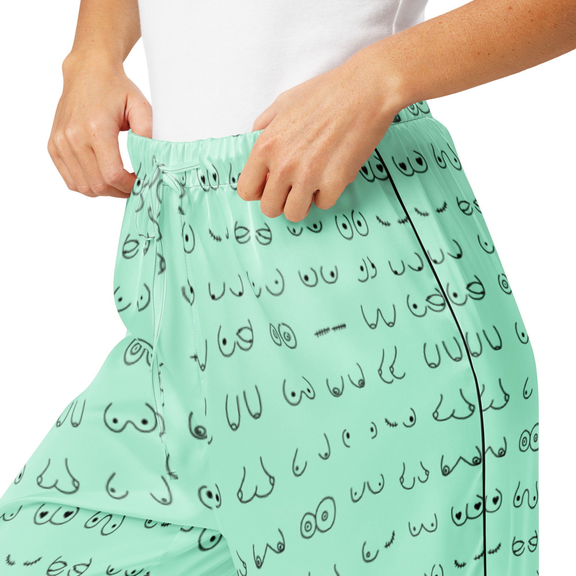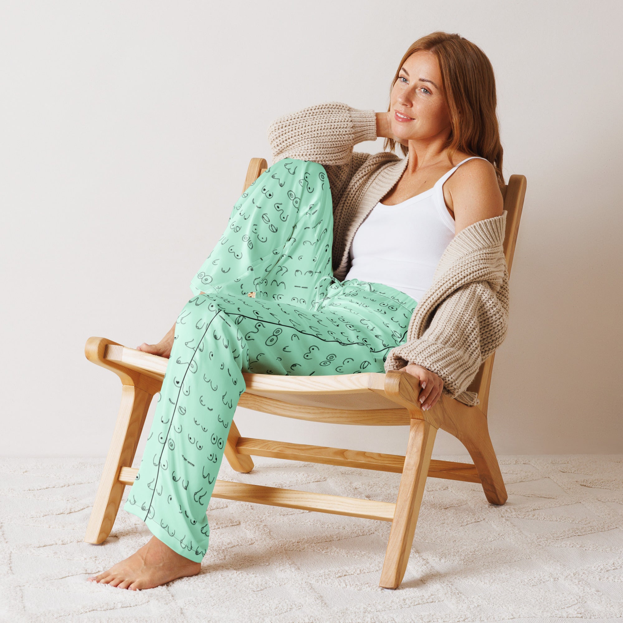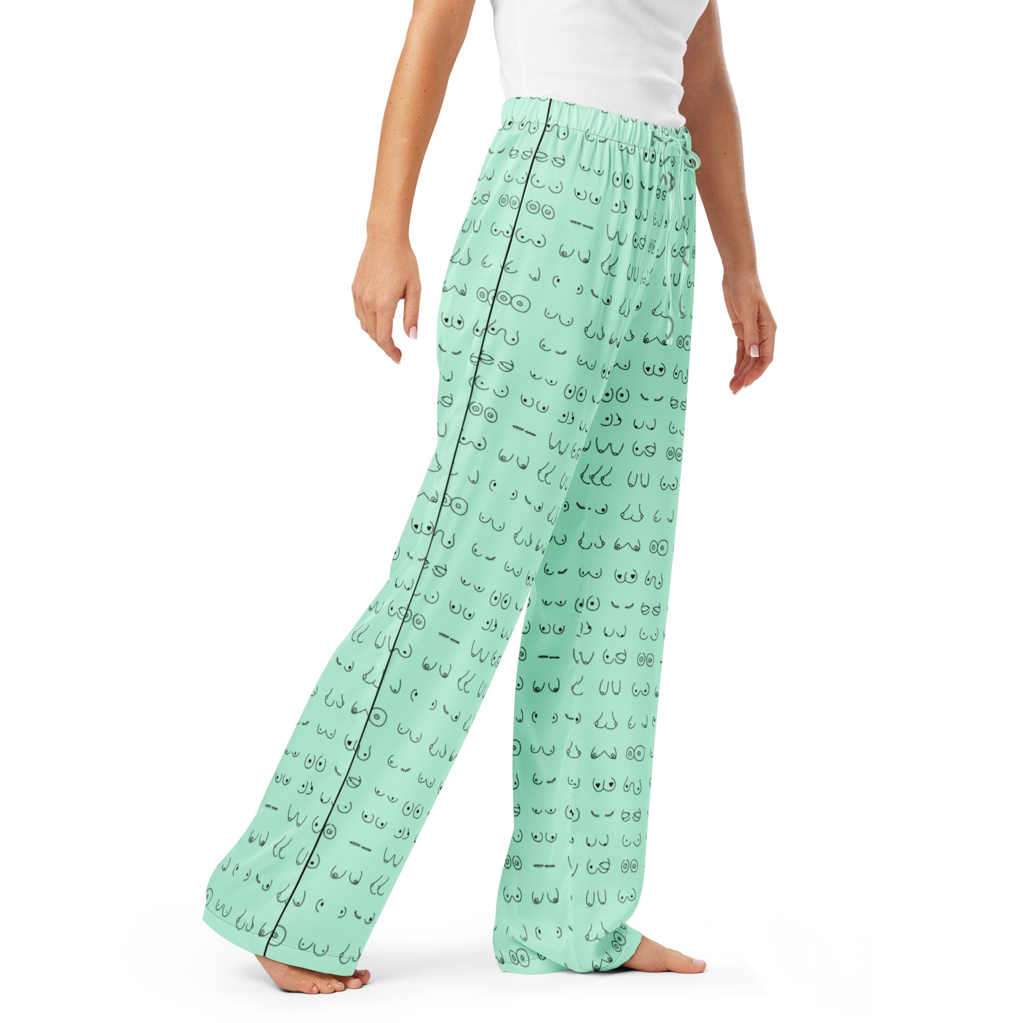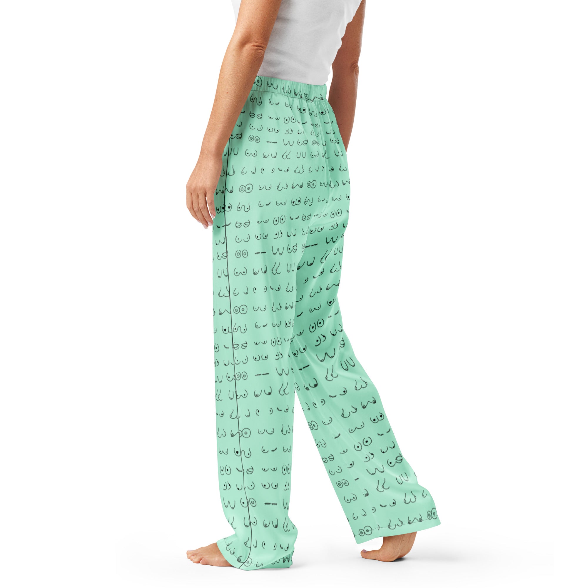 Every pair is the perfect pair. Old or new. Original, modified or both. Those ladies have given you hell so slip on some comfy pj's and relax for a bit. This print is a mint green background with all sorts of boobies in black.