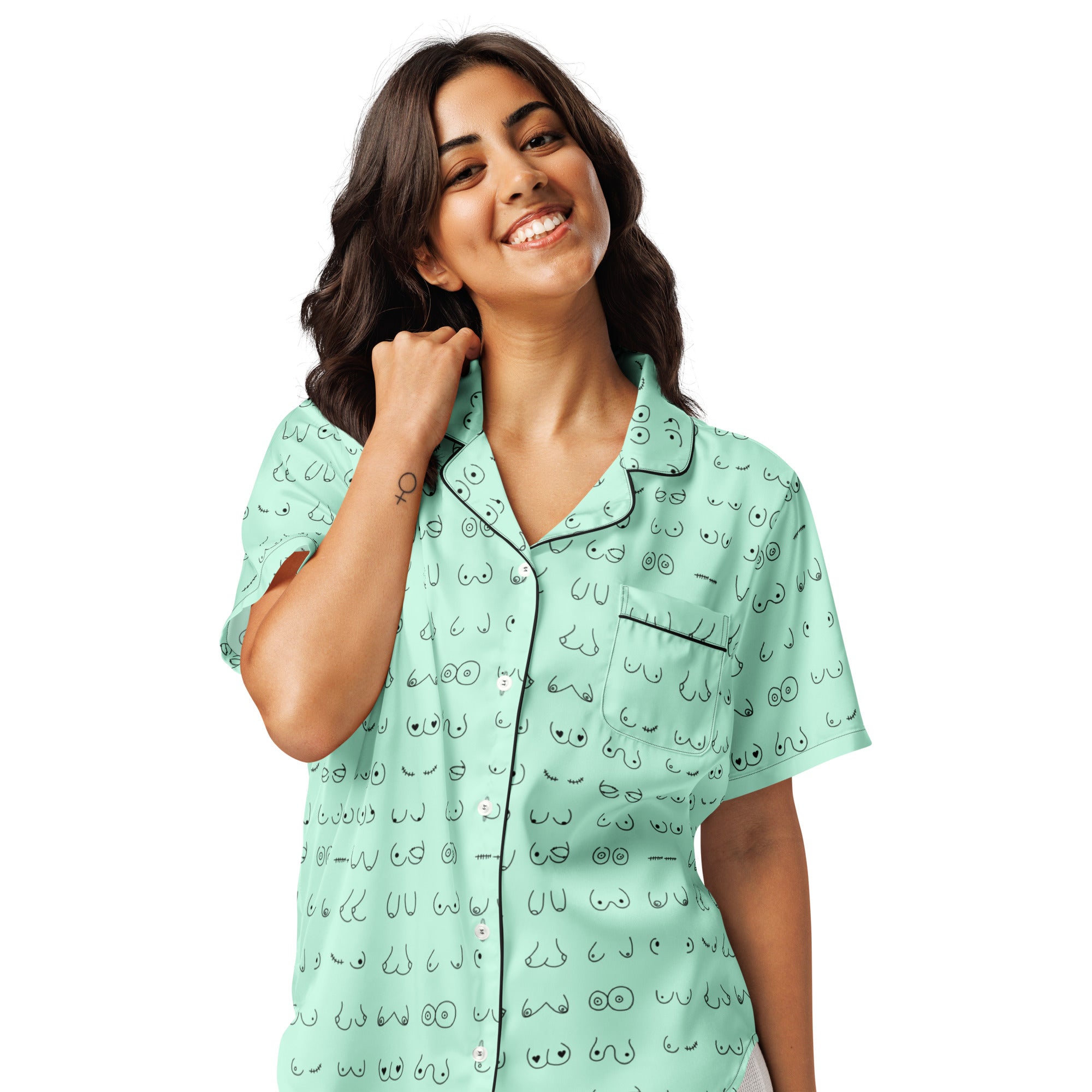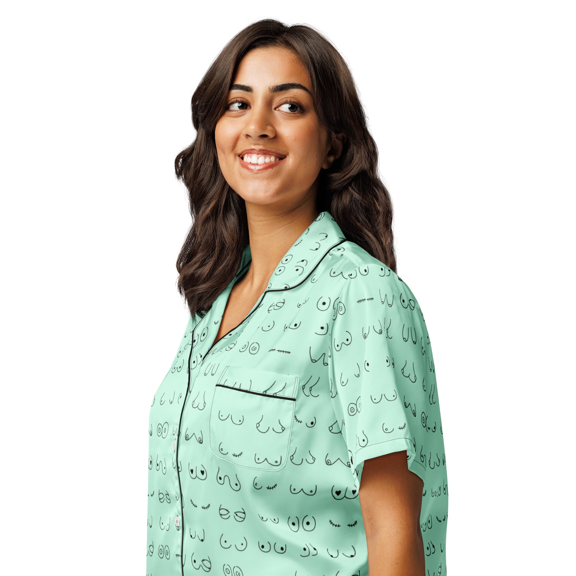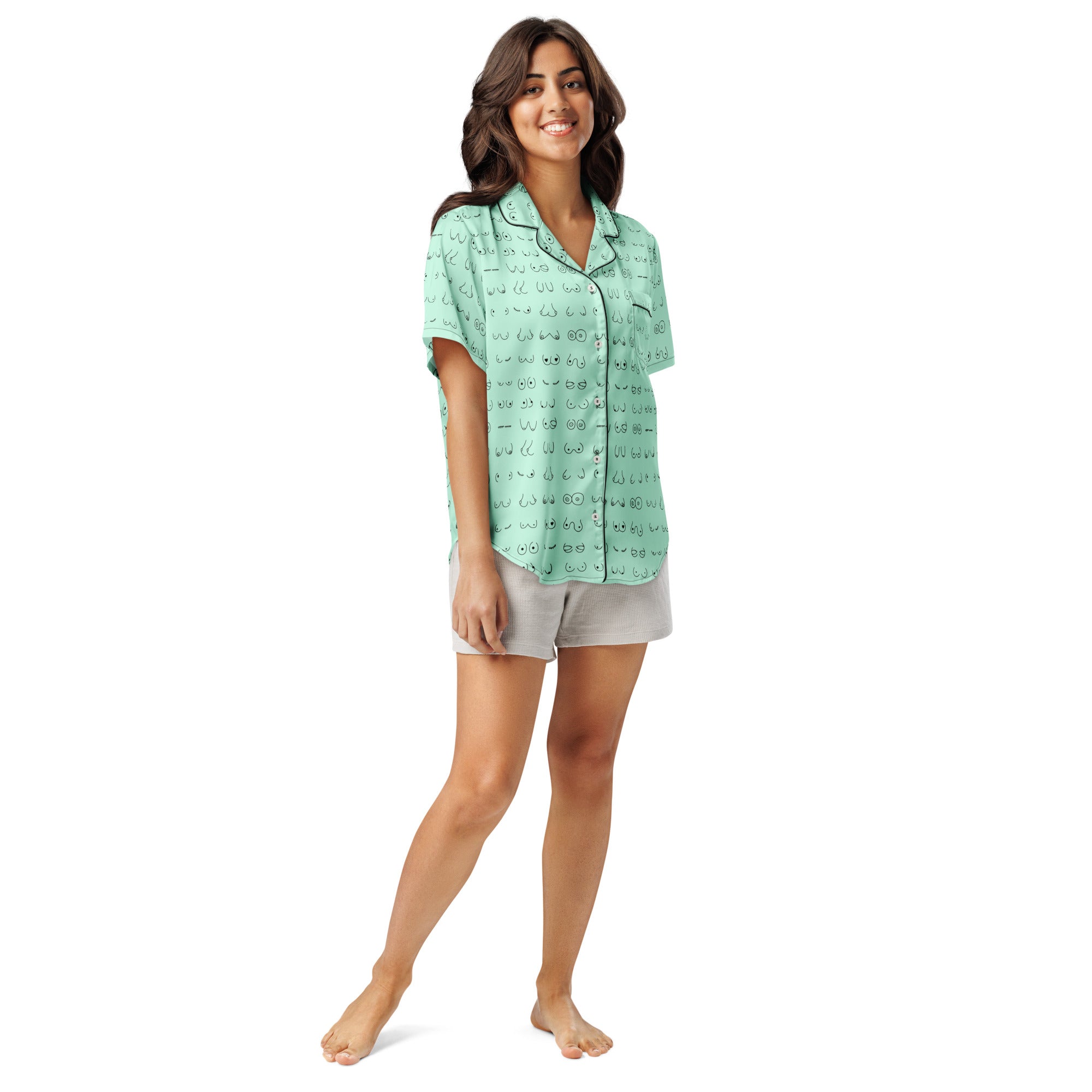 Every pair is the perfect pair. Old or new. Original, modified or both. Those ladies have given you hell so slip on some comfy pj's and relax for a bit. This print is a mint green background with all sorts of boobies in black.