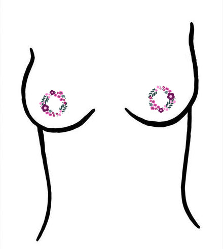 Introducing a stunning set of pink floral wreaths tattoos, perfect for adding a touch of whimsy to your skin! These charming designs are specifically crafted for women who have undergone breast surgery and are looking to adorn their skin with something playful and temporary.