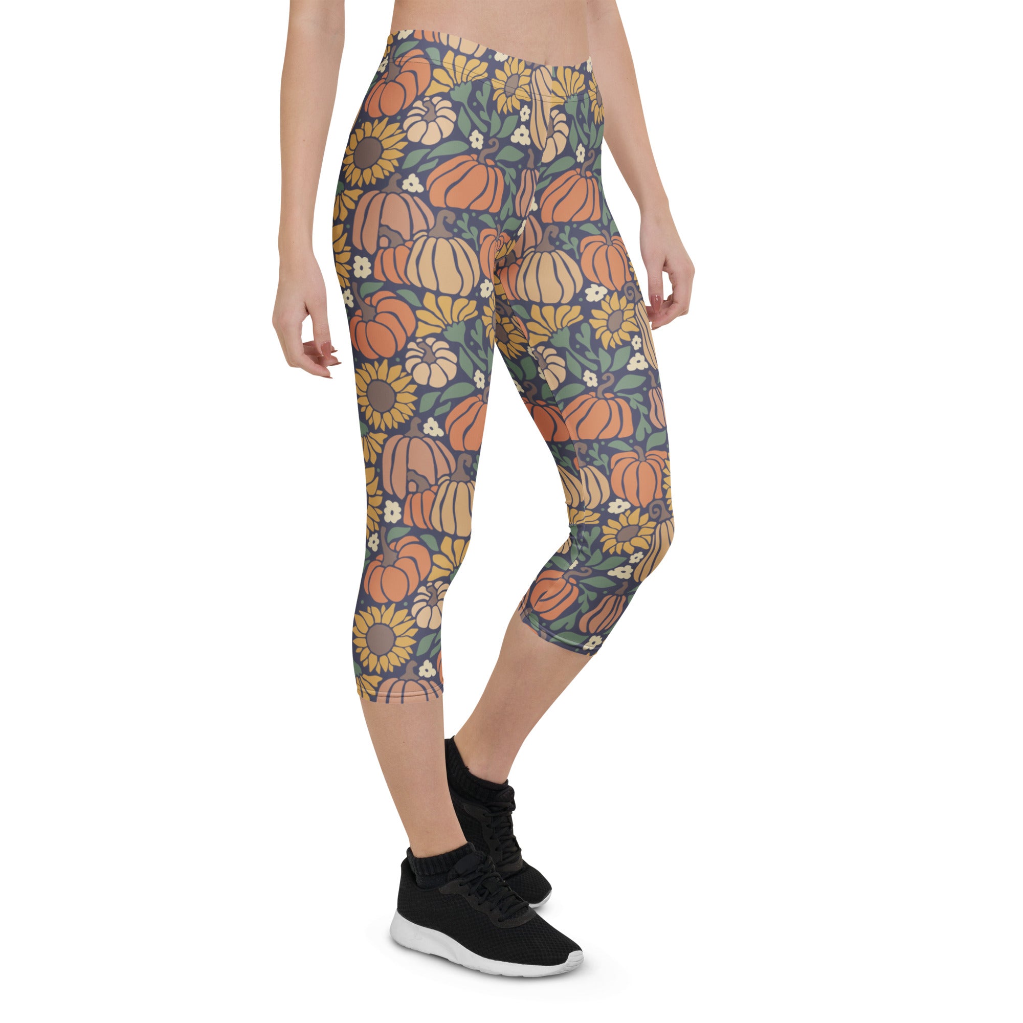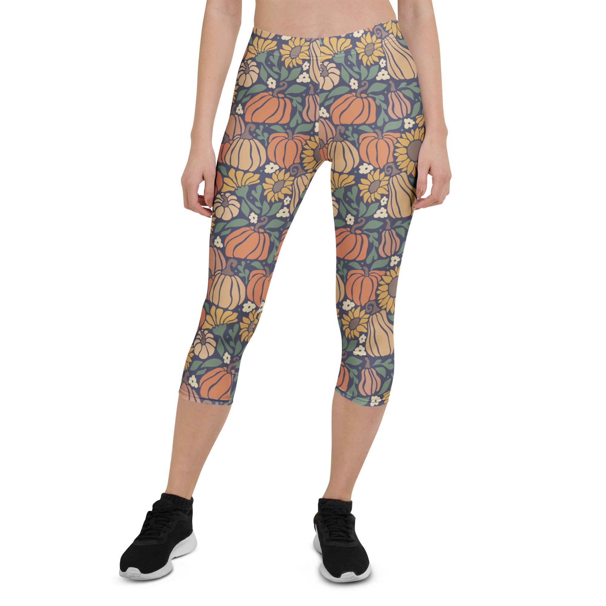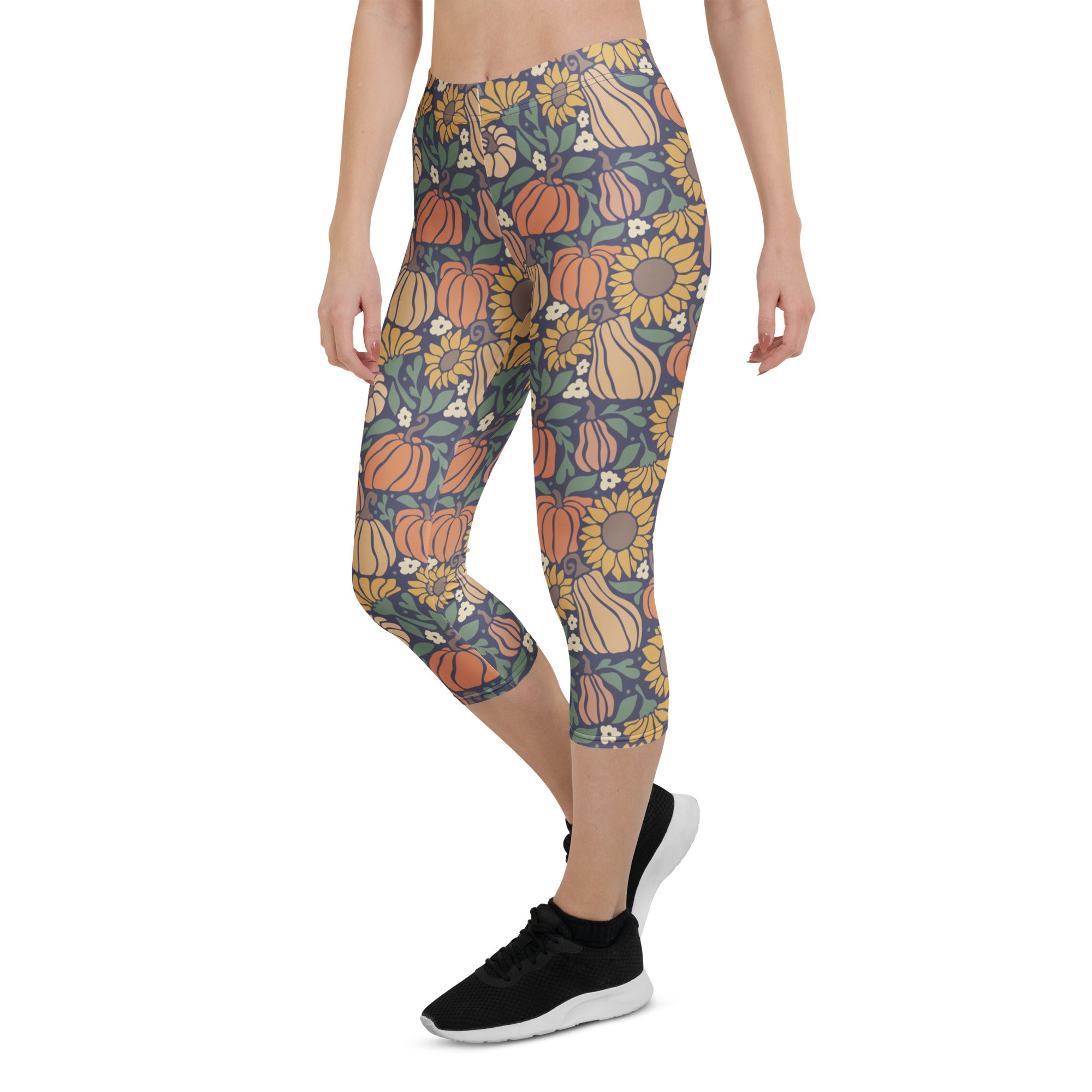 A bright and happy pumpkin and sunflower print that is perfect to wear for all your fall events.