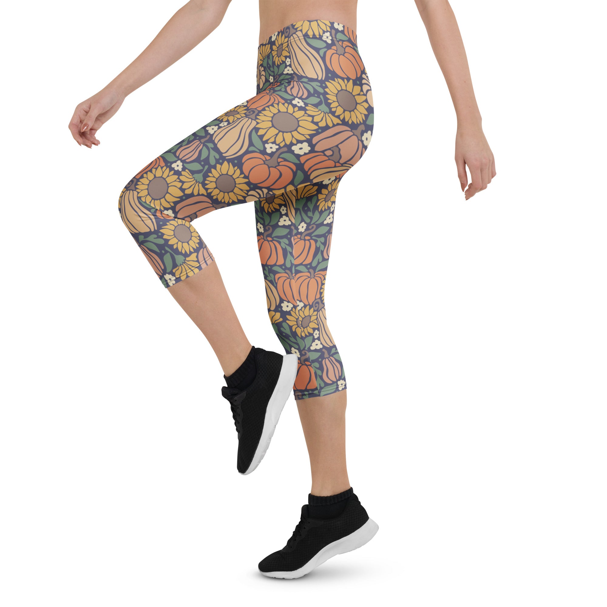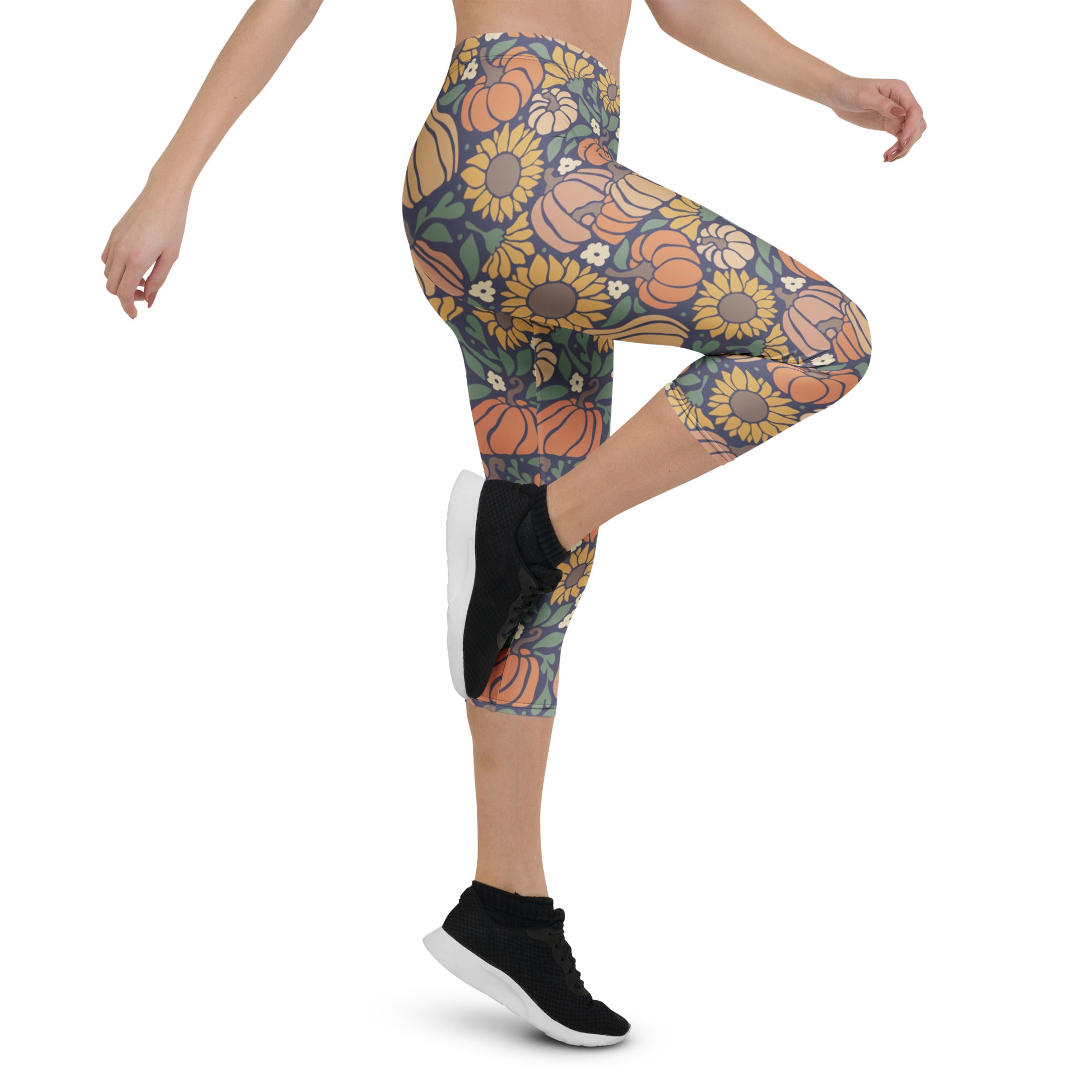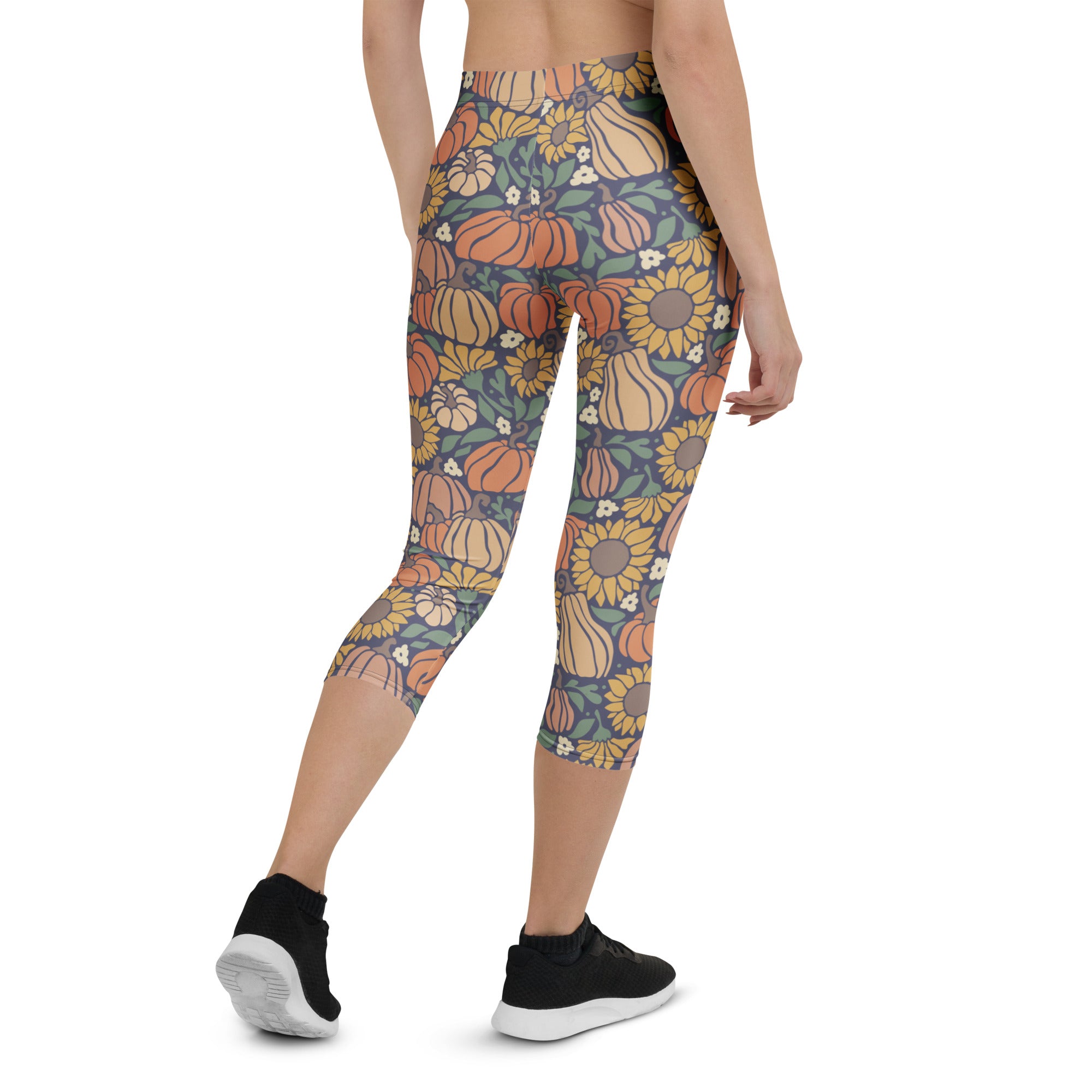 A bright and happy pumpkin and sunflower print that is perfect to wear for all your fall events.