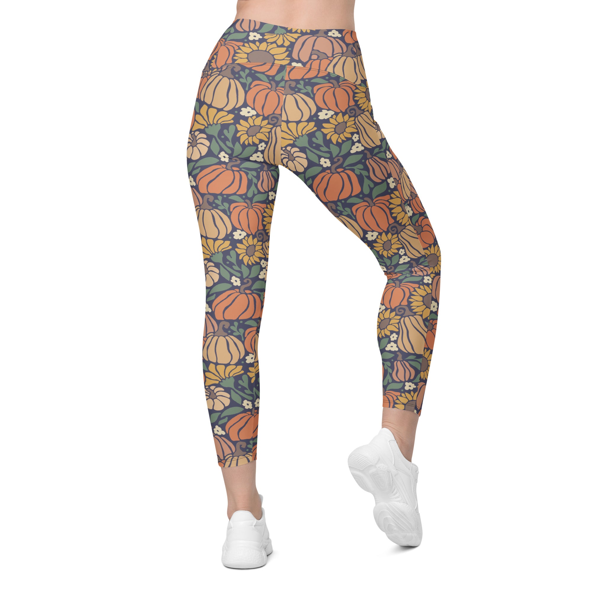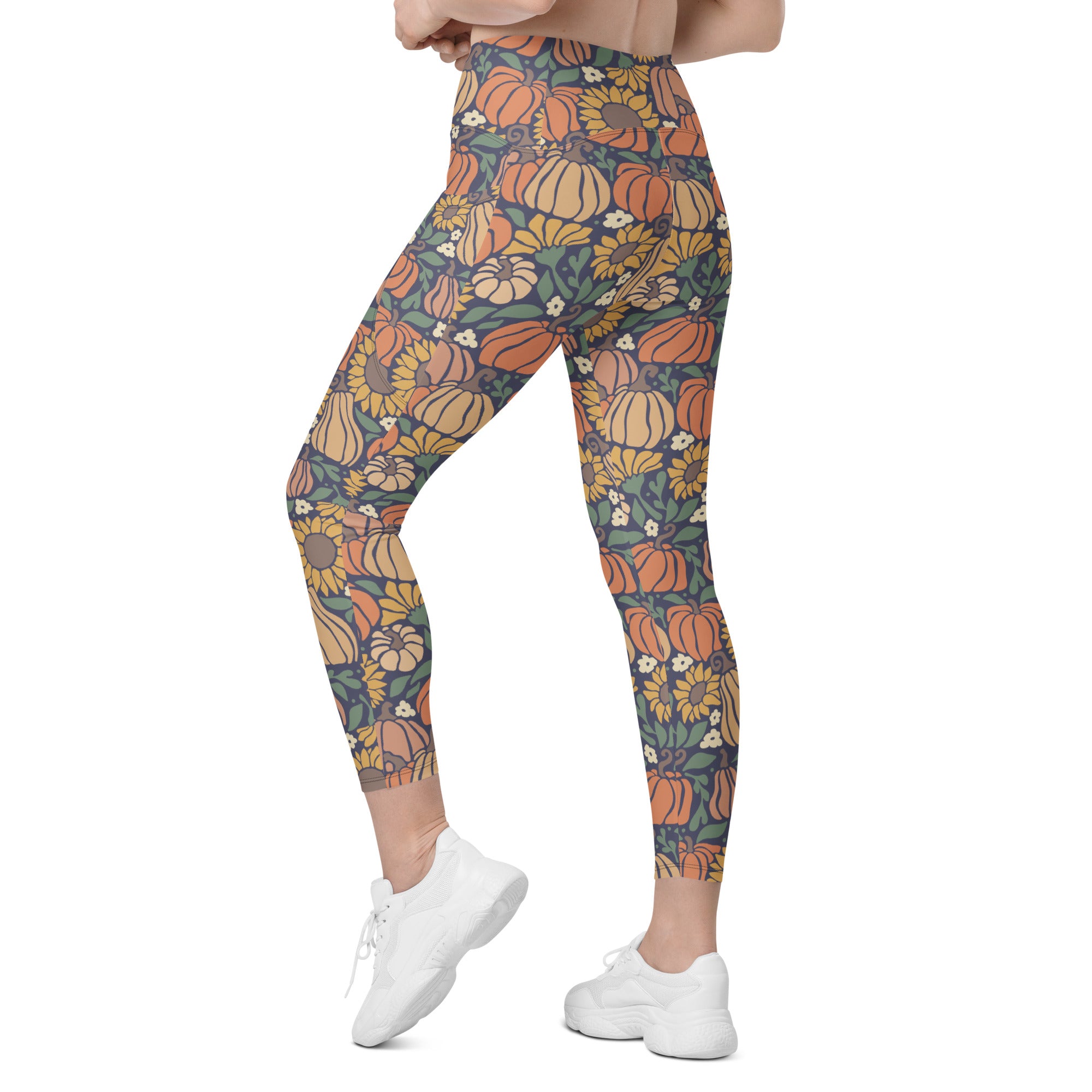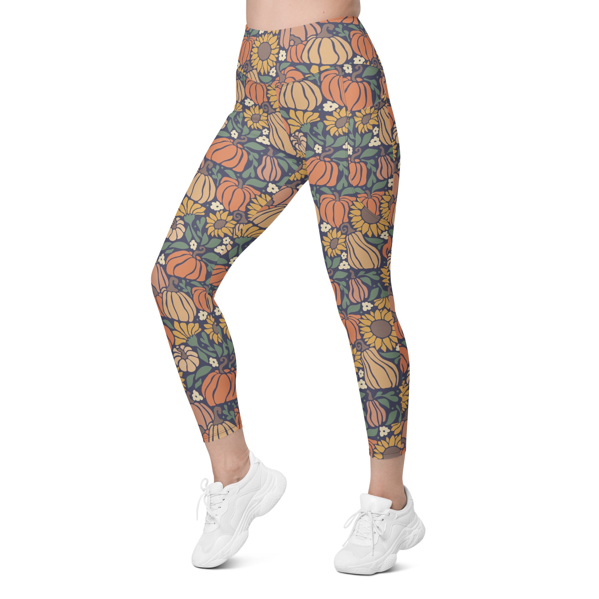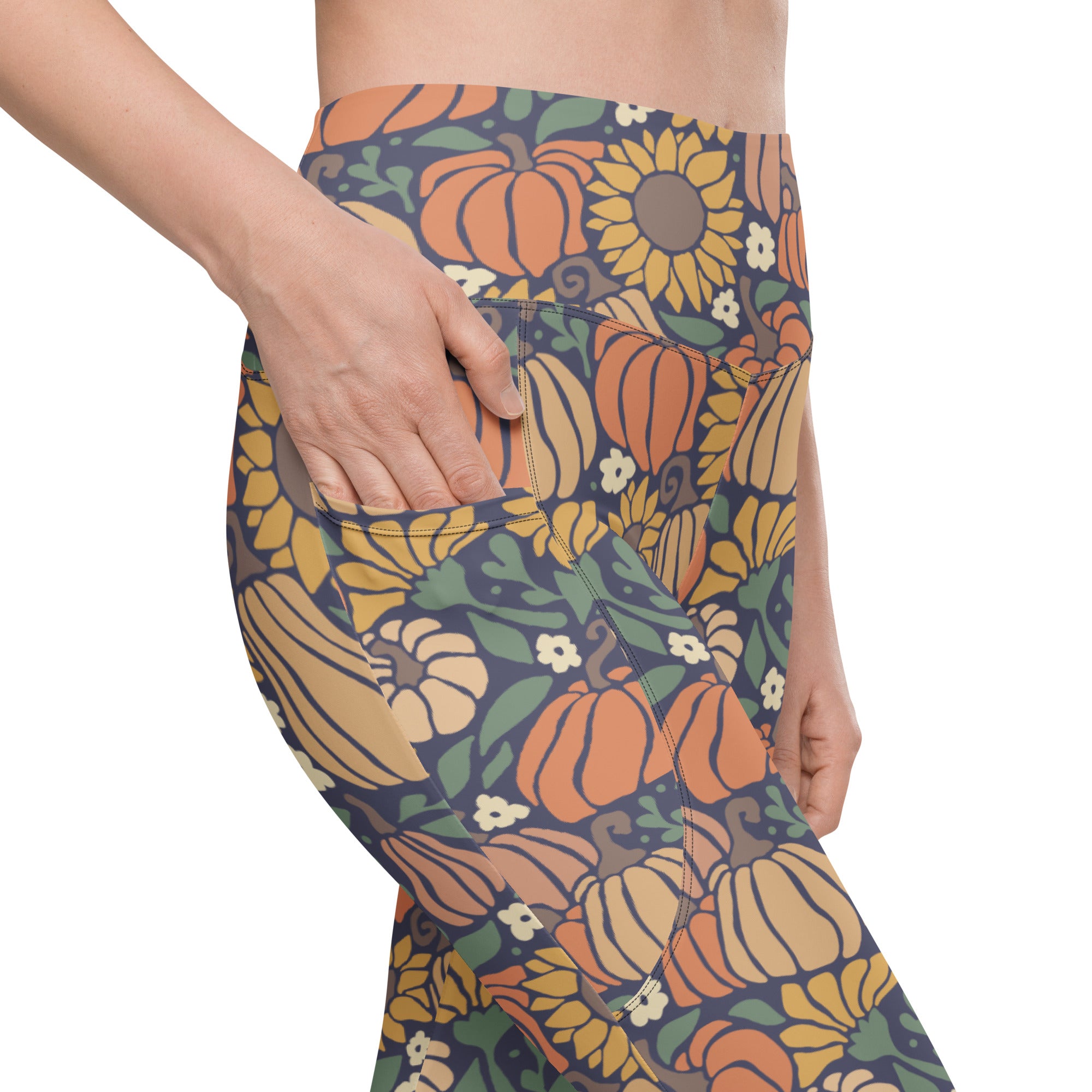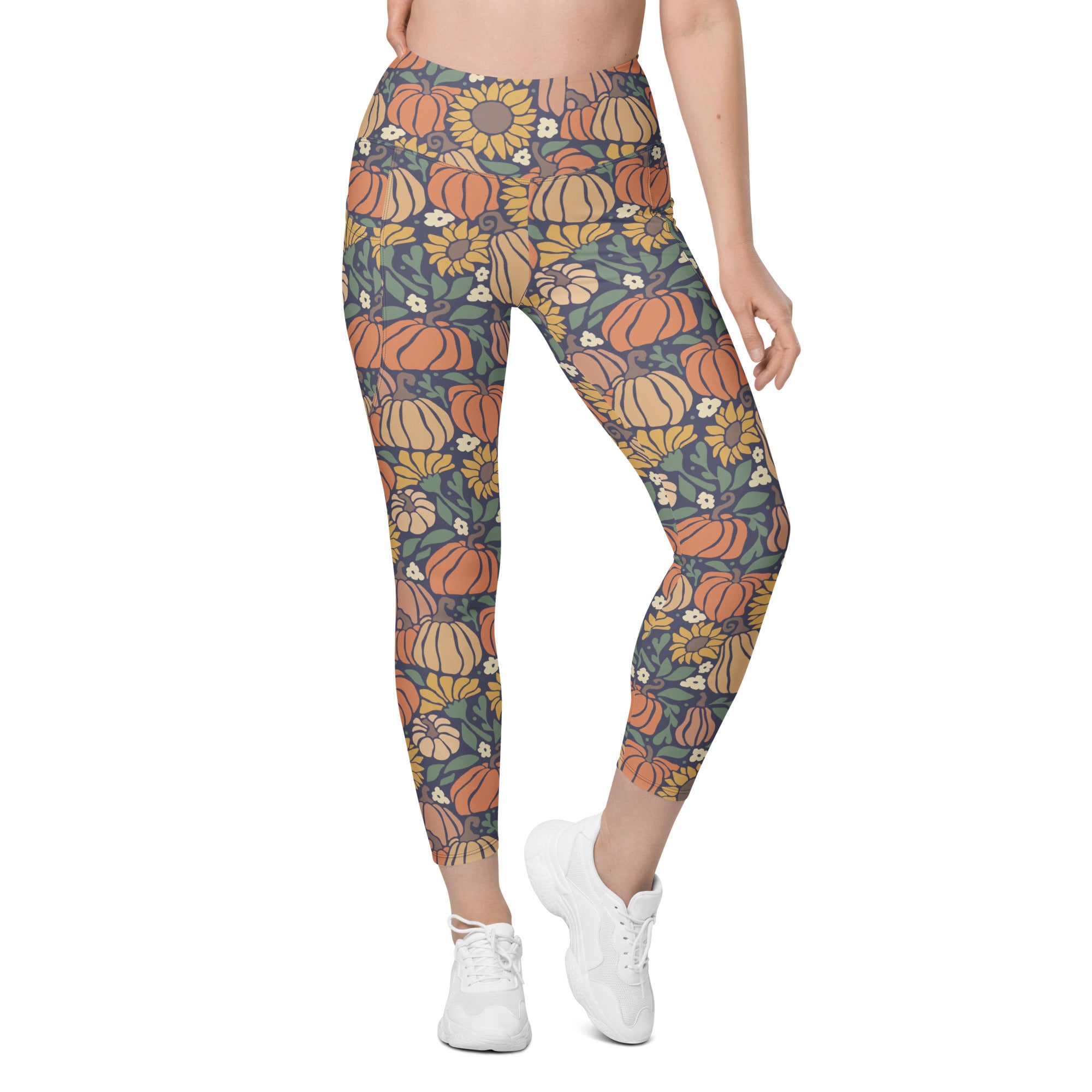 A bright and happy pumpkin and sunflower print that is perfect to wear for all your fall events.