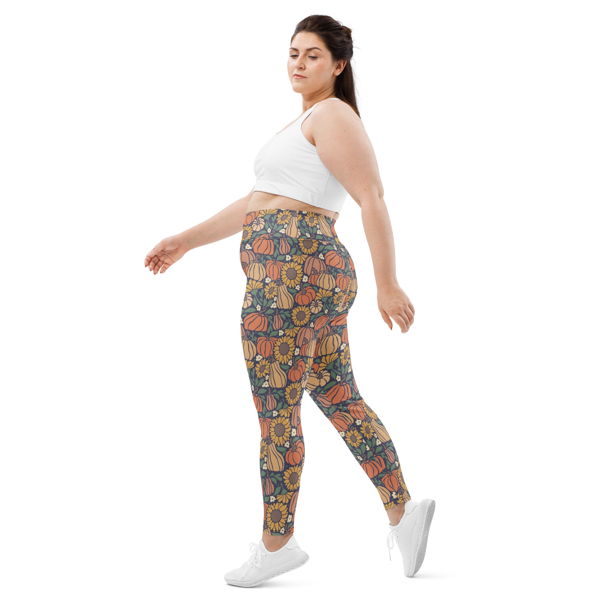 A bright and happy pumpkin and sunflower print that is perfect to wear for all your fall events.