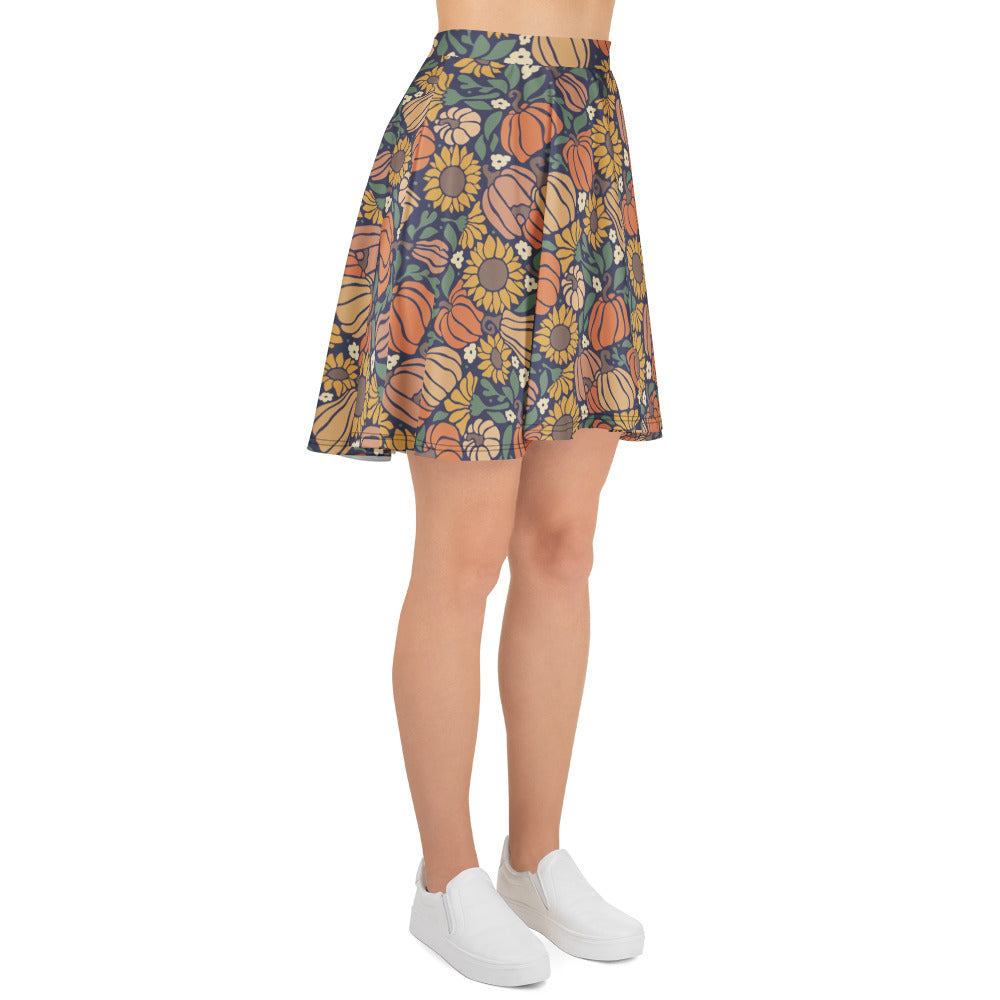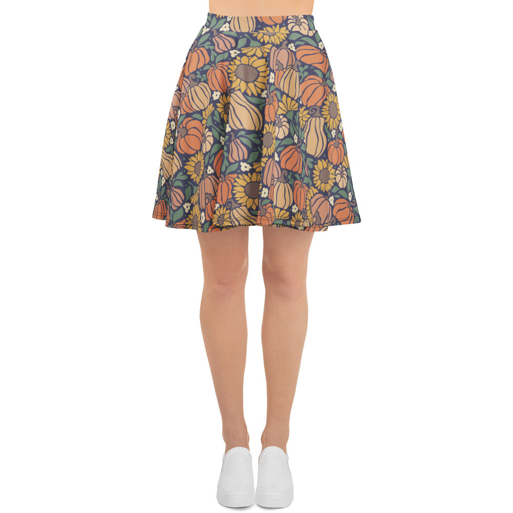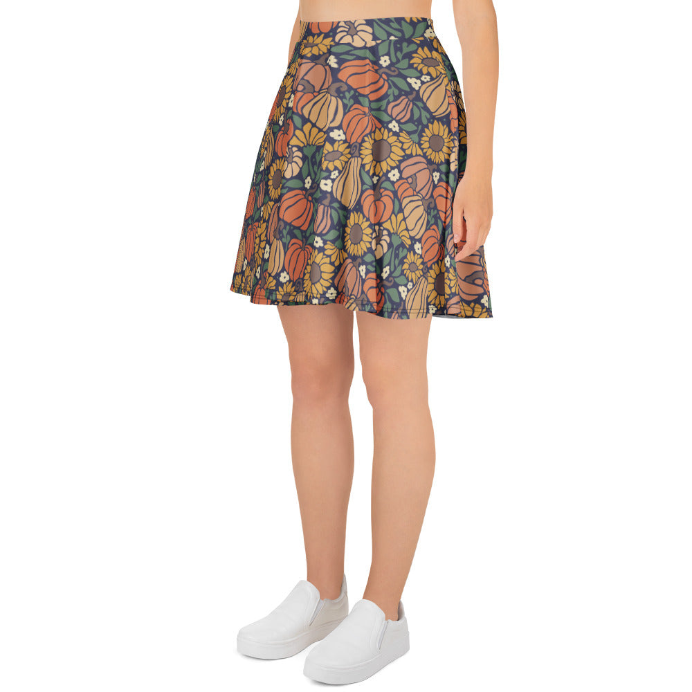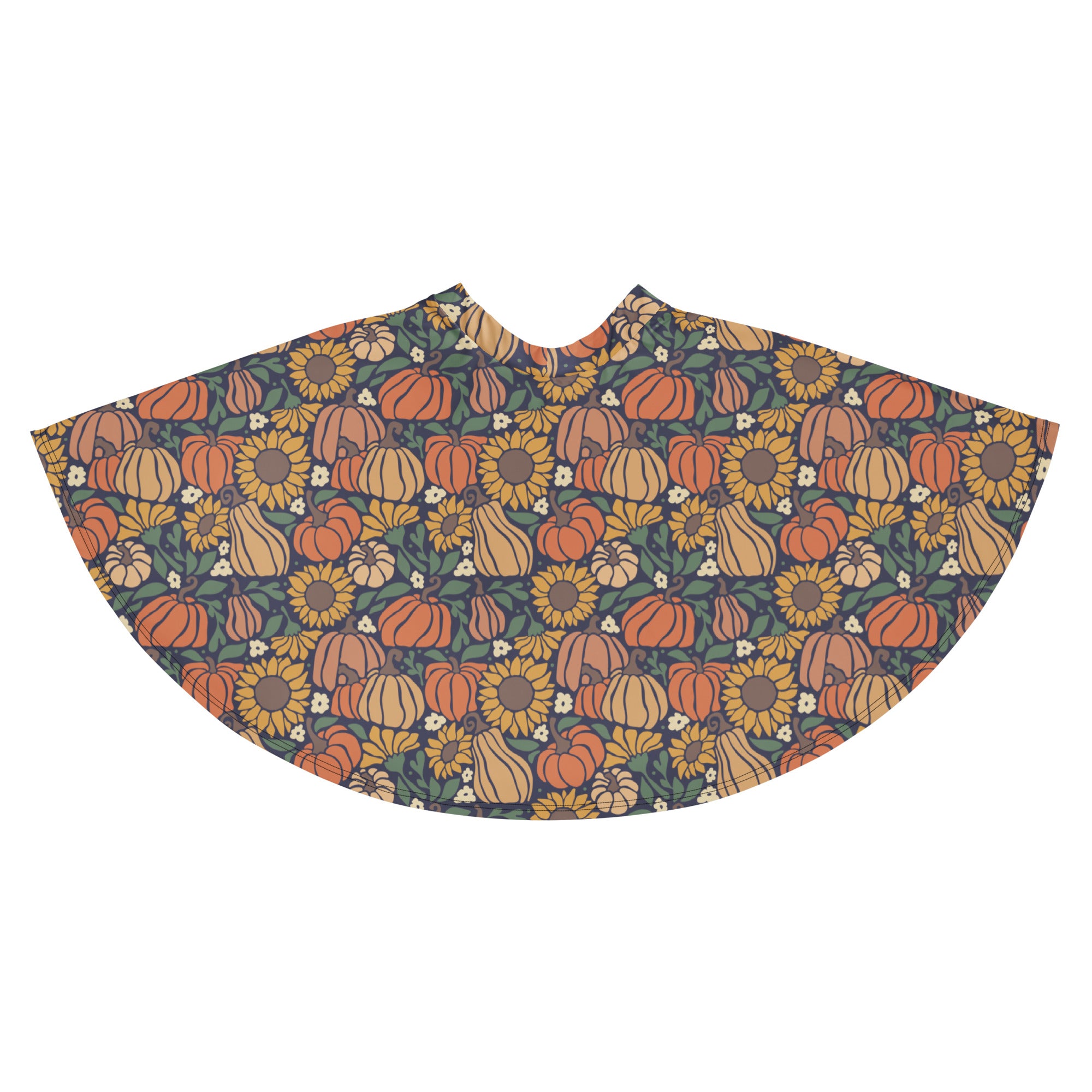 A bright and happy pumpkin and sunflower print that is perfect to wear for all your fall events.