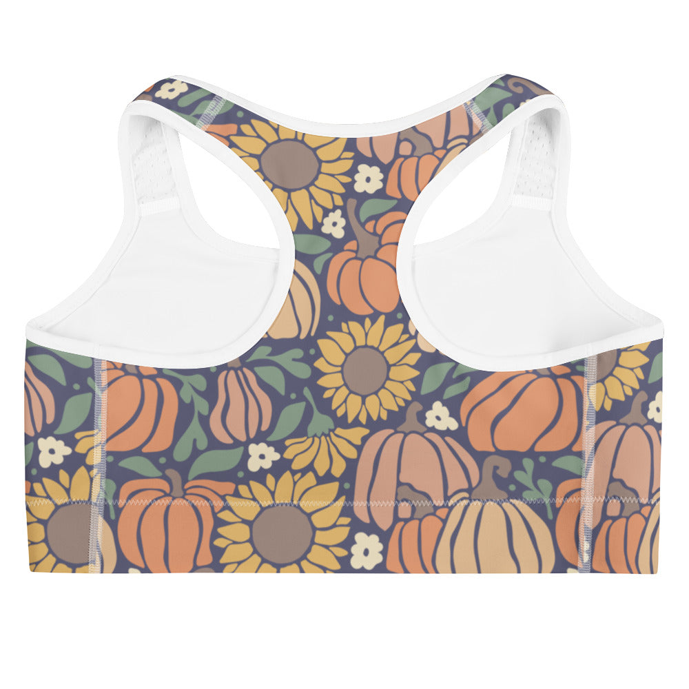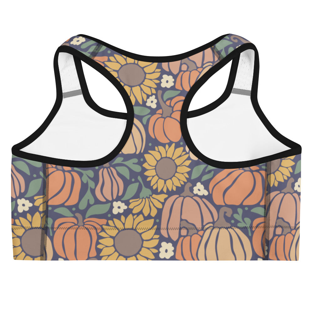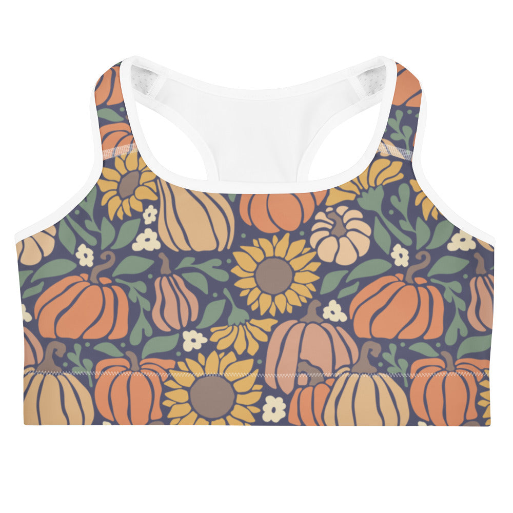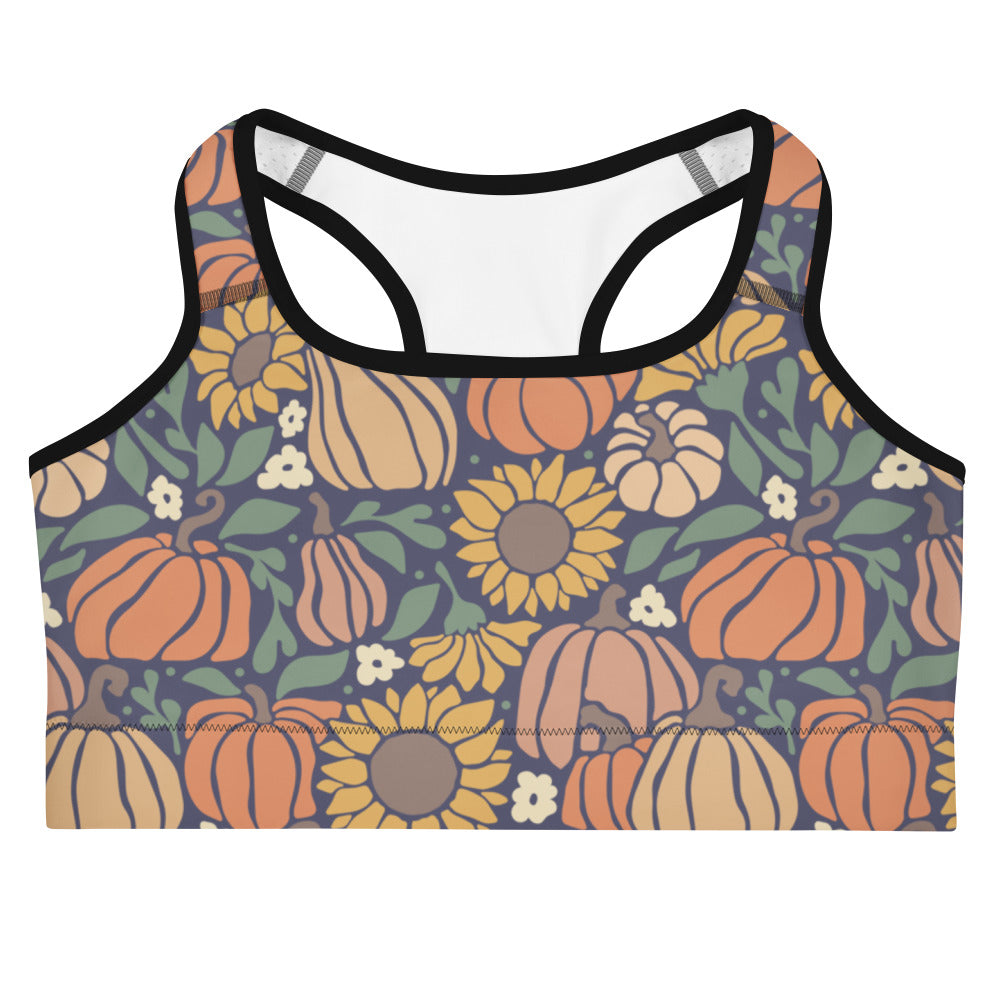 A bright and happy pumpkin and sunflower print that is perfect to wear for all your fall events.