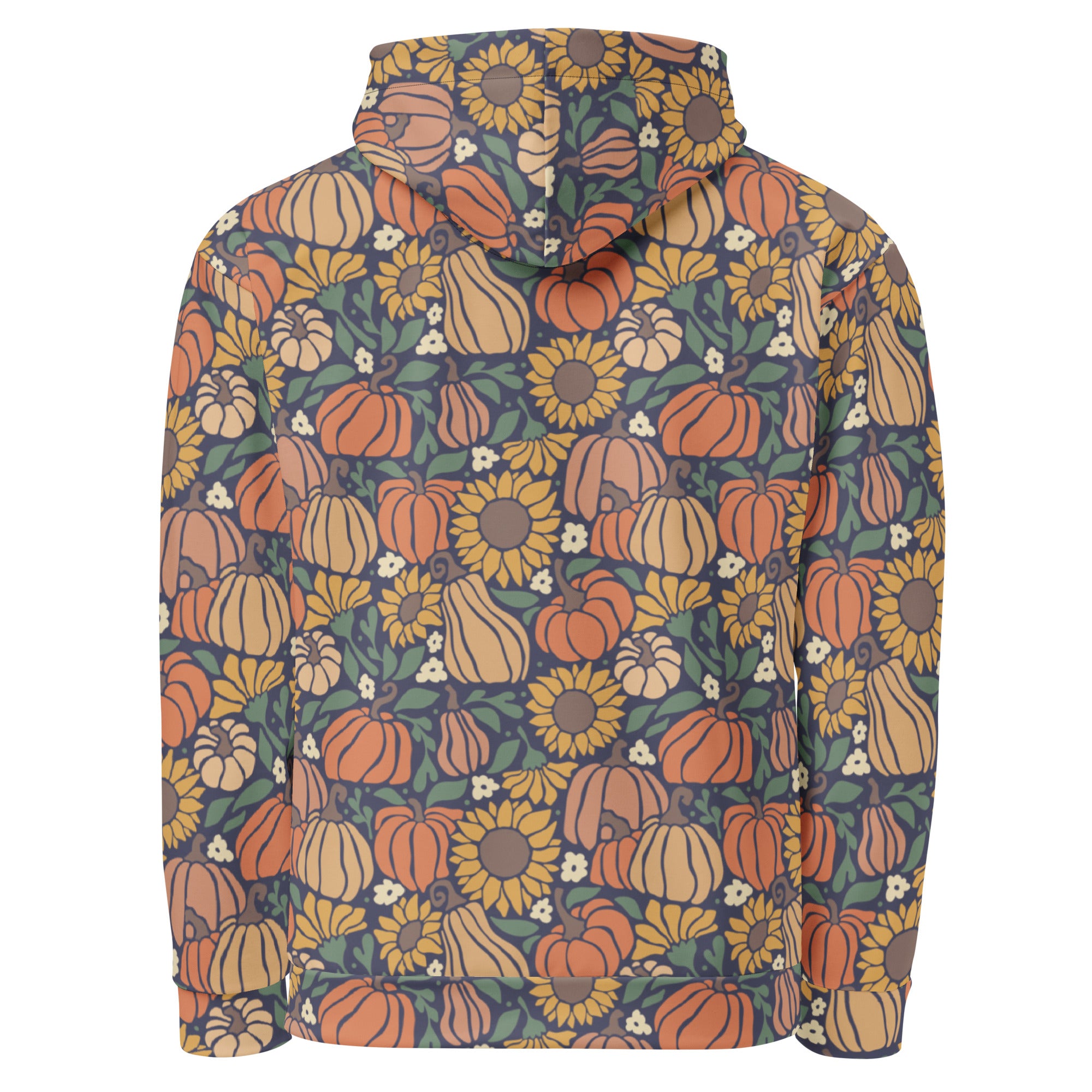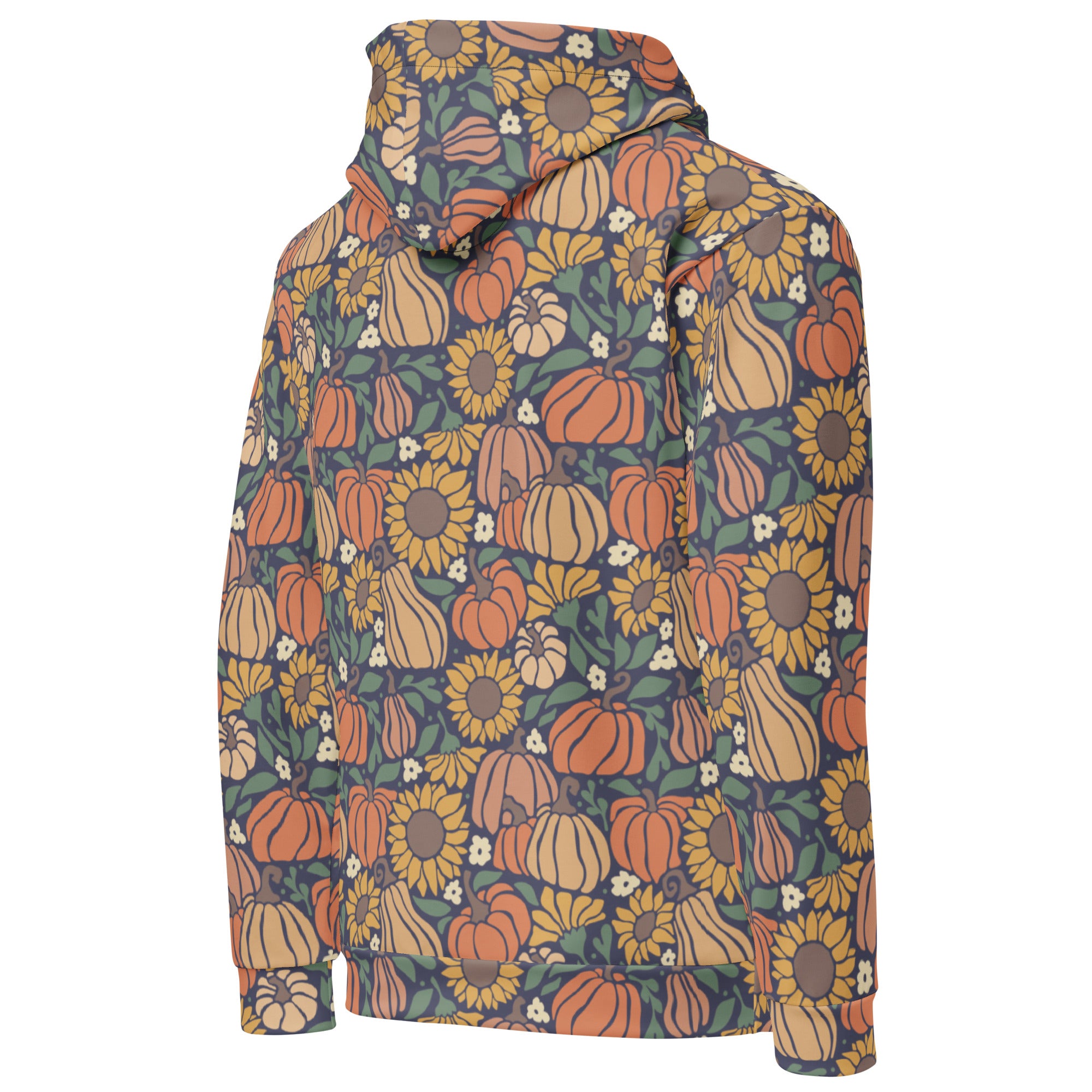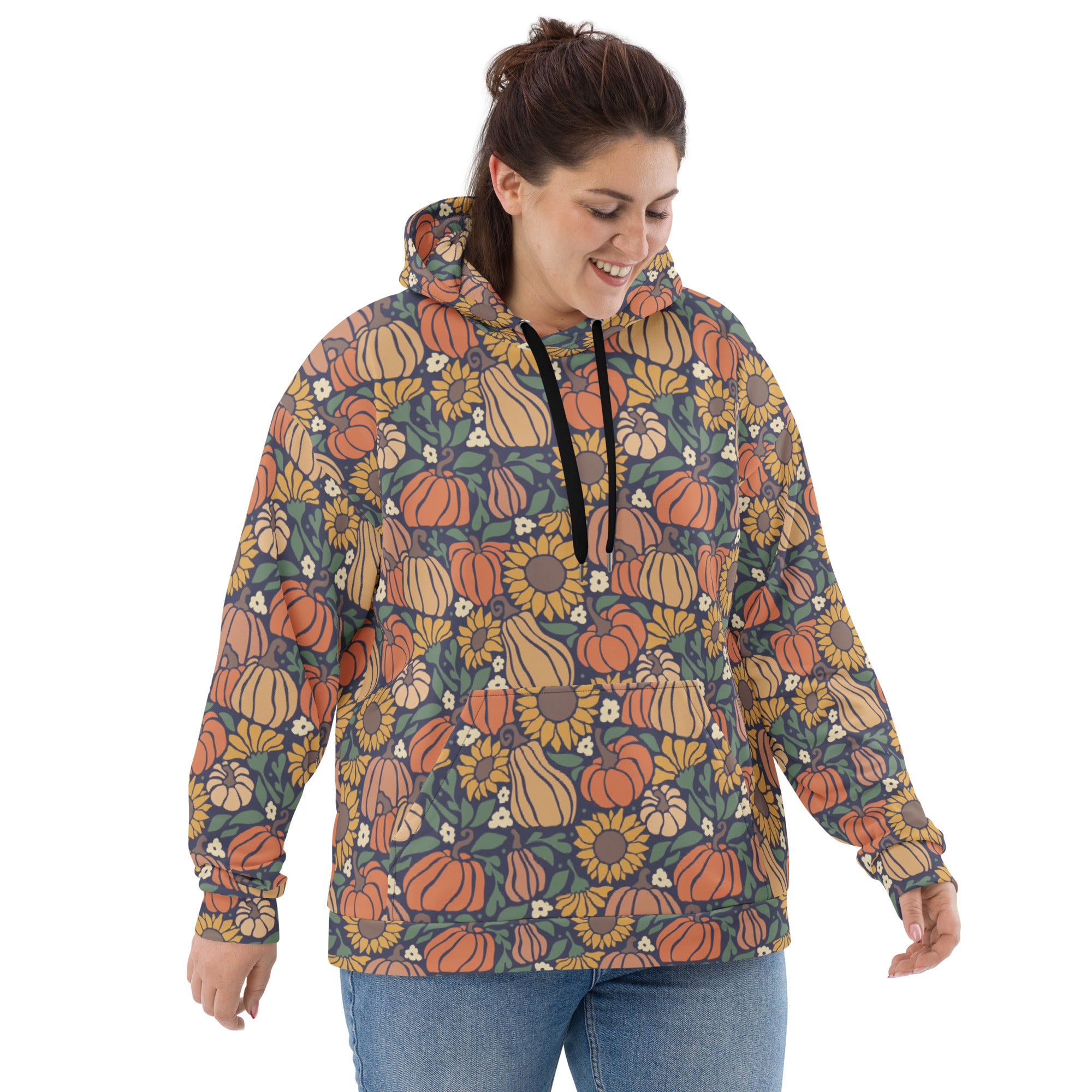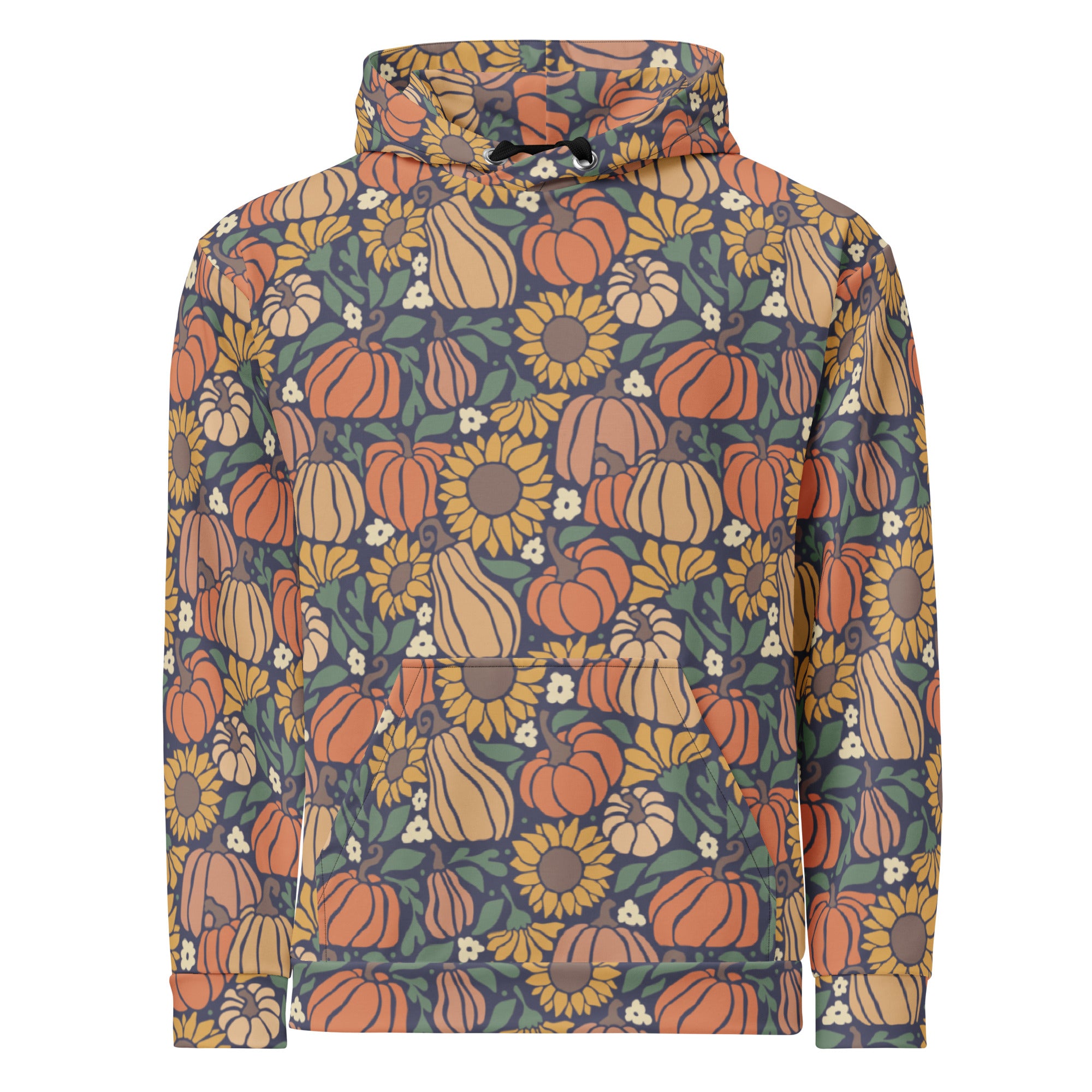 A bright and happy pumpkin and sunflower print that is perfect to wear for all your fall events.