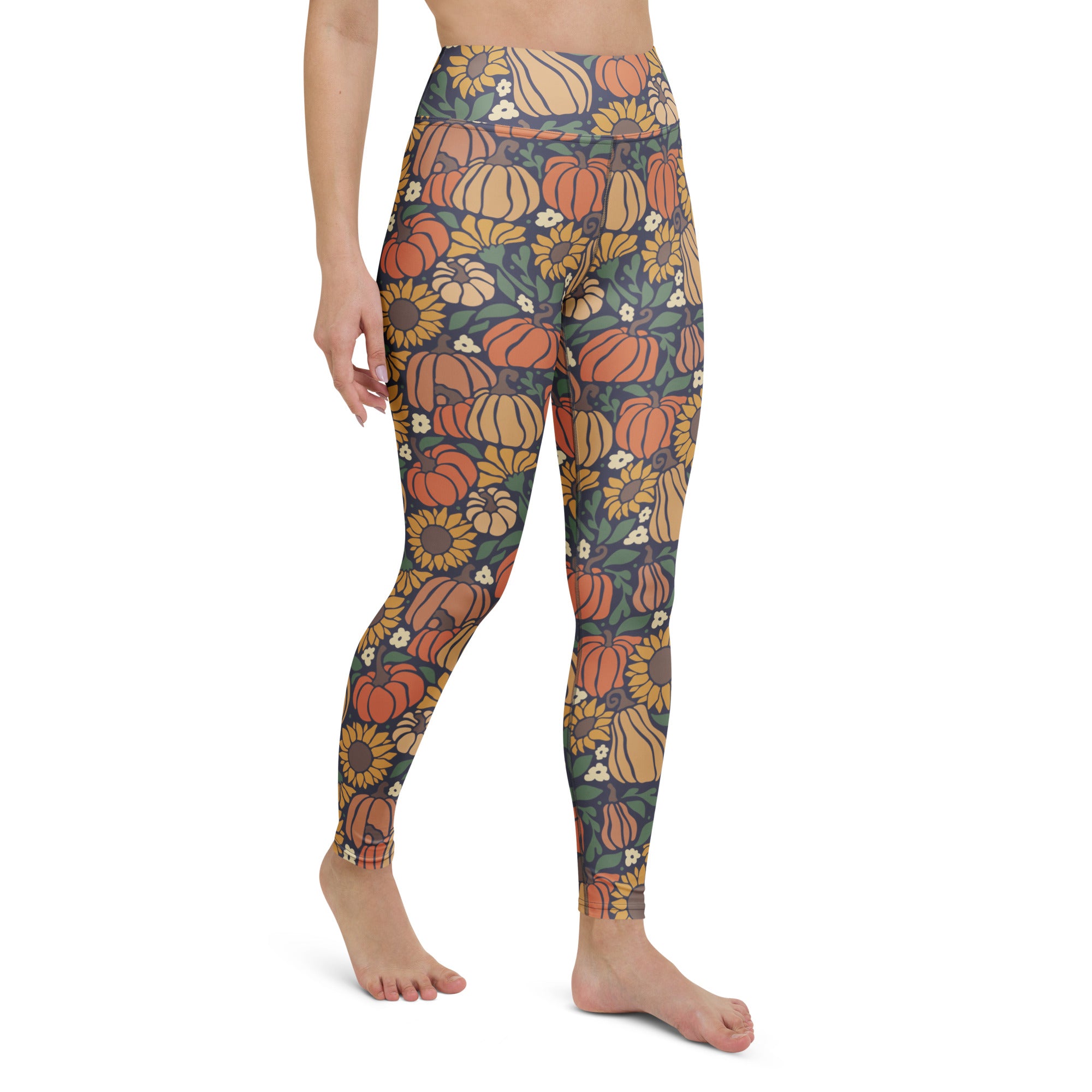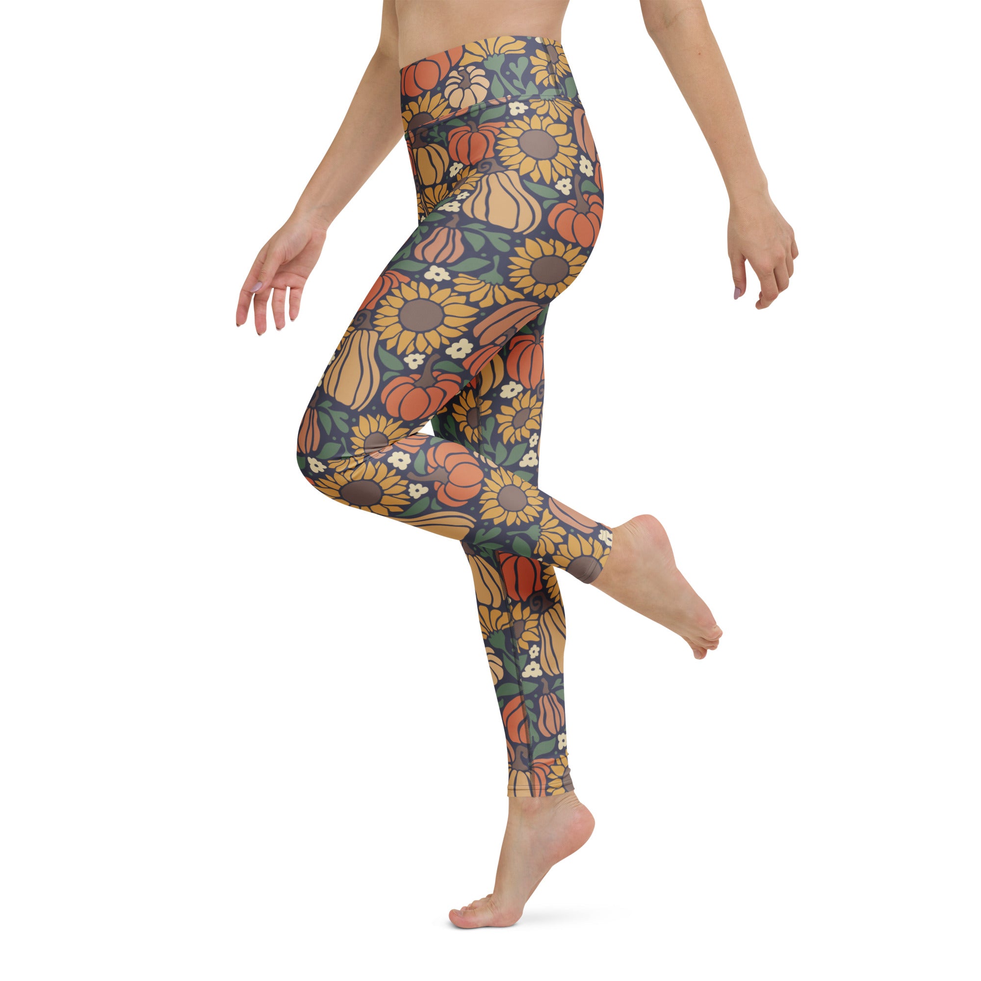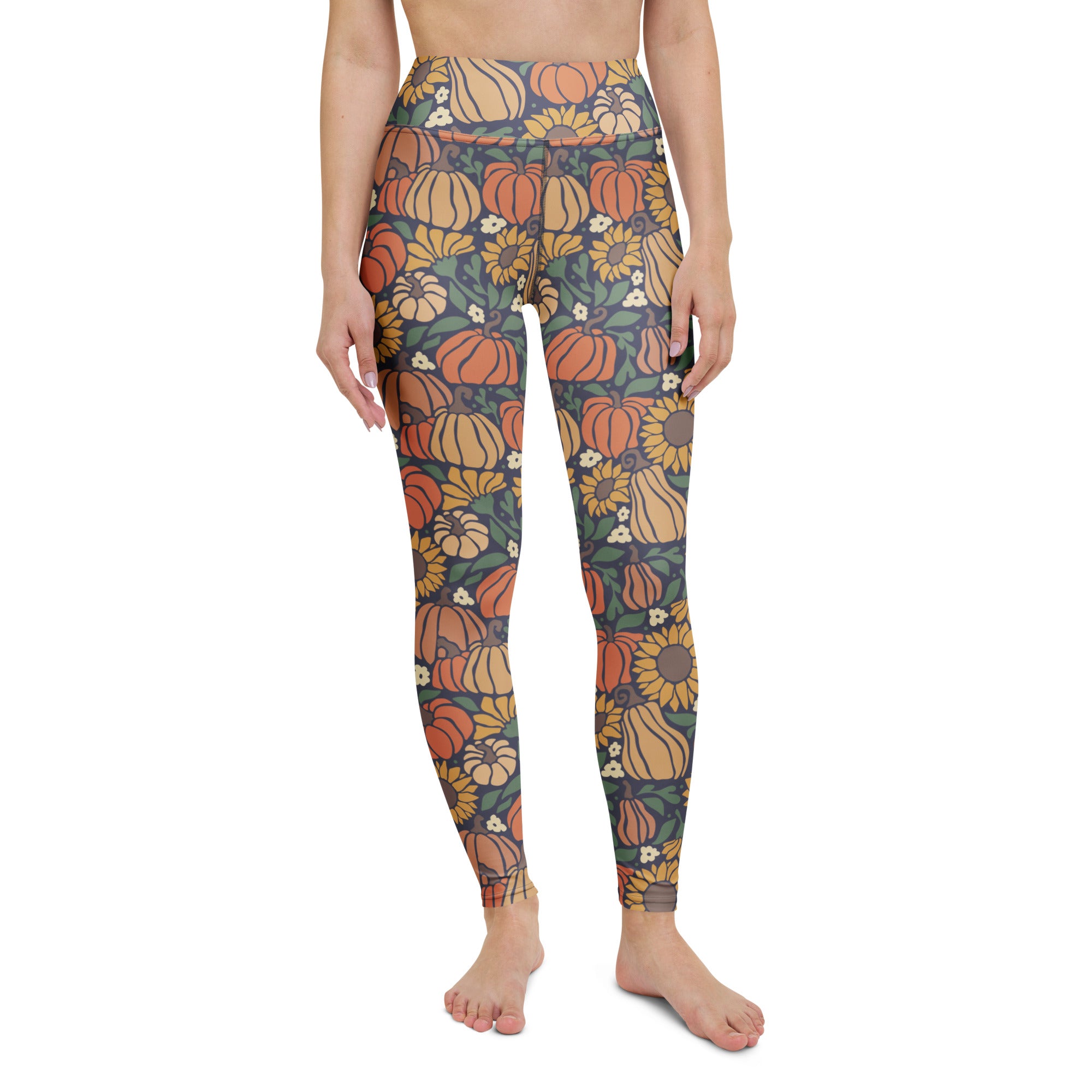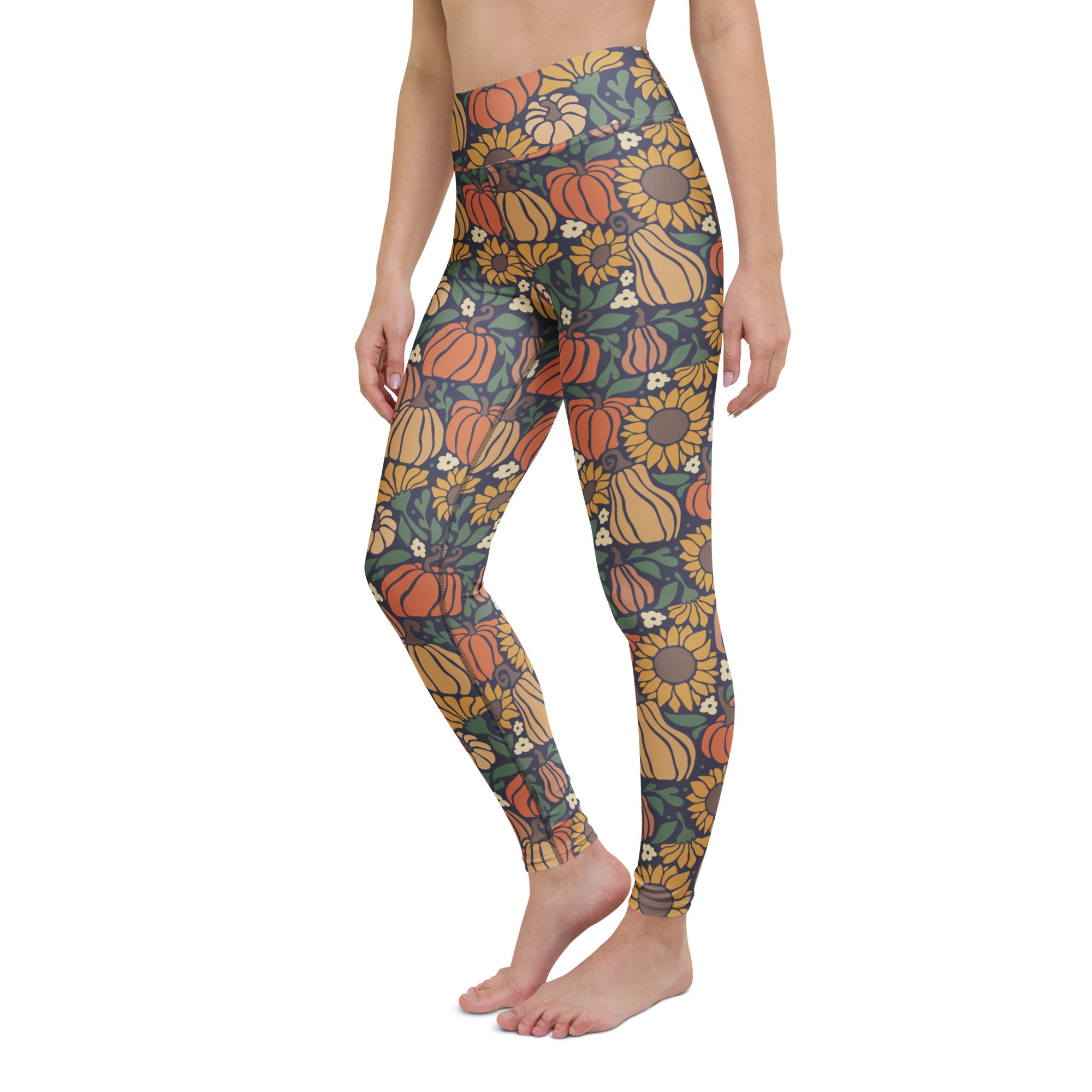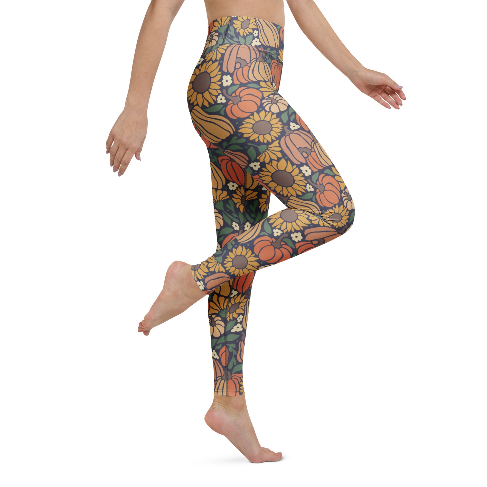 A bright and happy pumpkin and sunflower print that is perfect to wear for all your fall events.
