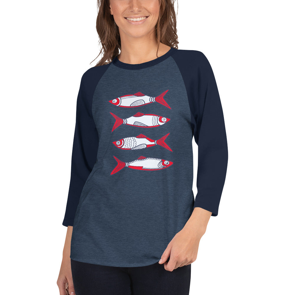 A fun stack of these stylized sardines. This group of 4 fish creates a graphic pops and adds a bit of whimsy to any outfit.