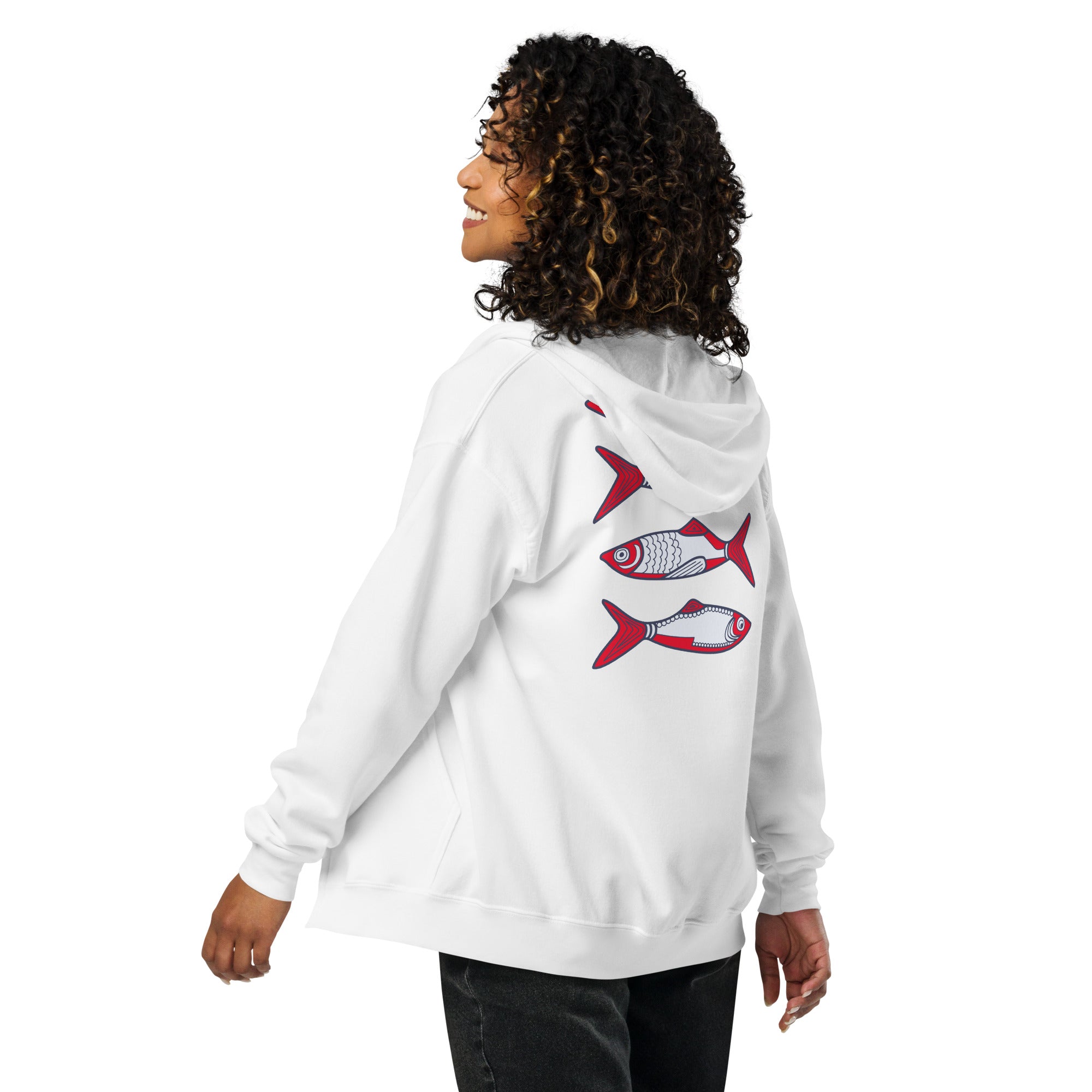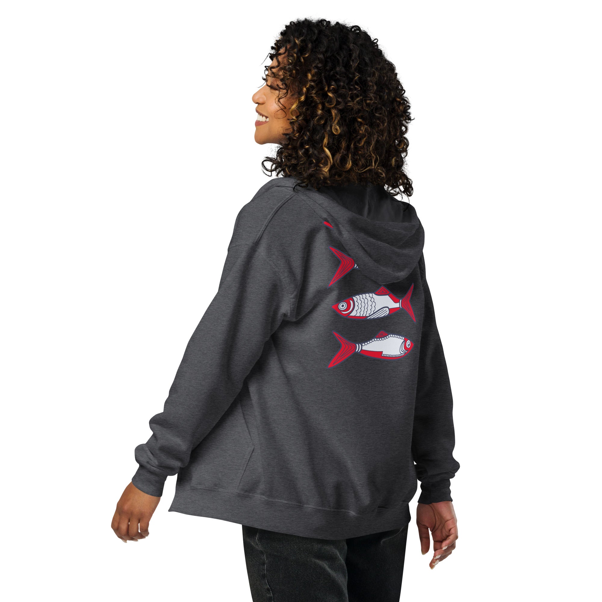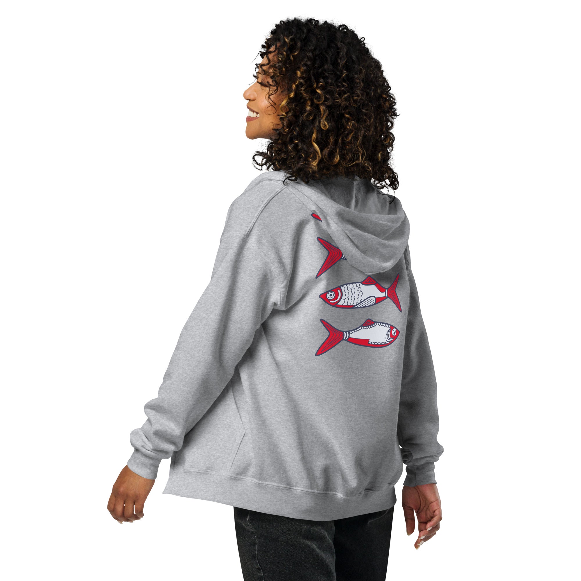 Designed with style and comfort in mind, this hoodie will quickly become your new favorite. It’s made from soft fleece inside and outside, with a sturdy metal zipper, convenient front pockets, and a hood with color-matched drawstrings.