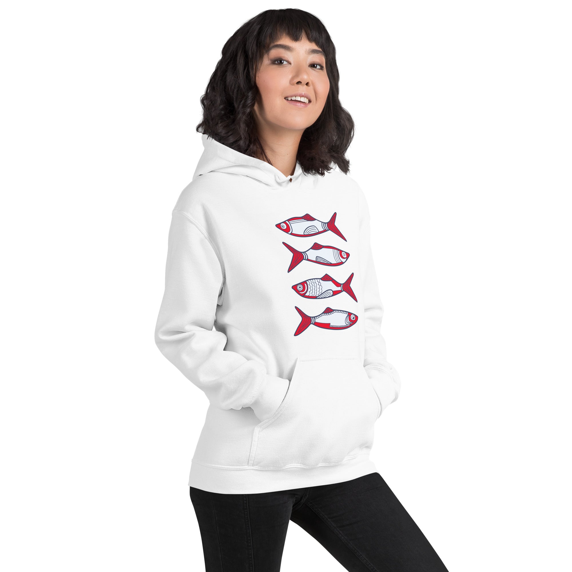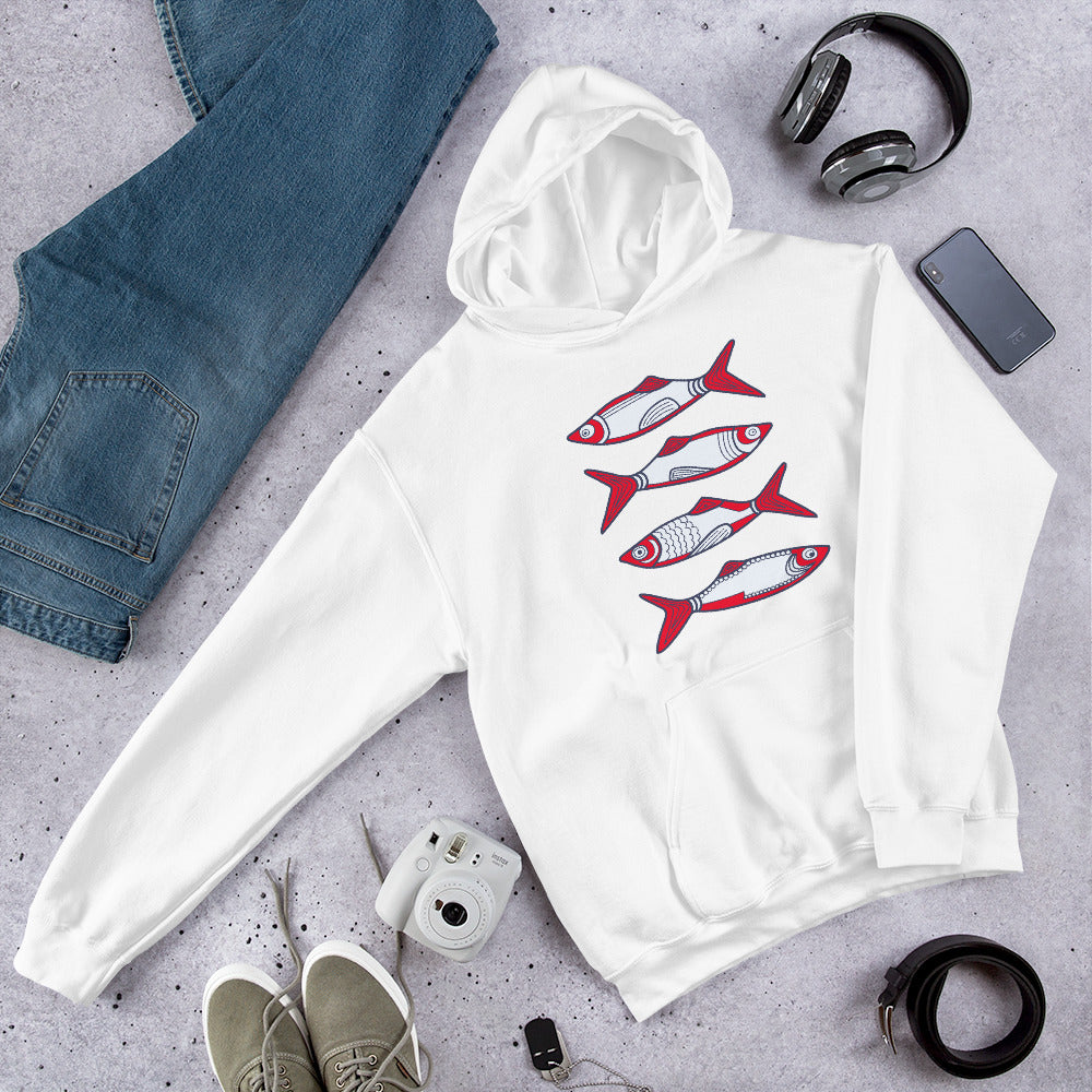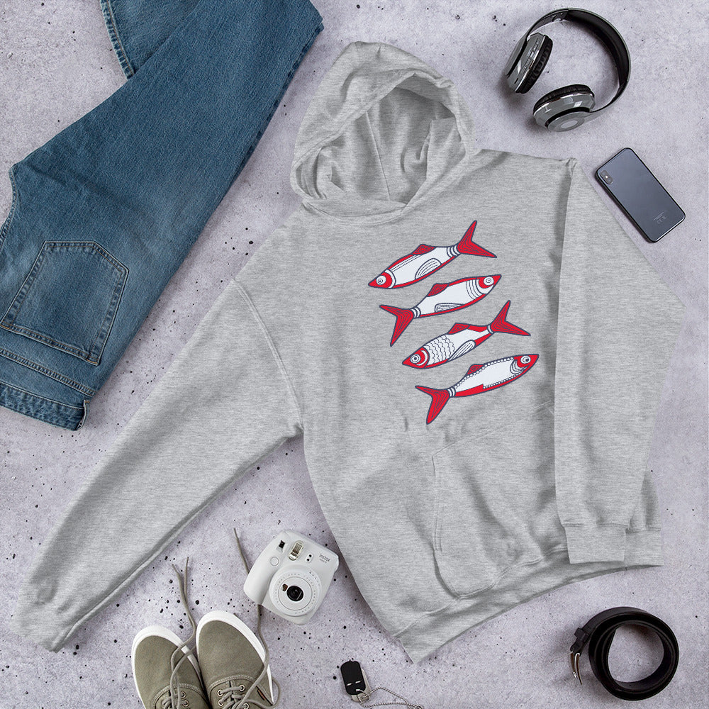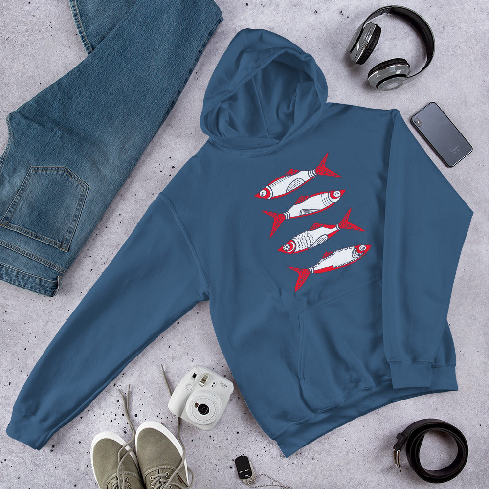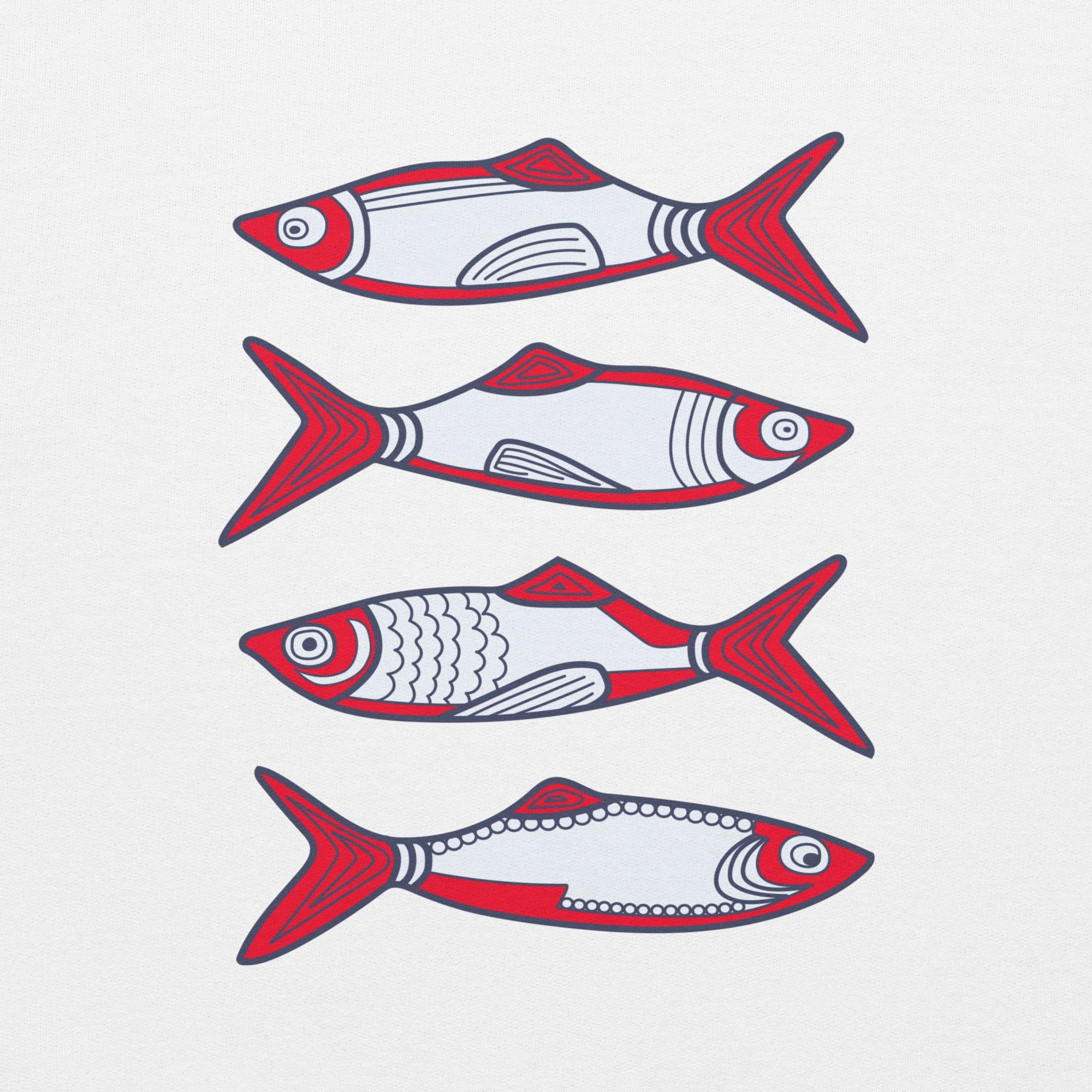 A fun stack of these stylized sardines. This group of 4 fish creates a graphic pops and adds a bit of whimsy to any outfit.
