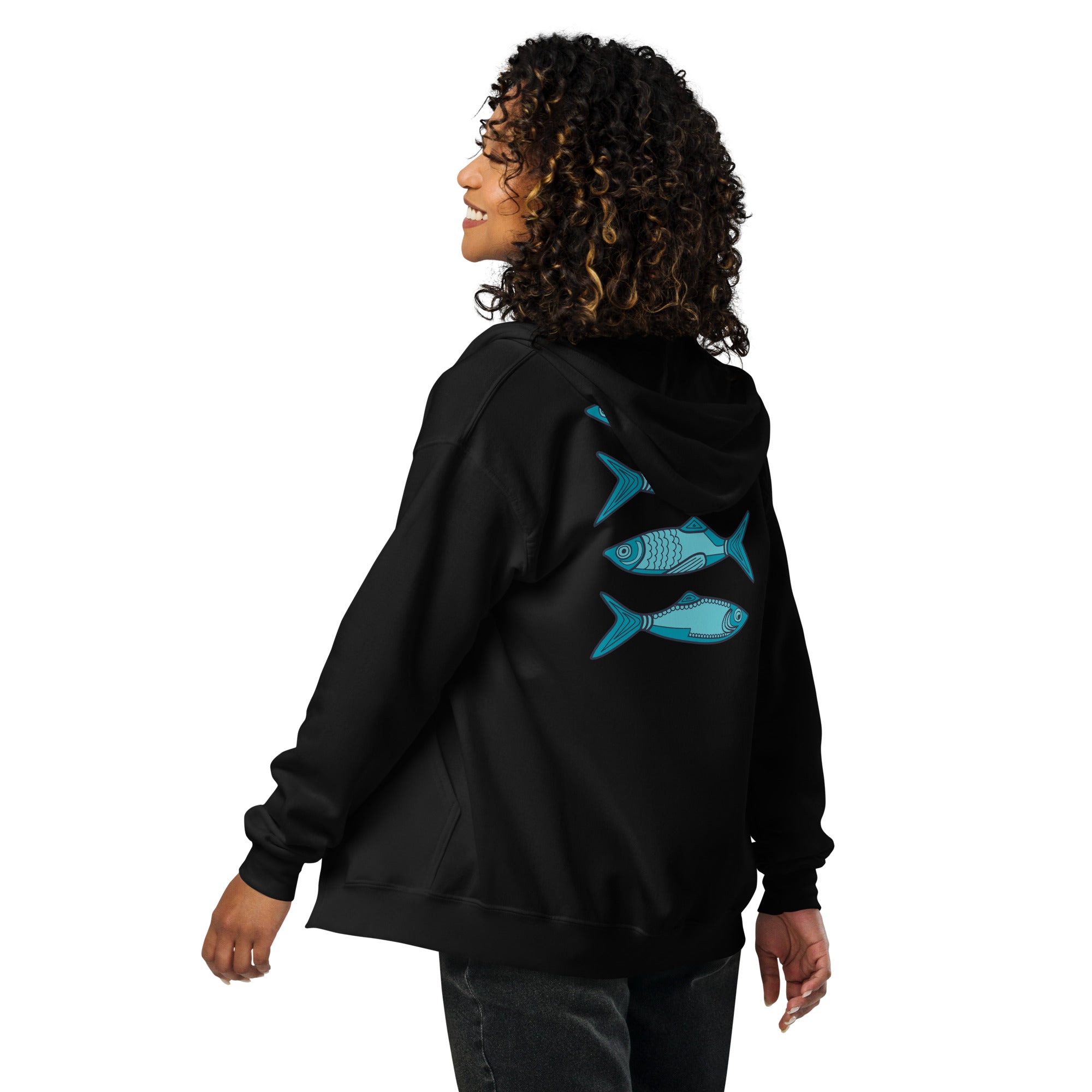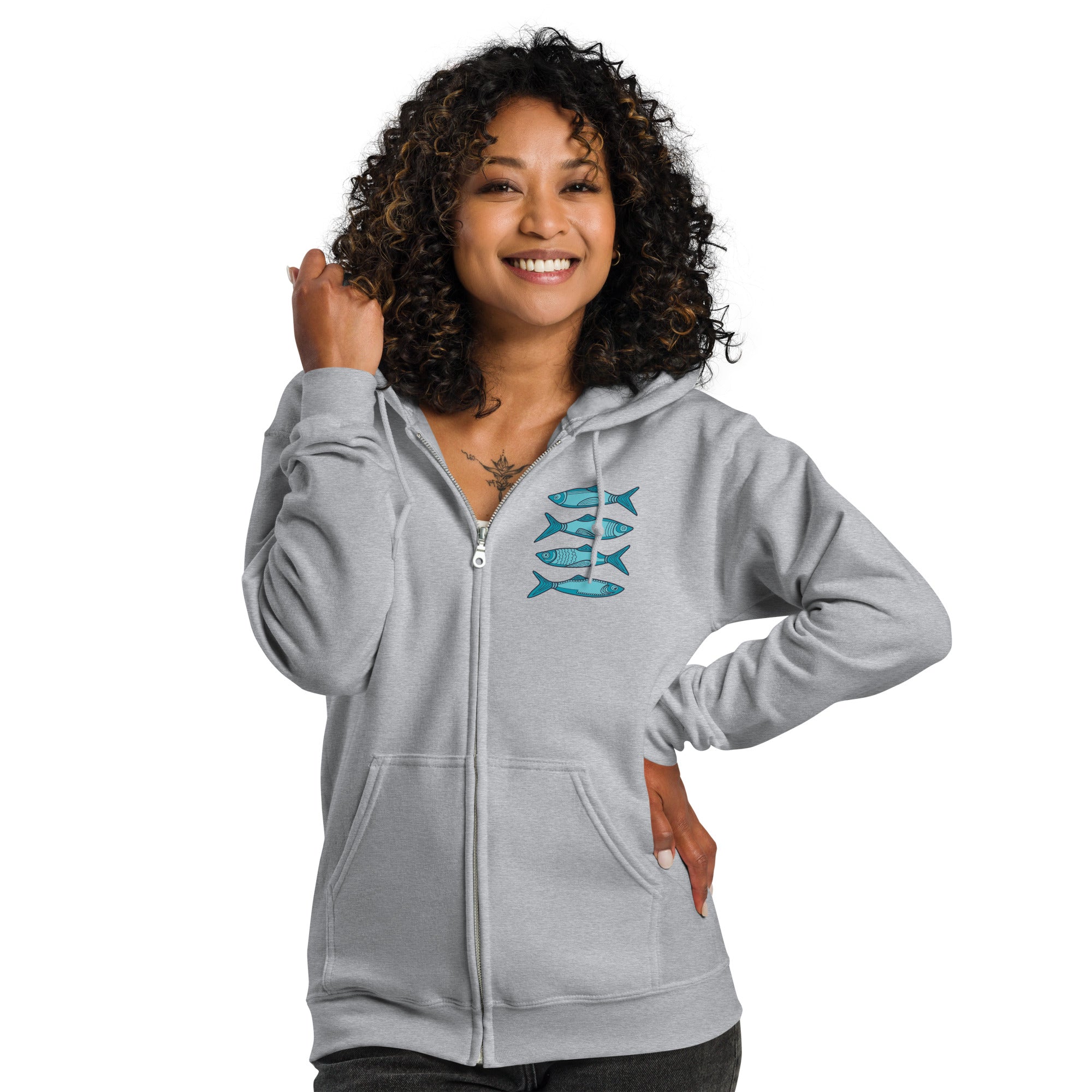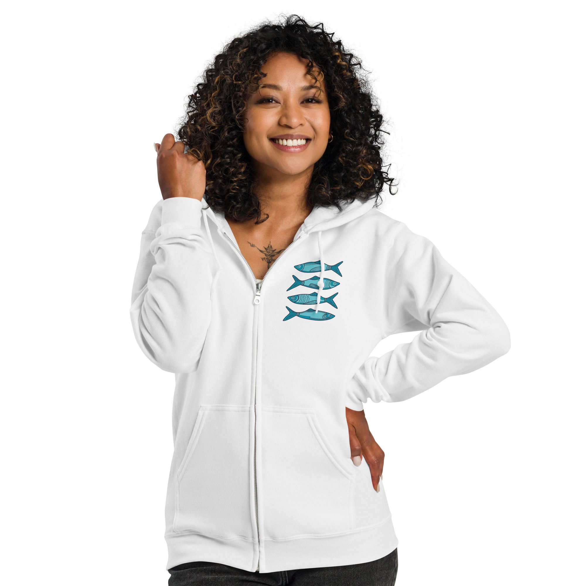 Designed with style and comfort in mind, this hoodie will quickly become your new favorite. It’s made from soft fleece inside and outside, with a sturdy metal zipper, convenient front pockets, and a hood with color-matched drawstrings.