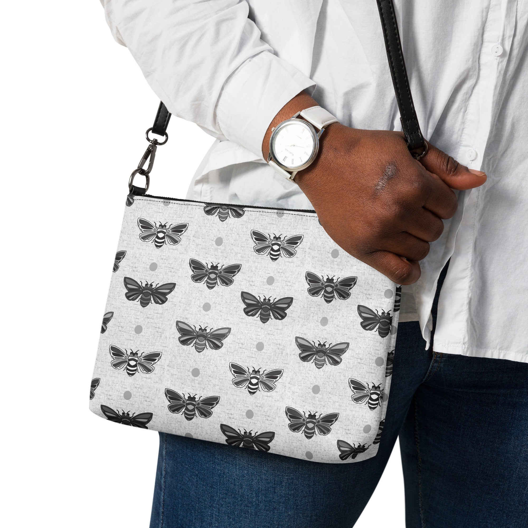 Keep your style on point and your hands free with our versatile crossbody bag. It’s made of premium faux leather and features dark gray hardware. Thanks to the zip-top closure and multiple inside pockets, you can keep your essentials secure and organized. Transform this crossbody bag with removable wrist and shoulder straps to style it for day-to-night looks.