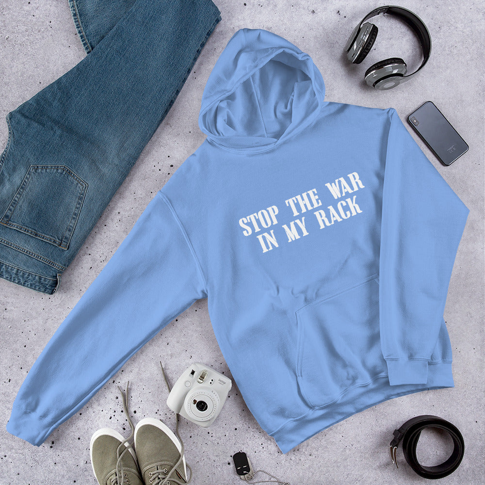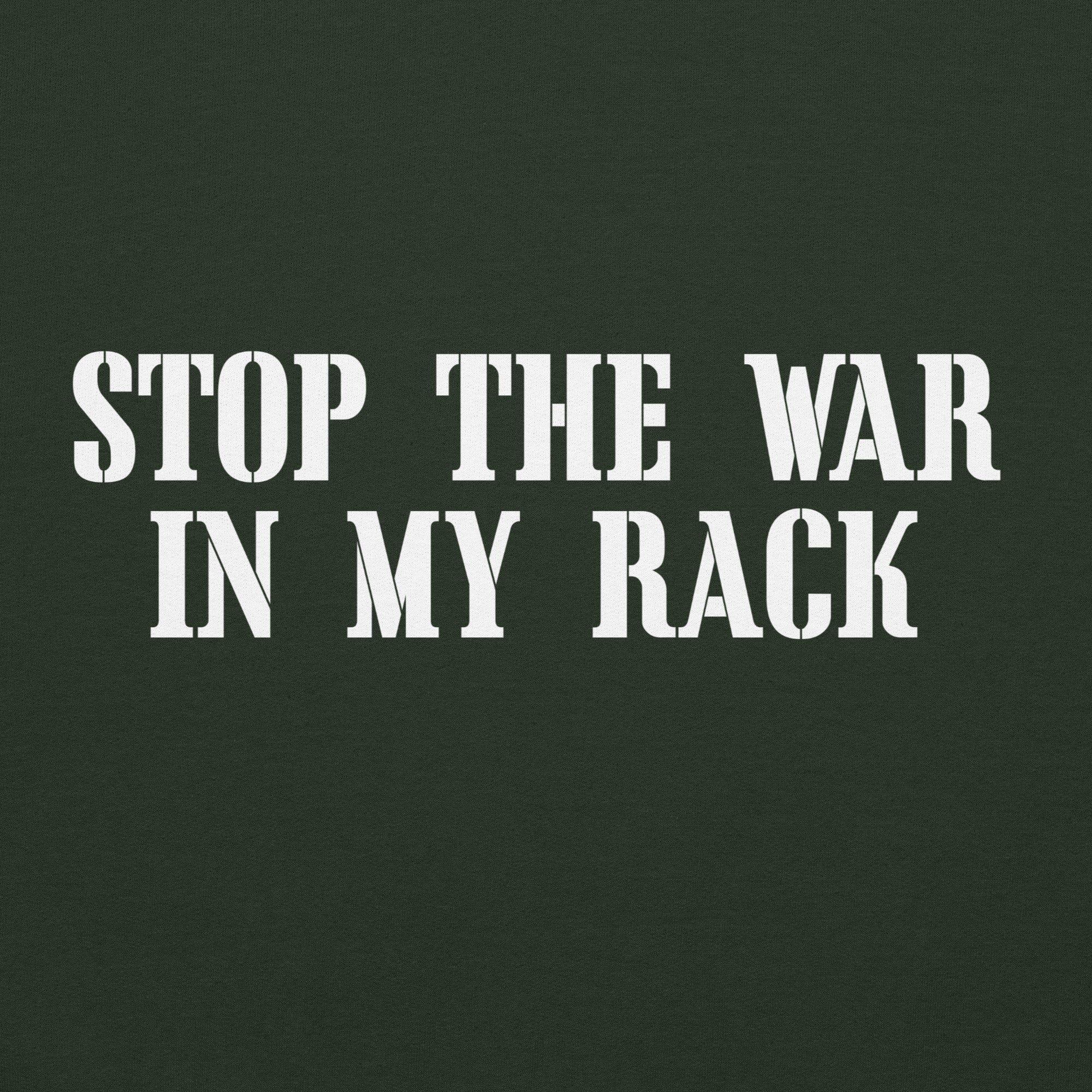 This one is certainly for people of a certain age. We have laughed a bit to hard at this. This graphic features white lettering that says "STOP THE WAR IN MY RACK".