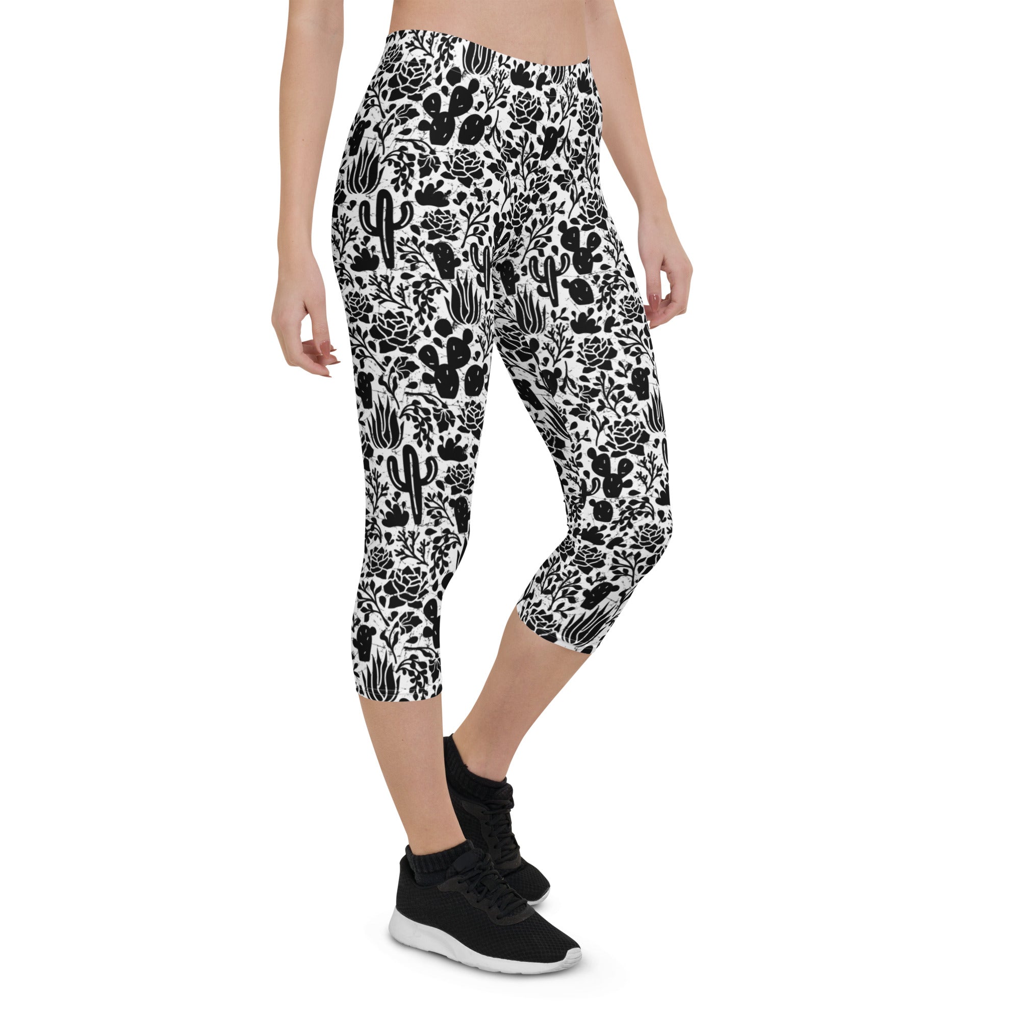 This black and white succulent print is dramatic and fun. Stylized cactus, aloe and desert flora are accented with a delicate crackled distress.