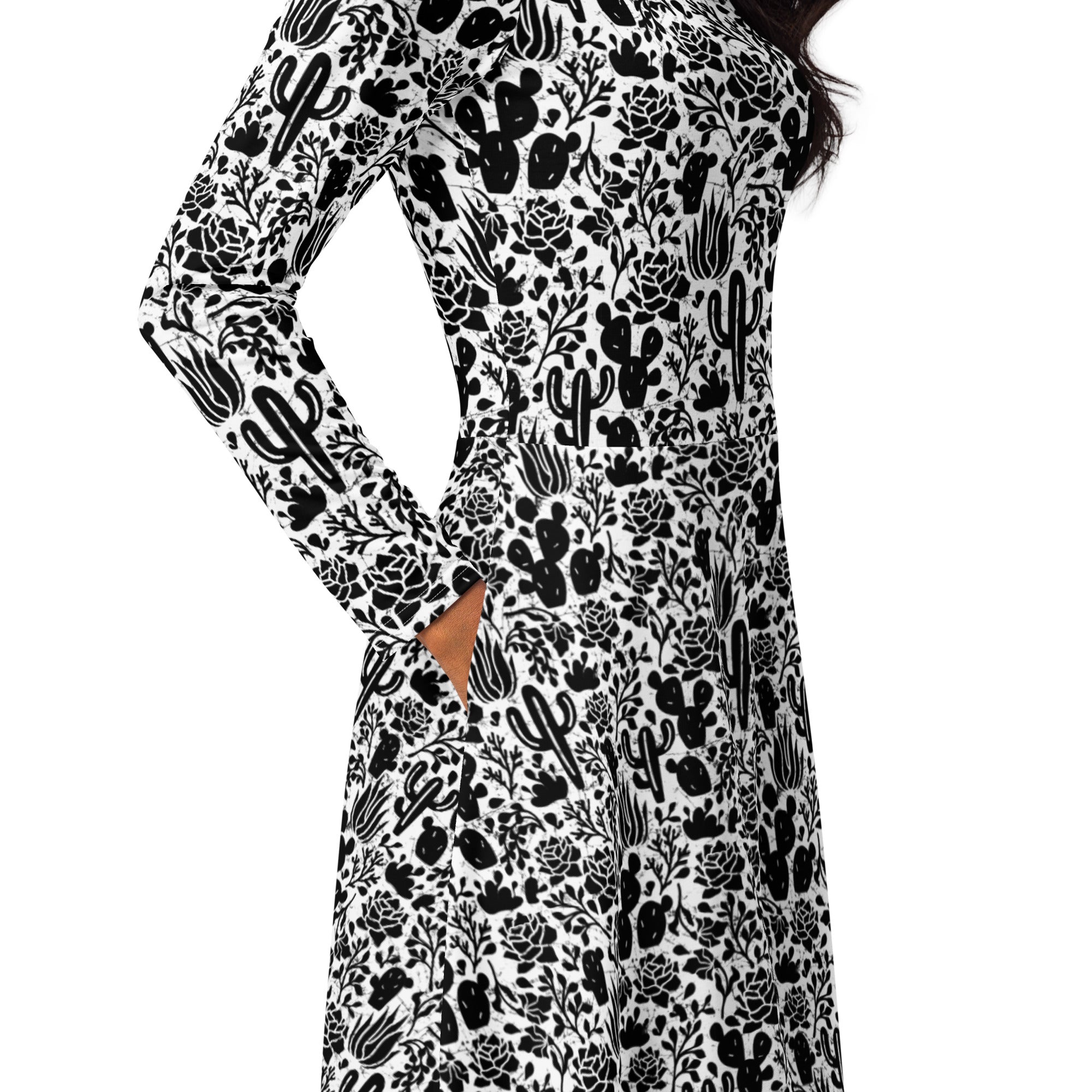 This black and white succulent print is dramatic and fun. Stylized cactus, aloe and desert flora are accented with a delicate crackled distress.