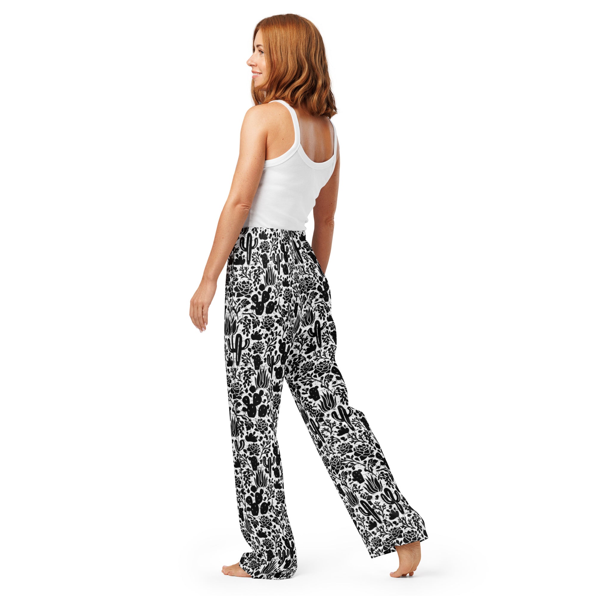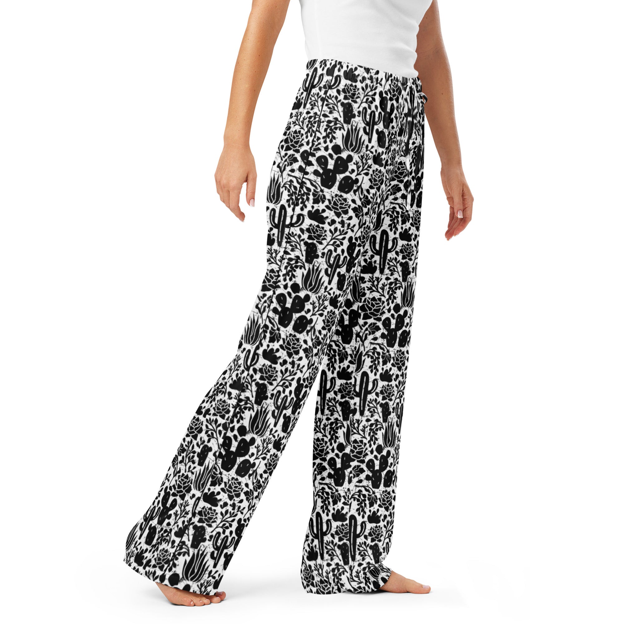 This black and white succulent print is dramatic and fun. Stylized cactus, aloe and desert flora are accented with a delicate crackled distress.