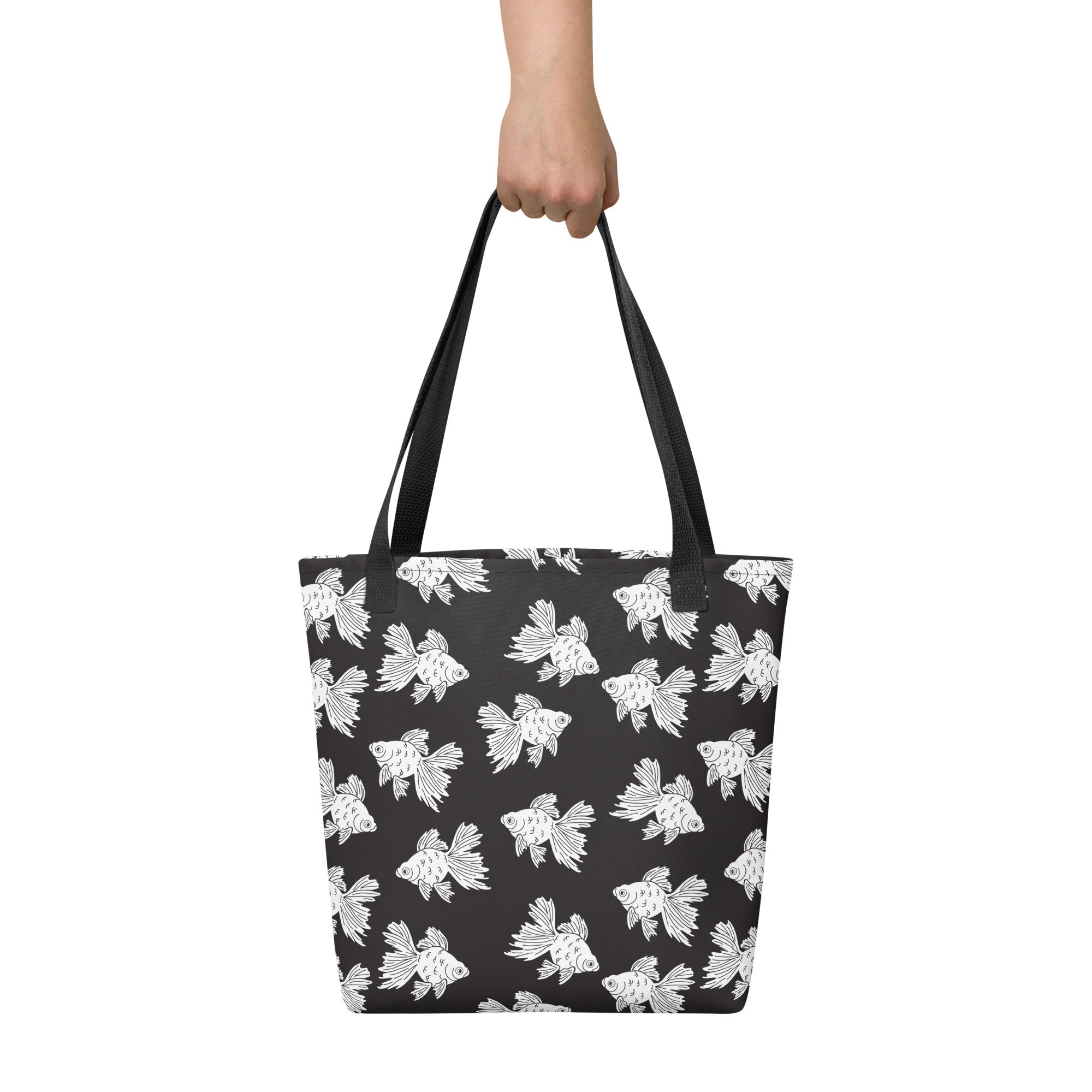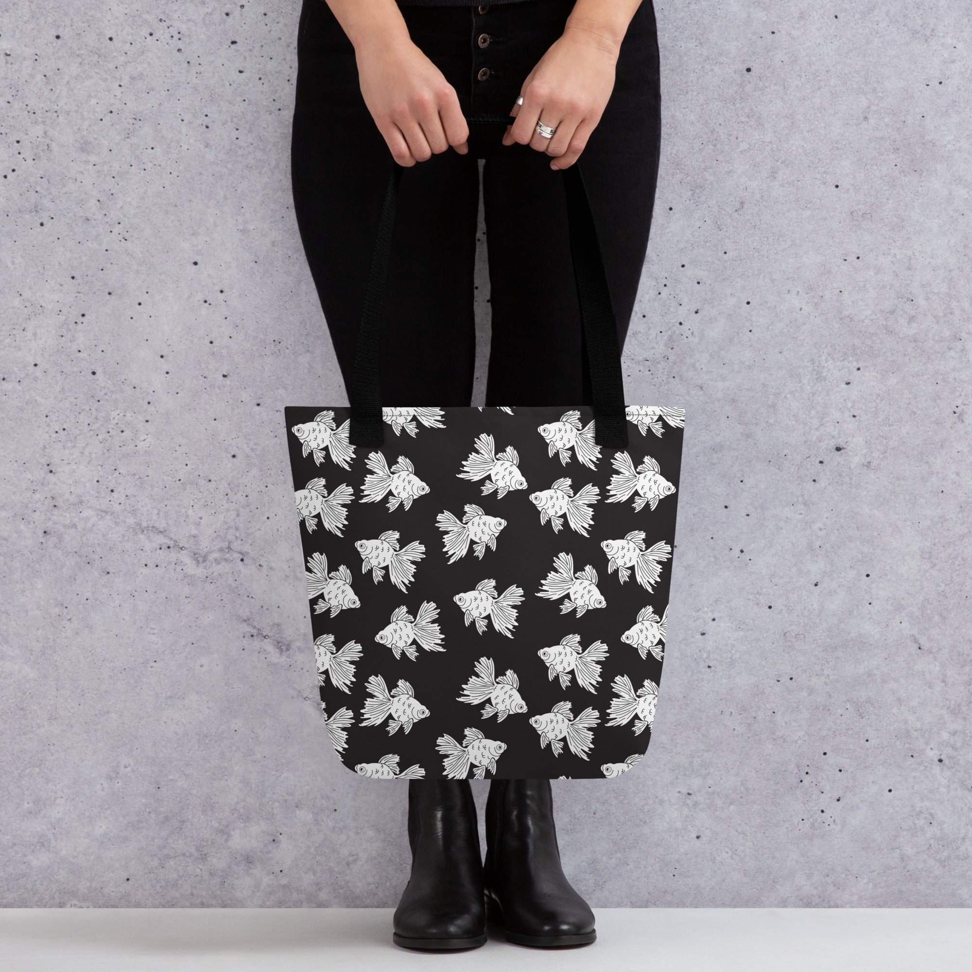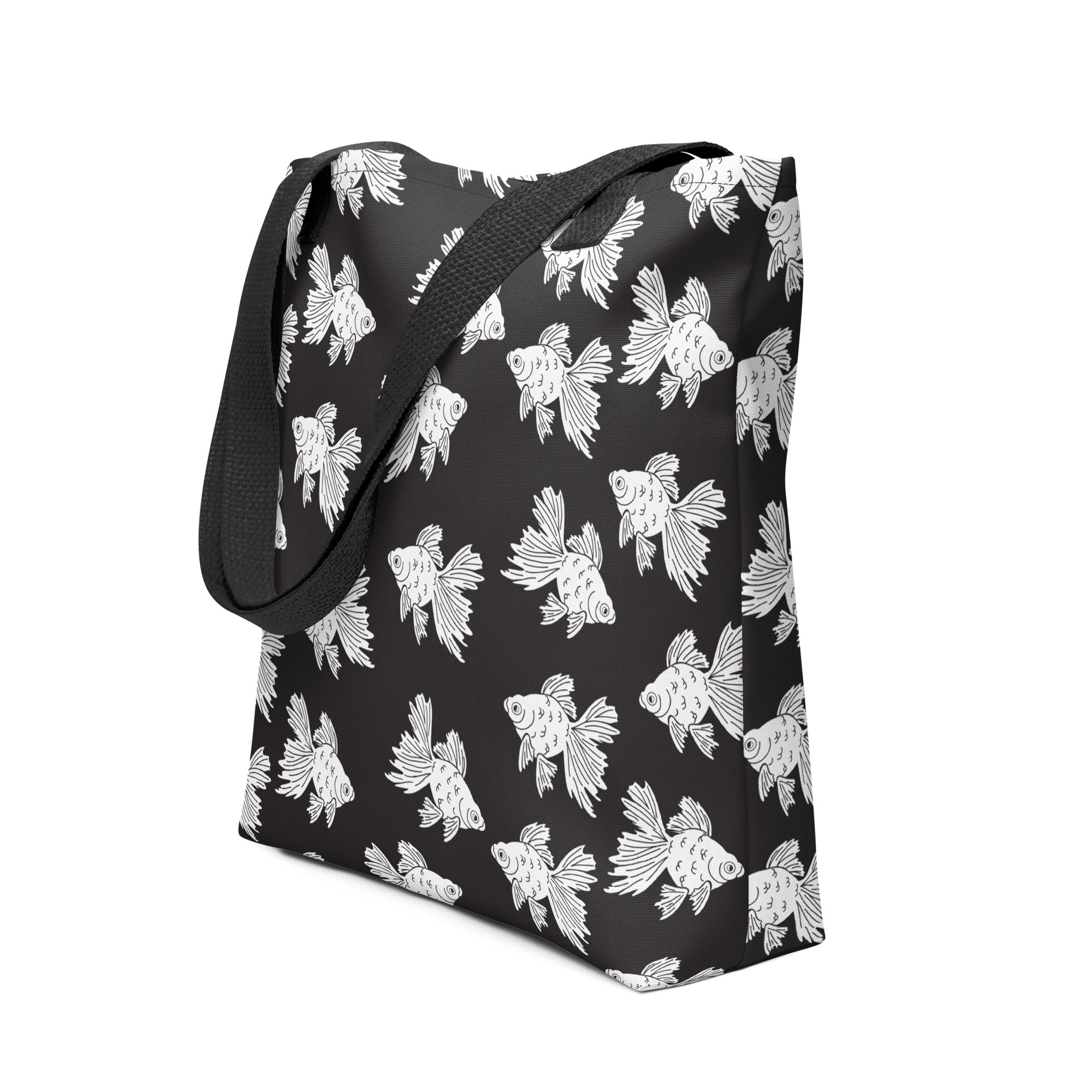 Some fancy not-so-orange (in fact they are white!) goldfish swimming along on a black background. We loved this print in color, but honestly... black and white. Iconic.