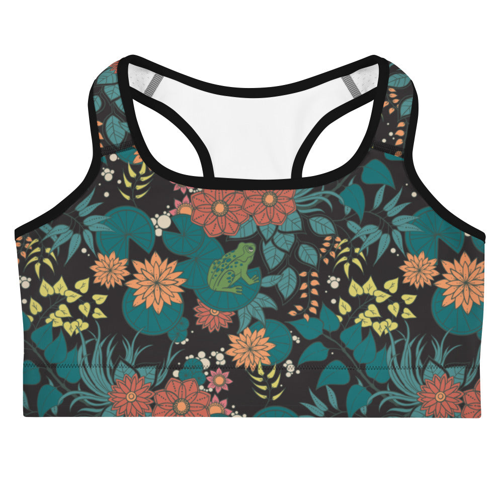 This gorgeous sports bra is made from moisture-wicking material that stays dry during low and medium intensity workouts. The bra has support material in the shoulder straps, double layer front, and a wide elastic band to ensure constant support.