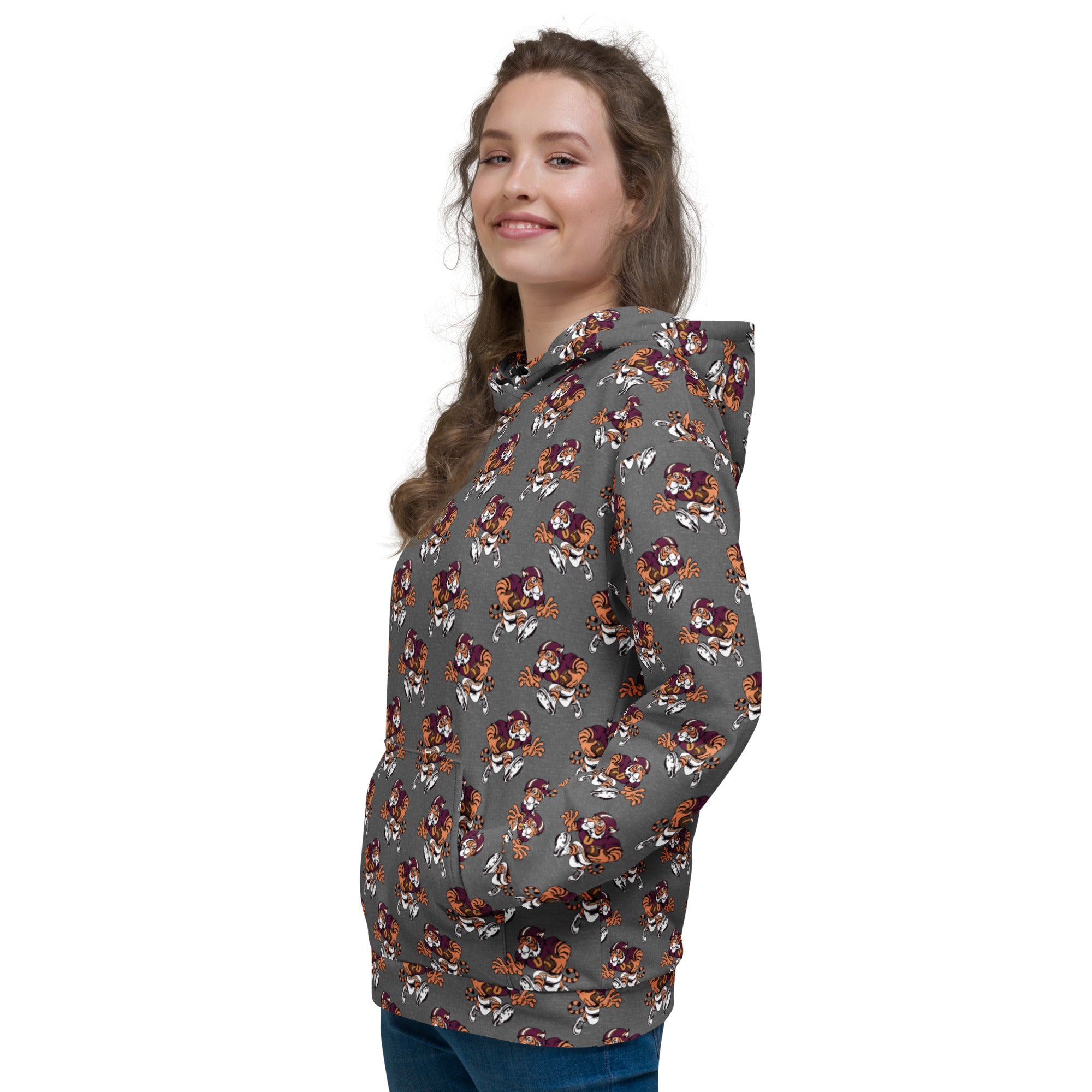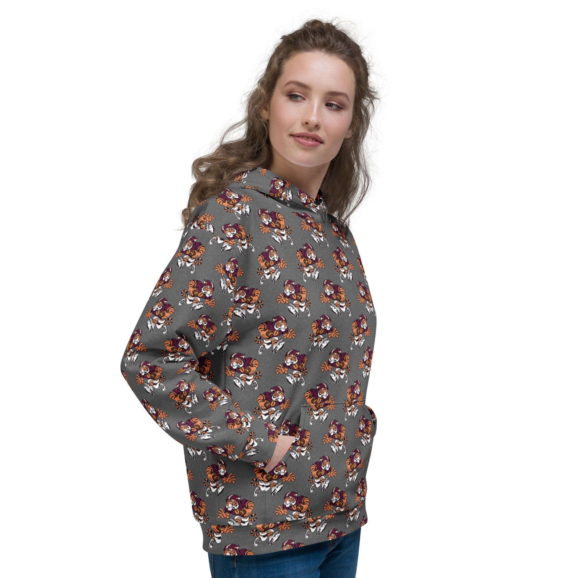 This comfy unisex hoodie has a soft outside with a vibrant print and an even softer brushed fleece inside. The hoodie has a relaxed fit, and it’s perfect for wrapping yourself into on a chilly evening.