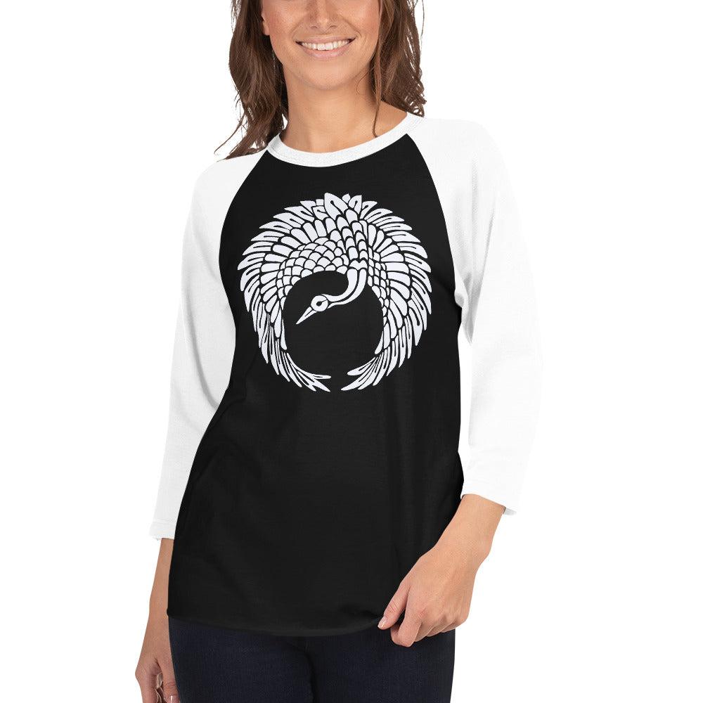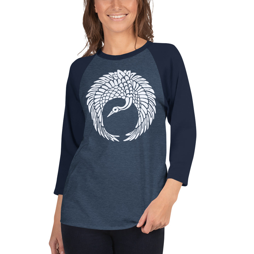 This Art Deco inspired print features a single white crane in a circular print.
